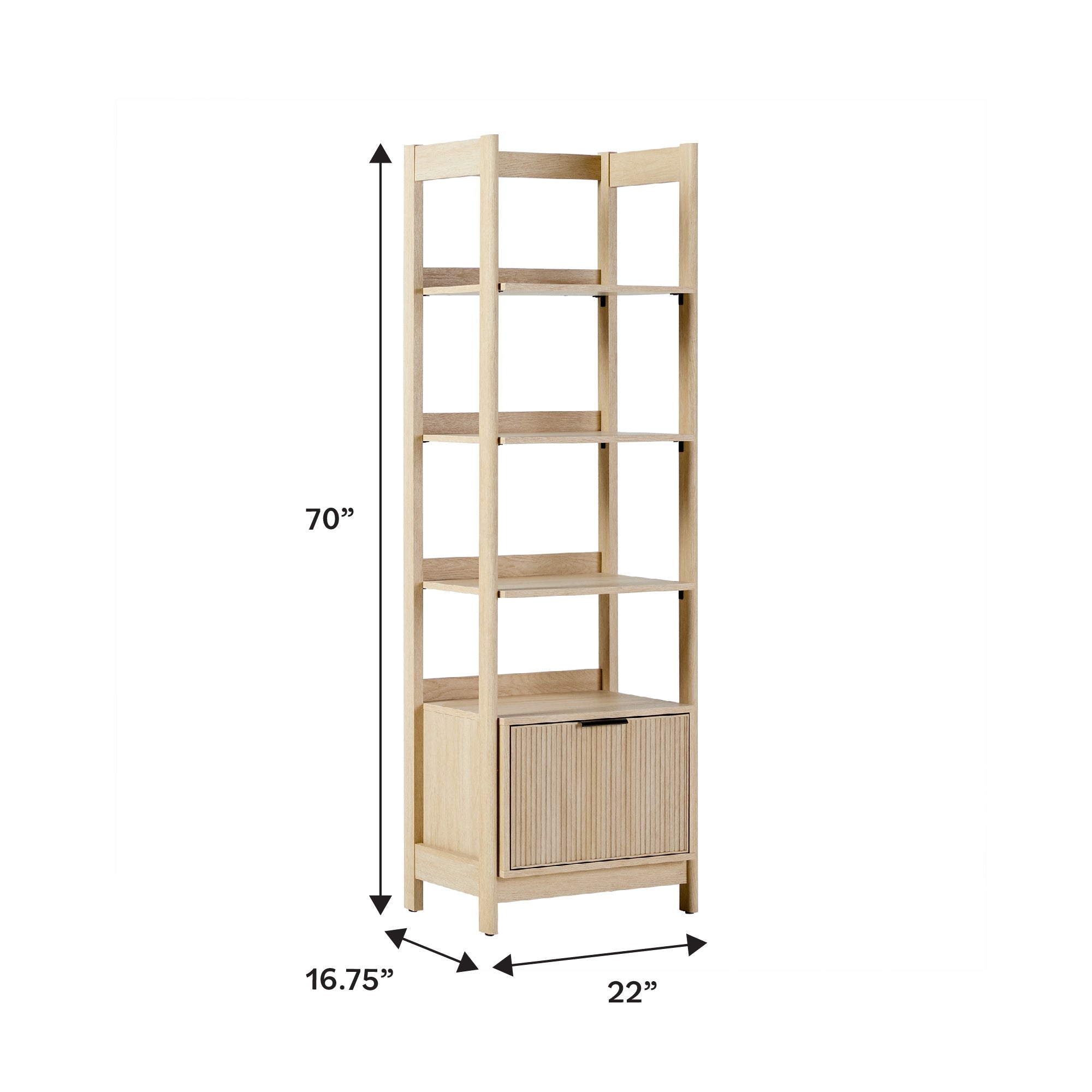 If you’re looking for storage that’s as stylish as it is functional, this chic, transitional bookcase is at your service. With reeded details and a sleek design, this is one piece you’ll be eager to put front and center. It’s made from durable MDF and laminate, so you can load it up with your books, files, and décor with total confidence in its stability and durability. If you have items you don’t want to display, tuck them away in the spacious lower drawer with a convenient pull tab. This narrow bookshelf with drawers on the bottom is designed with small spaces in mind, maximizing vertical storage while minimizing its footprint. Pair it with a desk in the home office or showcase it in the living room for maximum effect. Either way, this is one storage solution that’s ready for its close-up.