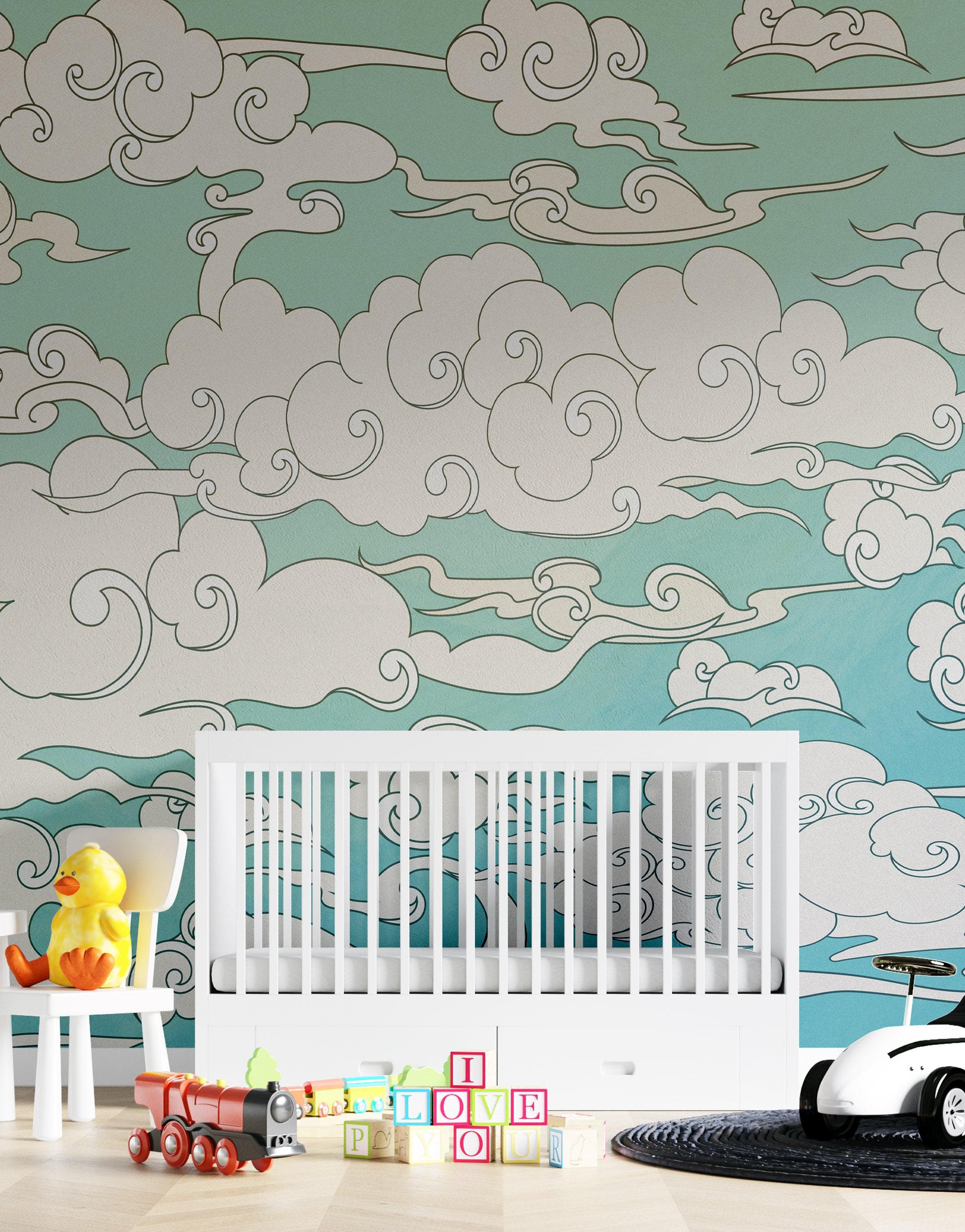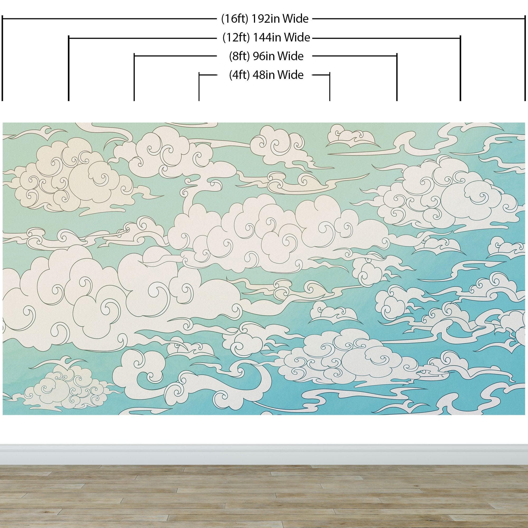 • Add a Japanese theme to your walls with this vintage cloud flowing in sky abstract design.