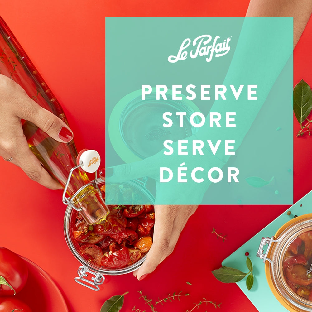 • PRESERVE, STORE, SERVE, DÉCOR - Utilize these brand new, versatile Le Parfait glass jars to preserve your seasonal harvest, revitalize your pantry storage and bulk-goods shopping, serve up a decadent homemade spread, or craft the perfect gifts for your loved ones.