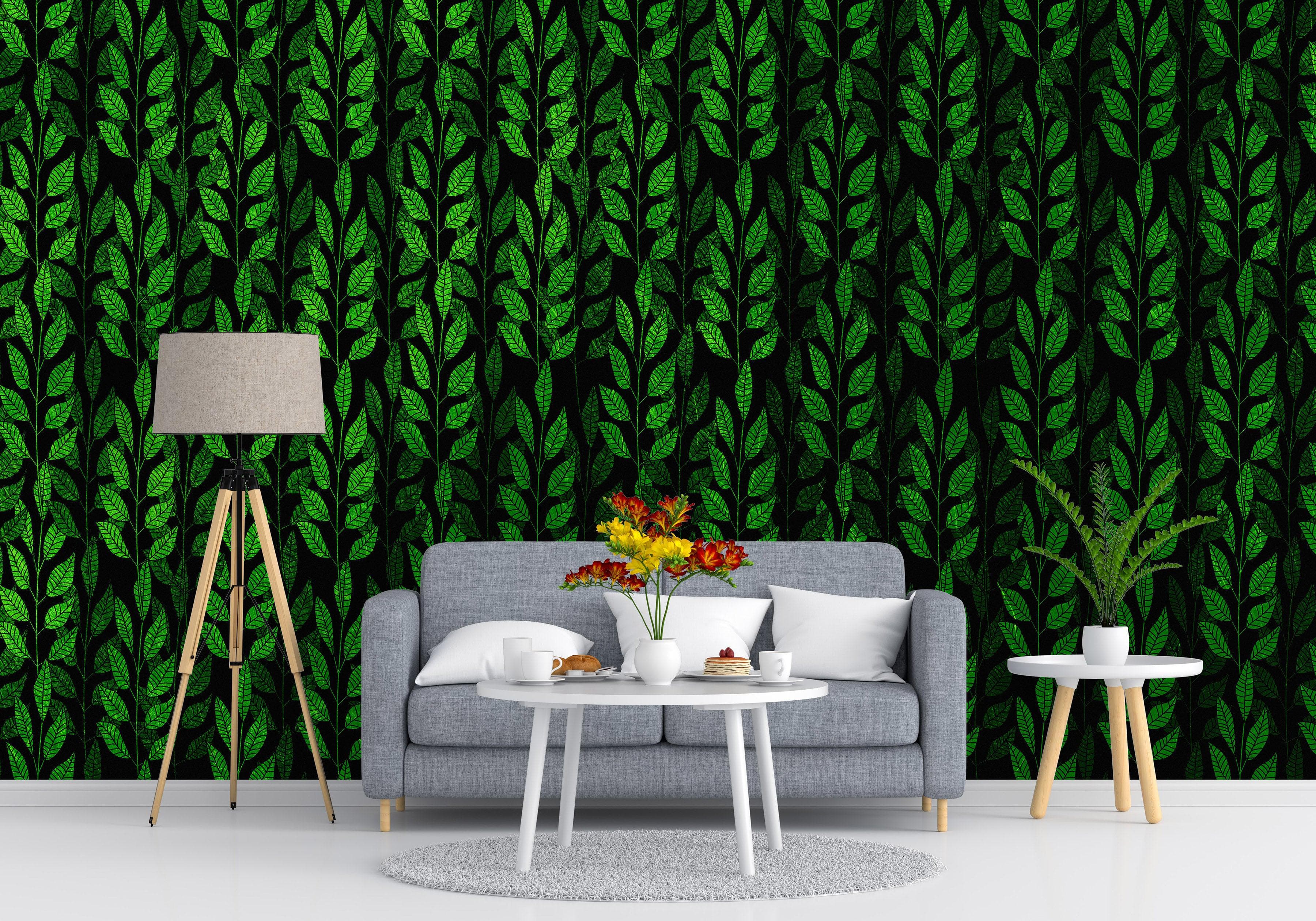 Leaves and Vines Farmland Theme Wall Mural. Green Crops Illustration Background. #6305