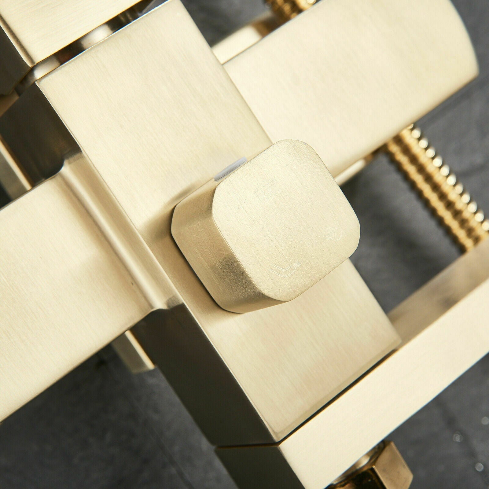 Elevate your daily routine with our Brushed Gold 3-Function Exposed Shower Set from the Grolta Collection. Constructed from solid brass, this shower set promises durability and longevity. Each use offers a luxurious experience, with a rainfall showerhead that brings spa-like luxury into your own home.