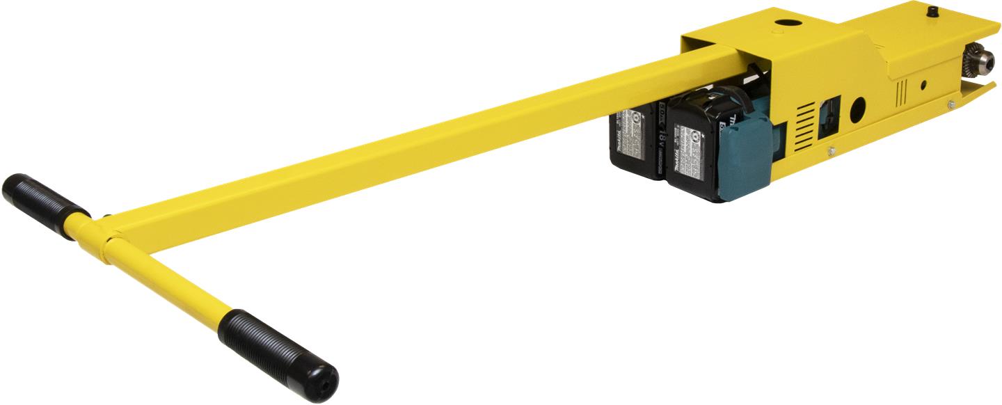 • Complete assembly includes a battery-operated cordless drill (36V Makita Right Angle drill), four 18V 5.0 ah Makita batteries, dual battery charger, impact socket adapter, dead-end T-handle, and both live and dead ends (28669)