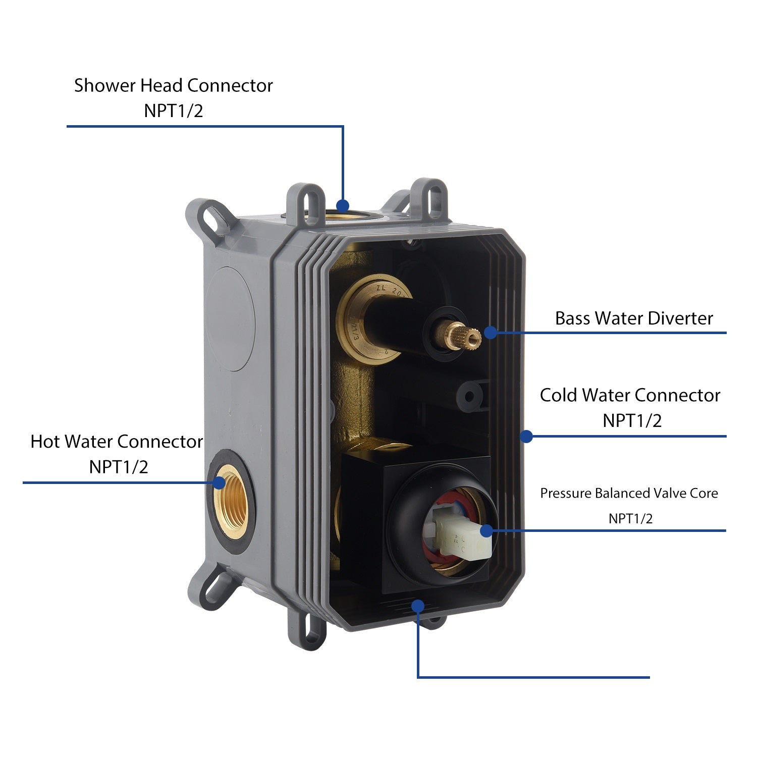 The pressure balance cartridge ensures an anti-scald feature for your safety. The shower head comes in two options: one without LED lights and one with LED lights powered by water flow, requiring no batteries.