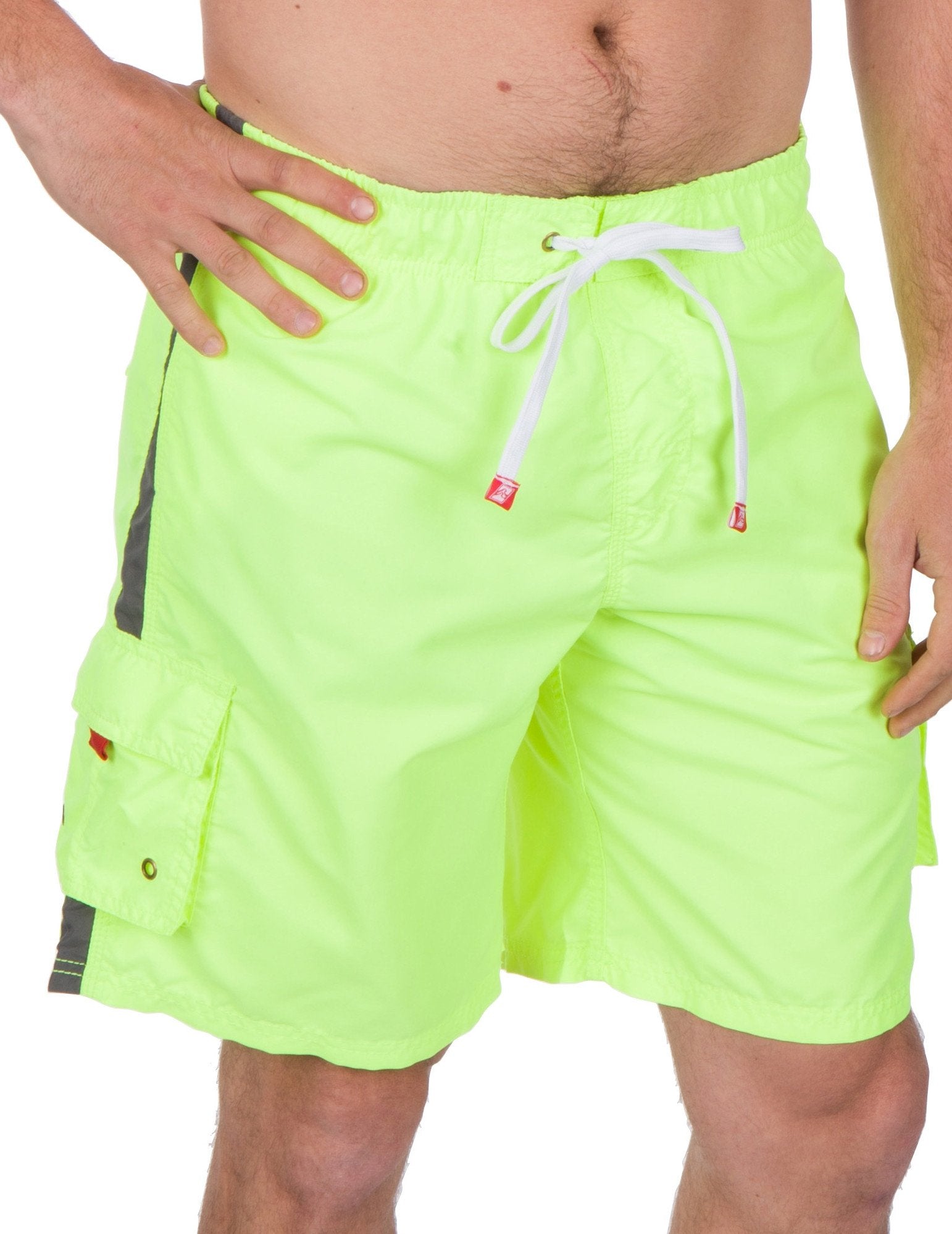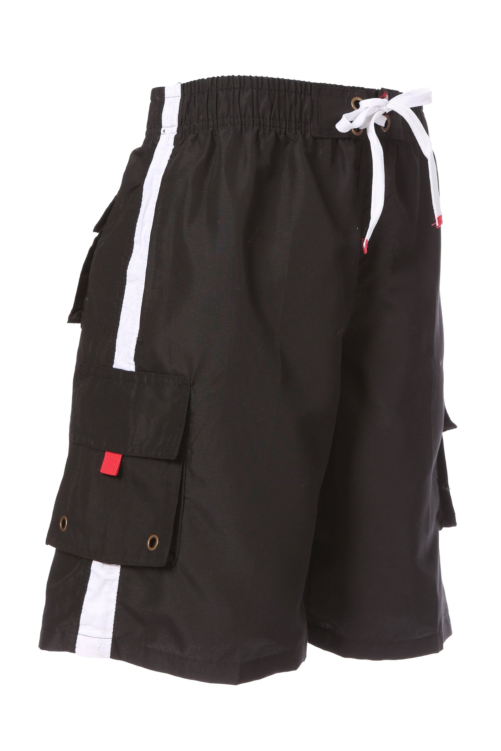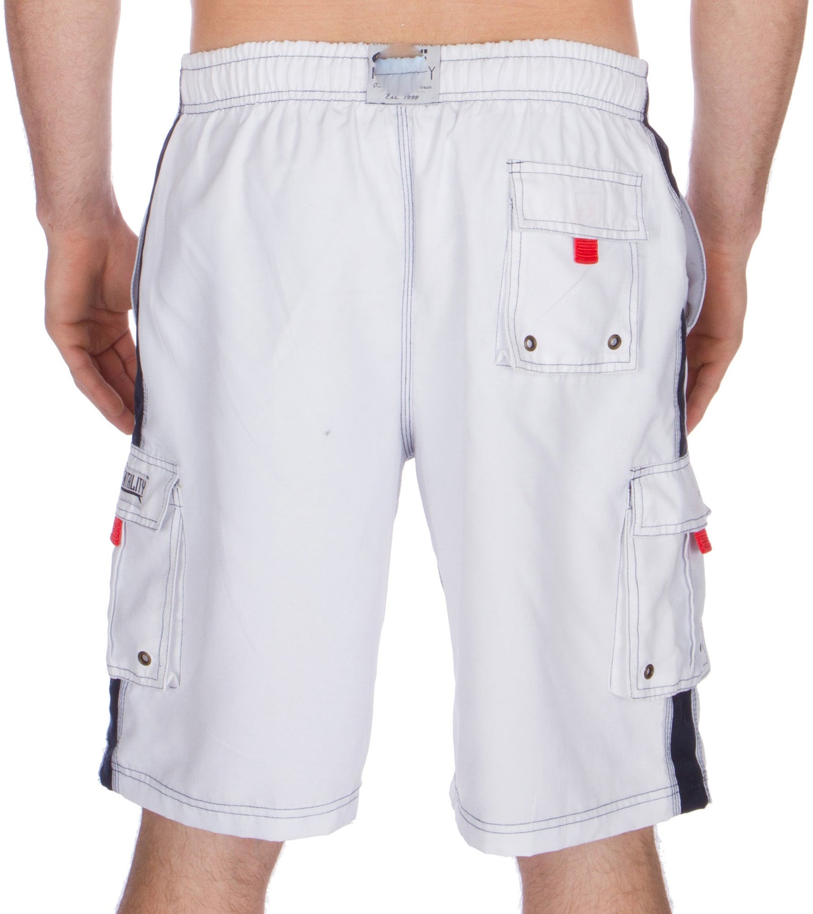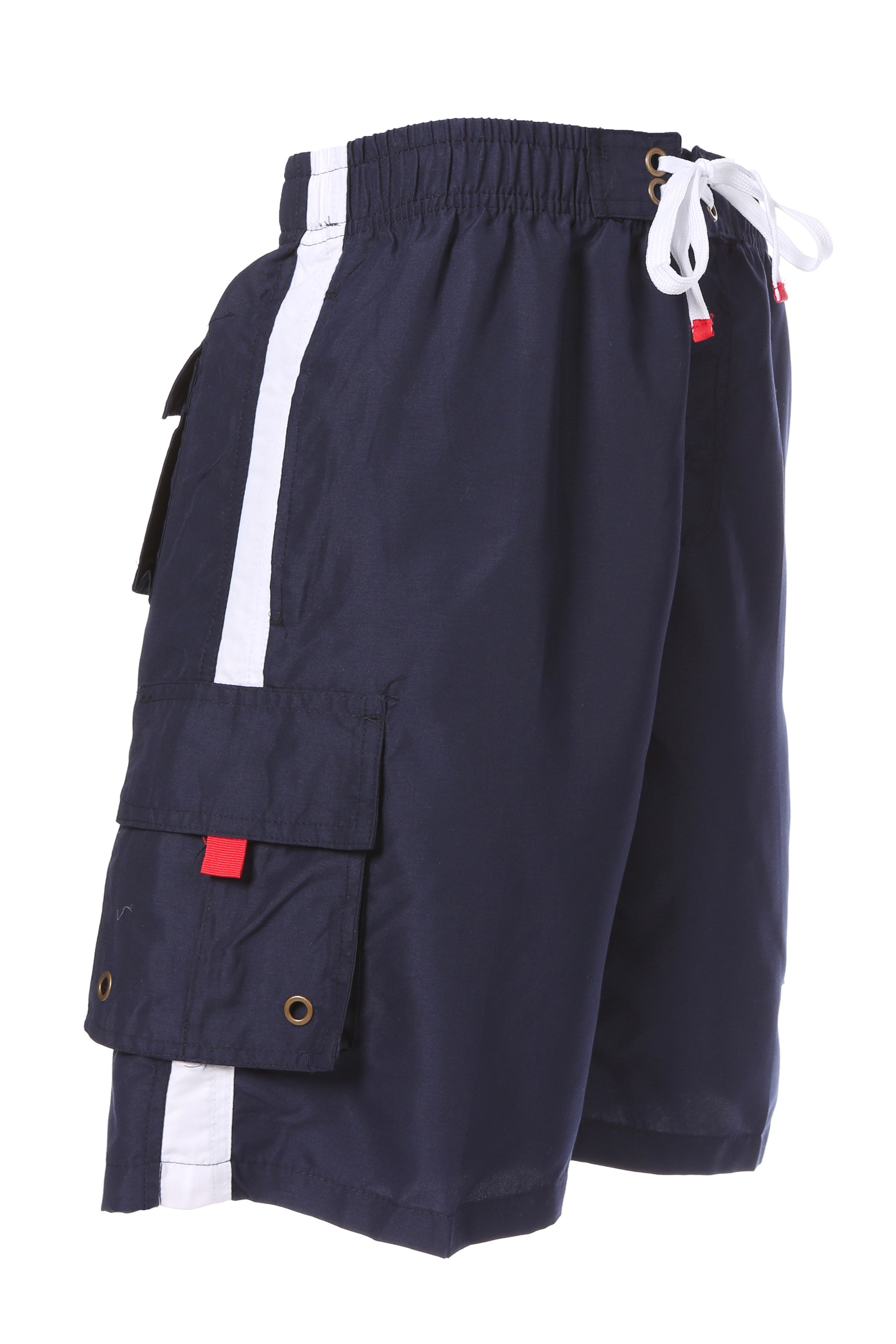 Men's Contrast Striped Solid Color Swim Trunks for Surfing and Skating by Sakkas