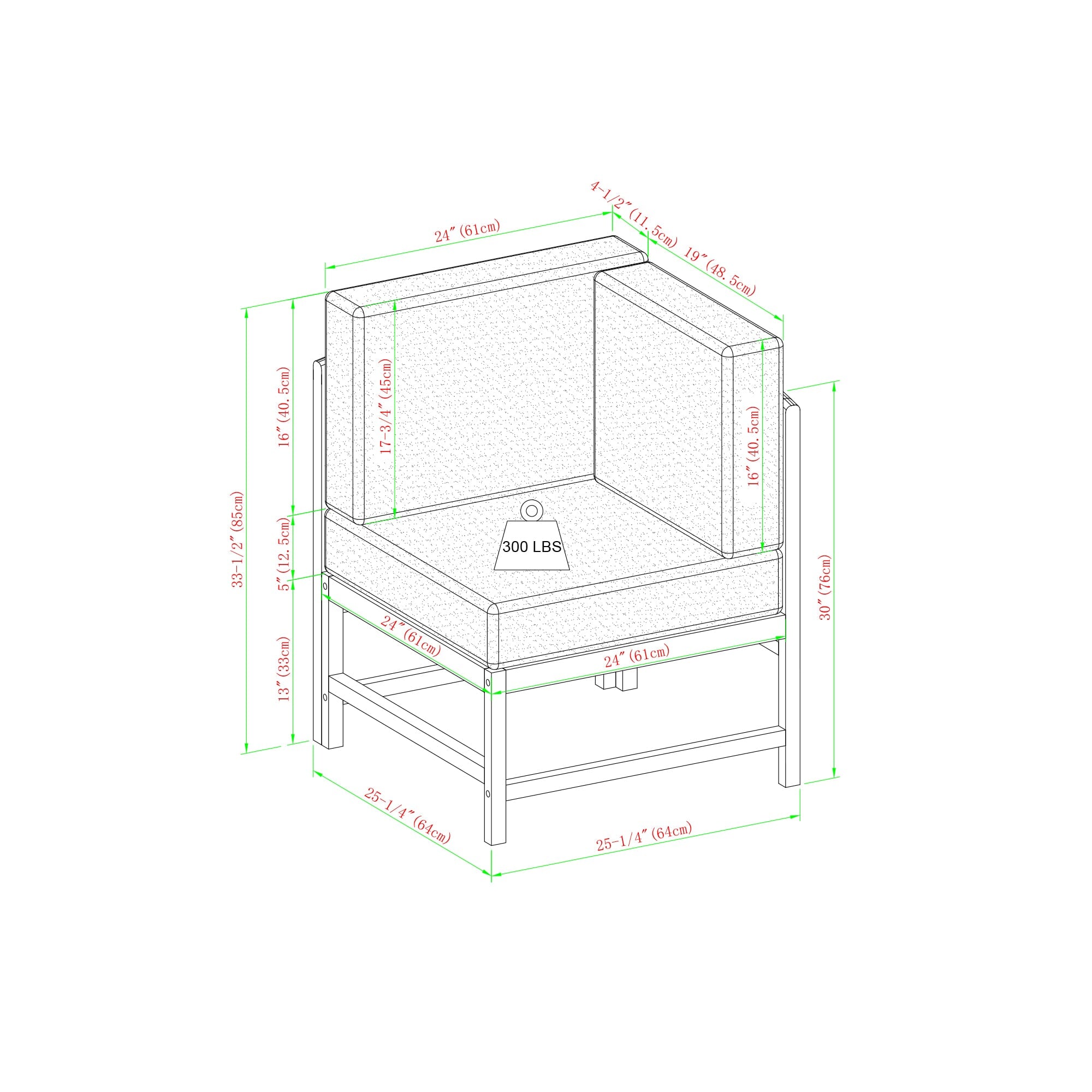 Armless Sectional: 33.5" H x 24" L x 25.25" W 25 LBS