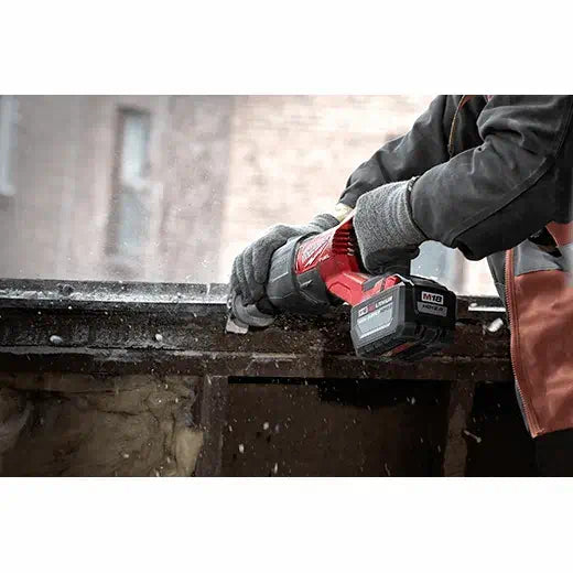The SUPER SAWZALL® Reciprocating Saw generates 15A cordless power, faster cuts than 15A reciprocating saws and delivers Up To 150 Cuts in 2x12 SPF per charge. Designed to perform in the toughest applications, the M18™ FUEL SUPER SAWZALL® combines Milwaukee's legendary performance and durability with the portability of the M18™ platform. The POWERSTATE™ Brushless Motor Provides 3,000 SPM and higher speeds under load for corded cutting performance. REDLINK PLUS™ intelligence ensures maximum performance and protection from overload, overheating and over discharge. The M18™ REDLITHIUM™ HIGH OUTPUT™ HD12.0 battery delivers unmatched run-time in all applications. The 1-1/4" stroke length removes more material with each stroke and On/Off orbital action provides aggressive cuts in wood and smooth cuts in metal. Variable speed trigger and 5-speed dial provide maximum speed control for any application. The QUIK-LOK® blade clamp allows for tool less blade changes and a rafter hook provides a convenient way to store the saw between cuts.