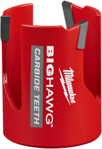 Our MILWAUKEE® BIG HAWG™ with Carbide Teeth is the best hole saw solution for nail-embedded wood and abrasive material applications. Our first-to-market hole saw offers extreme life utilizing advanced carbide technology. The BIG HAWG™ gives users 50X more life in demanding applications with the ability to cut 1000+ more nails. The heavy duty hole saw has 10X larger carbide teeth that rip through materials five times faster. Deeper slots allow for fast and easy plug removal. Our BIG HAWG™ hole saw is the best solution for cutting through the toughest materials, including nails, cement board, shingles, plaster and stucco. Our kit includes four BIG HAWG™ hole saws, two pilot bits, an arbor and a diamond file.