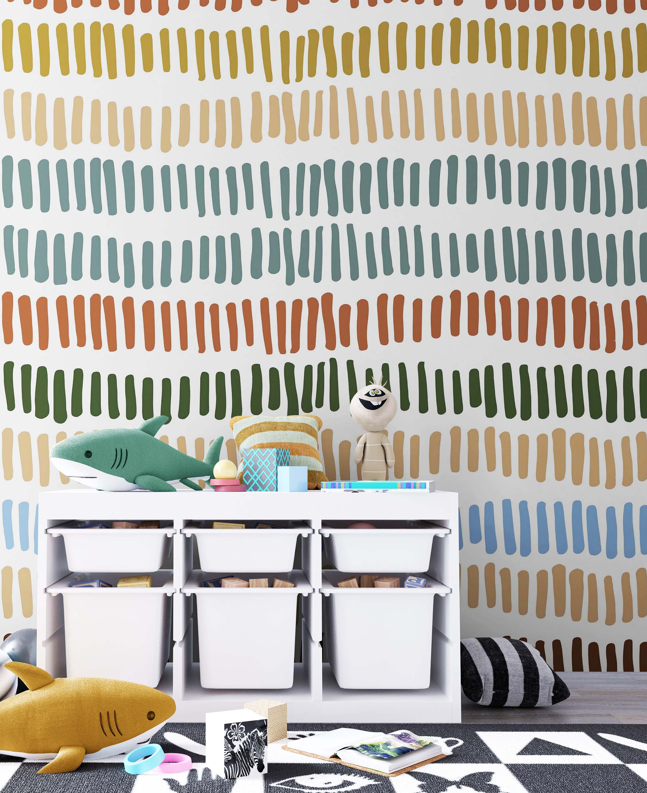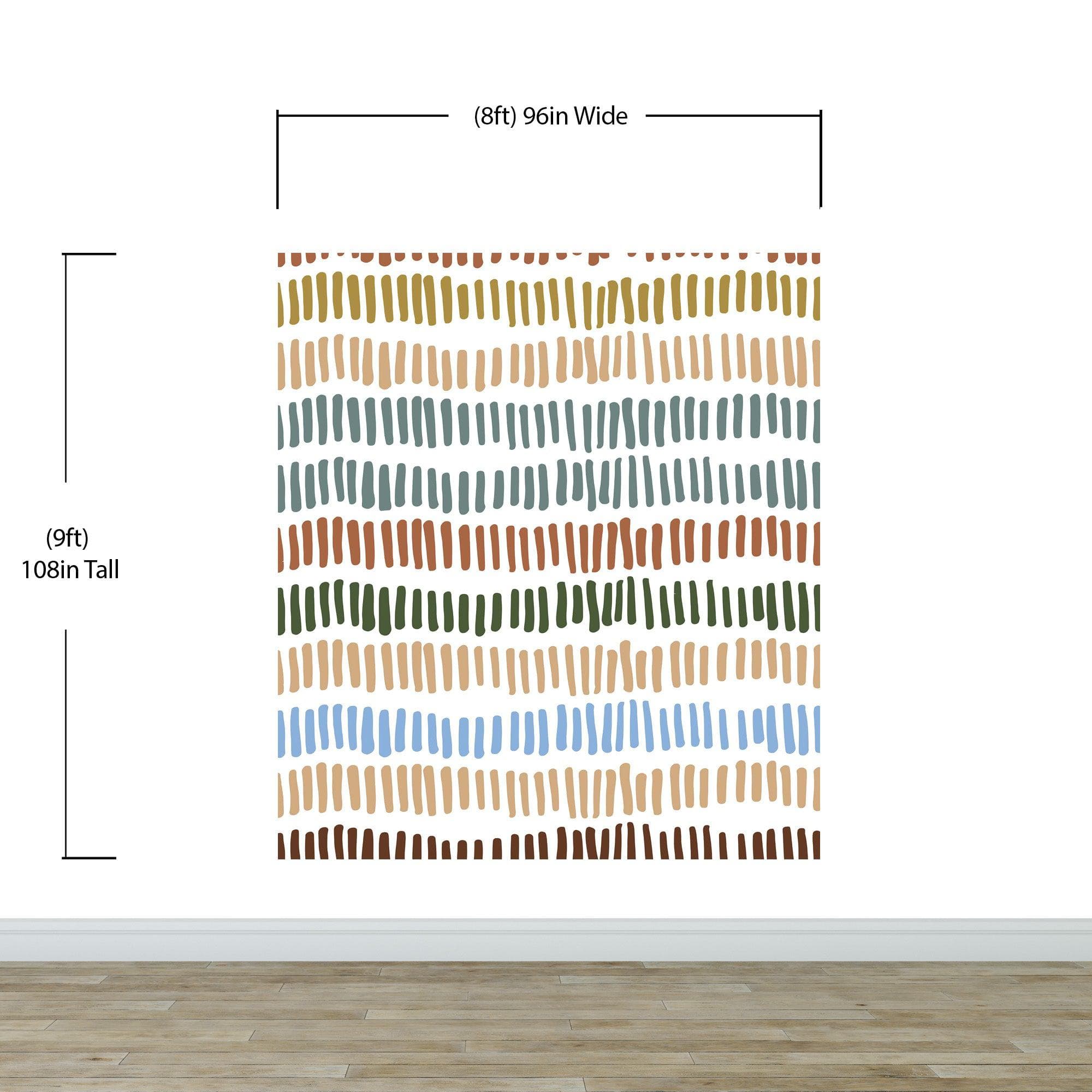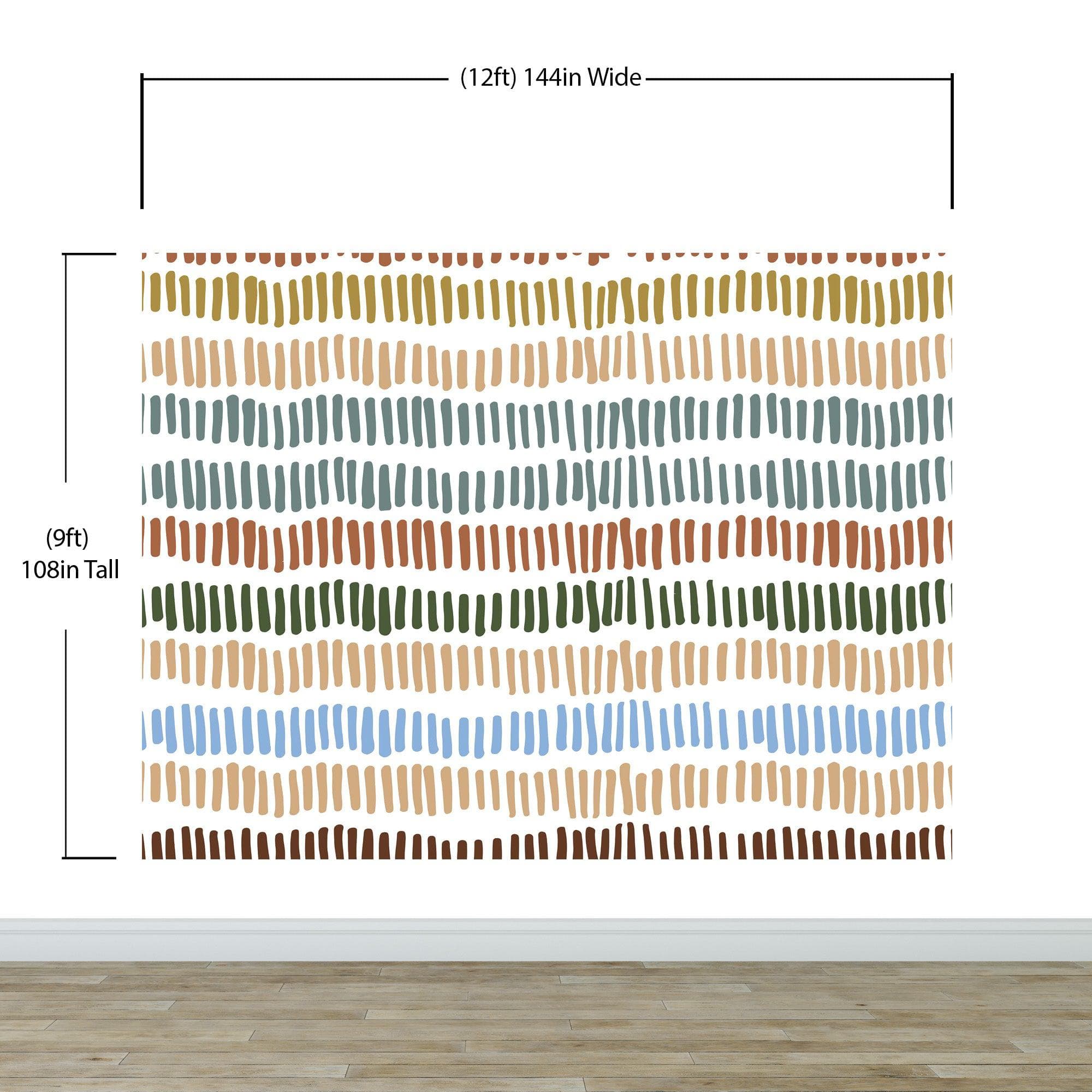 Elevate your any room decor including the nursery room with the mesmerizing charm of our Boho Wallpaper Peel and Stick Mural. Let the pastel color stripes pattern design fill your space with warmth and beauty, creating a soothing sanctuary for your child's early years. Revitalize your surroundings effortlessly with this exceptional and easy-to-use wall art mural.