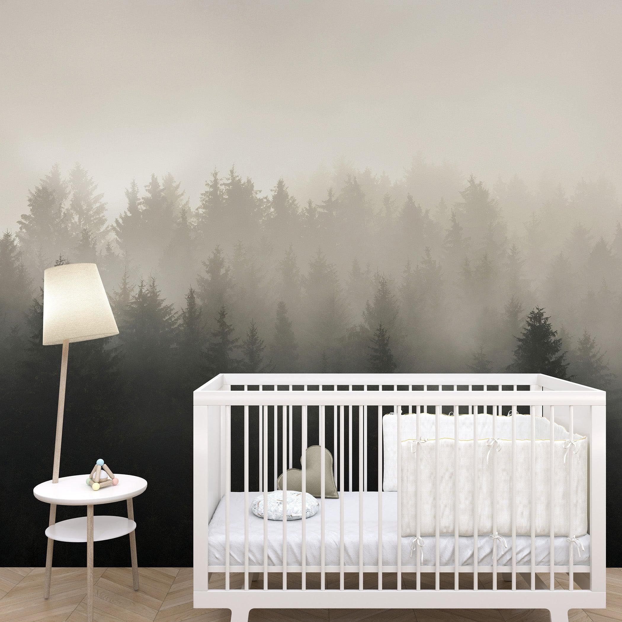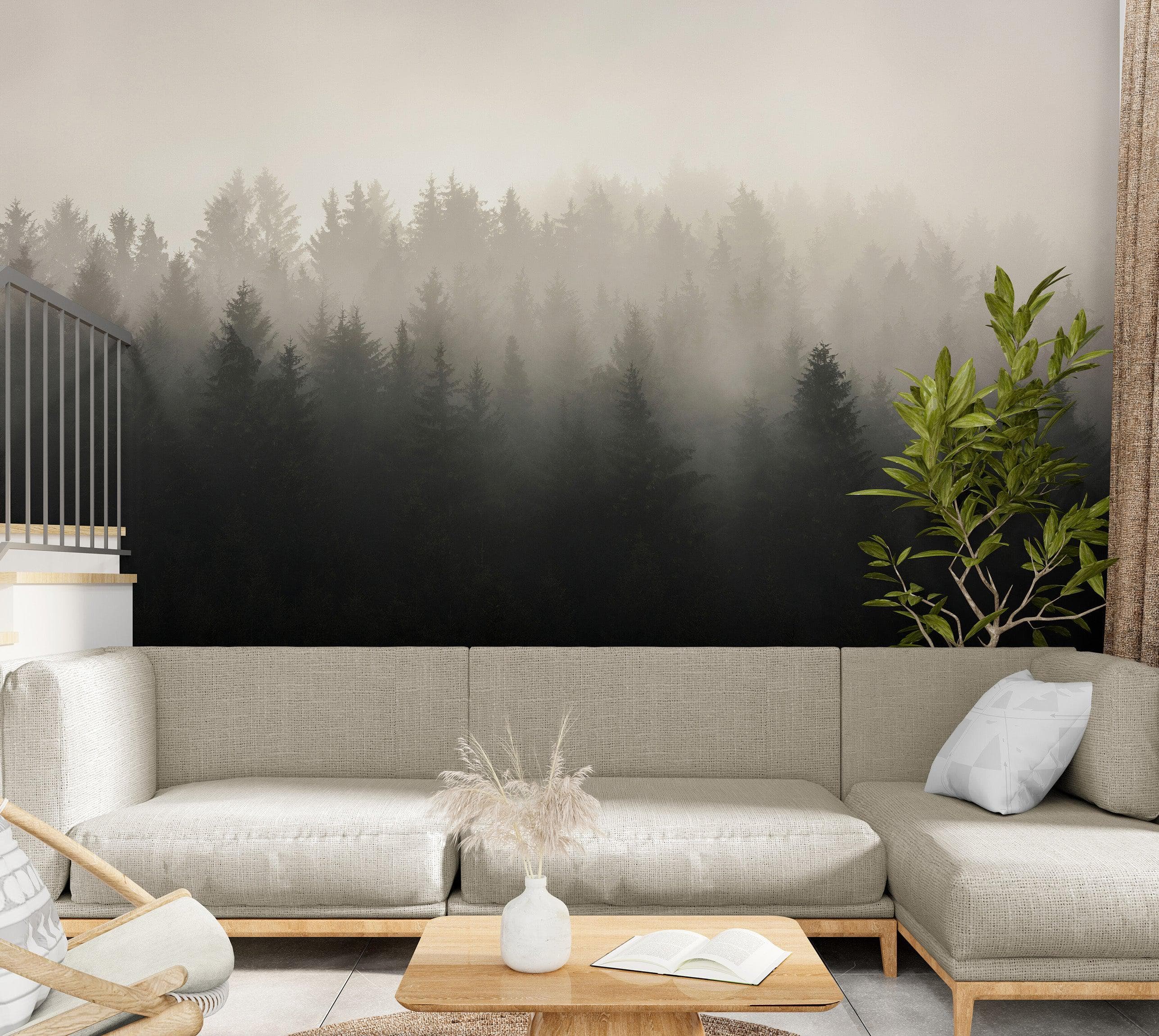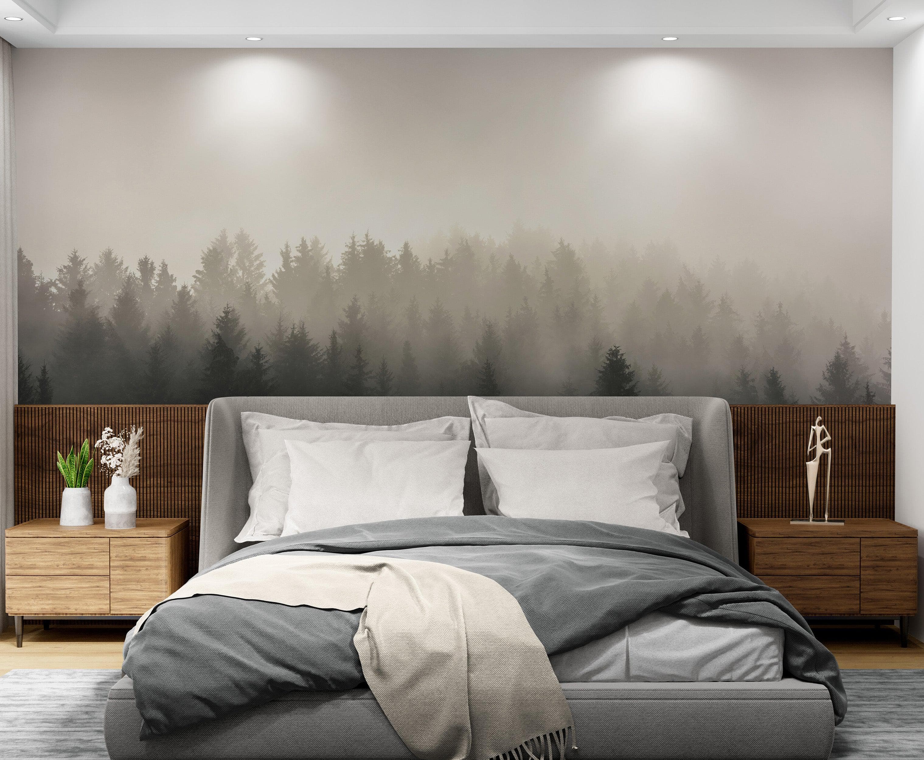 Misty Pine Forest Wall Mural. Peaceful Foggy Morning Scenery. #6122