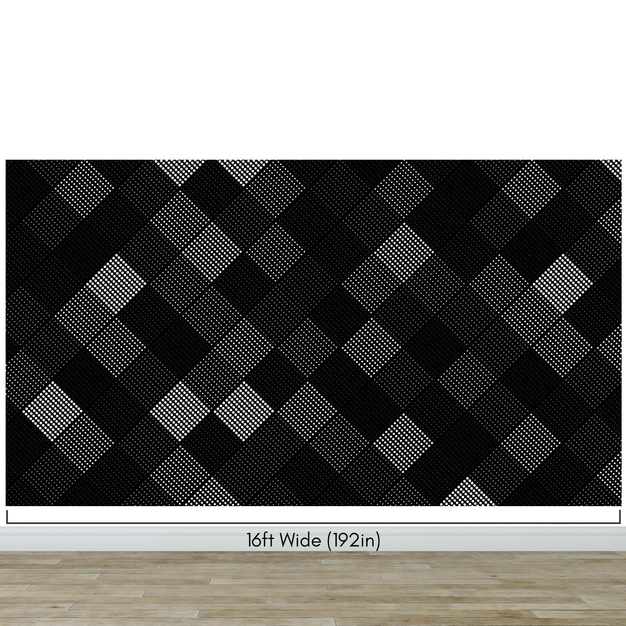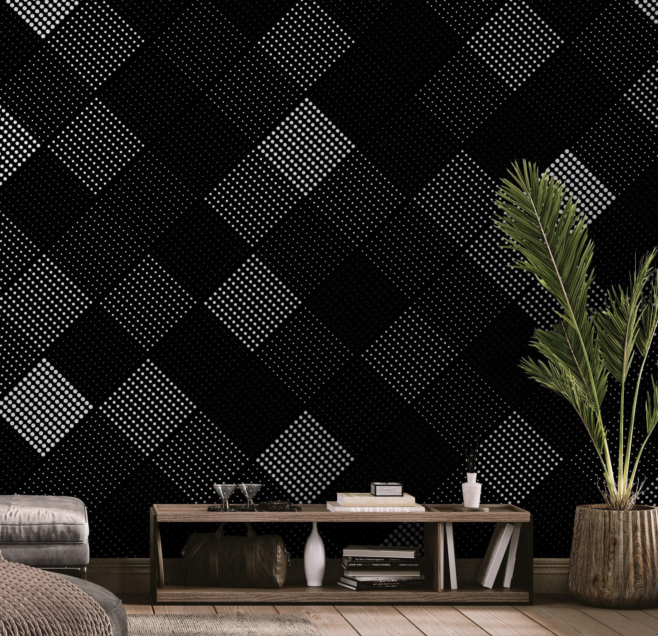 Modern Black and White Polka Dot Peel and Stick Wall Mural. #6964
