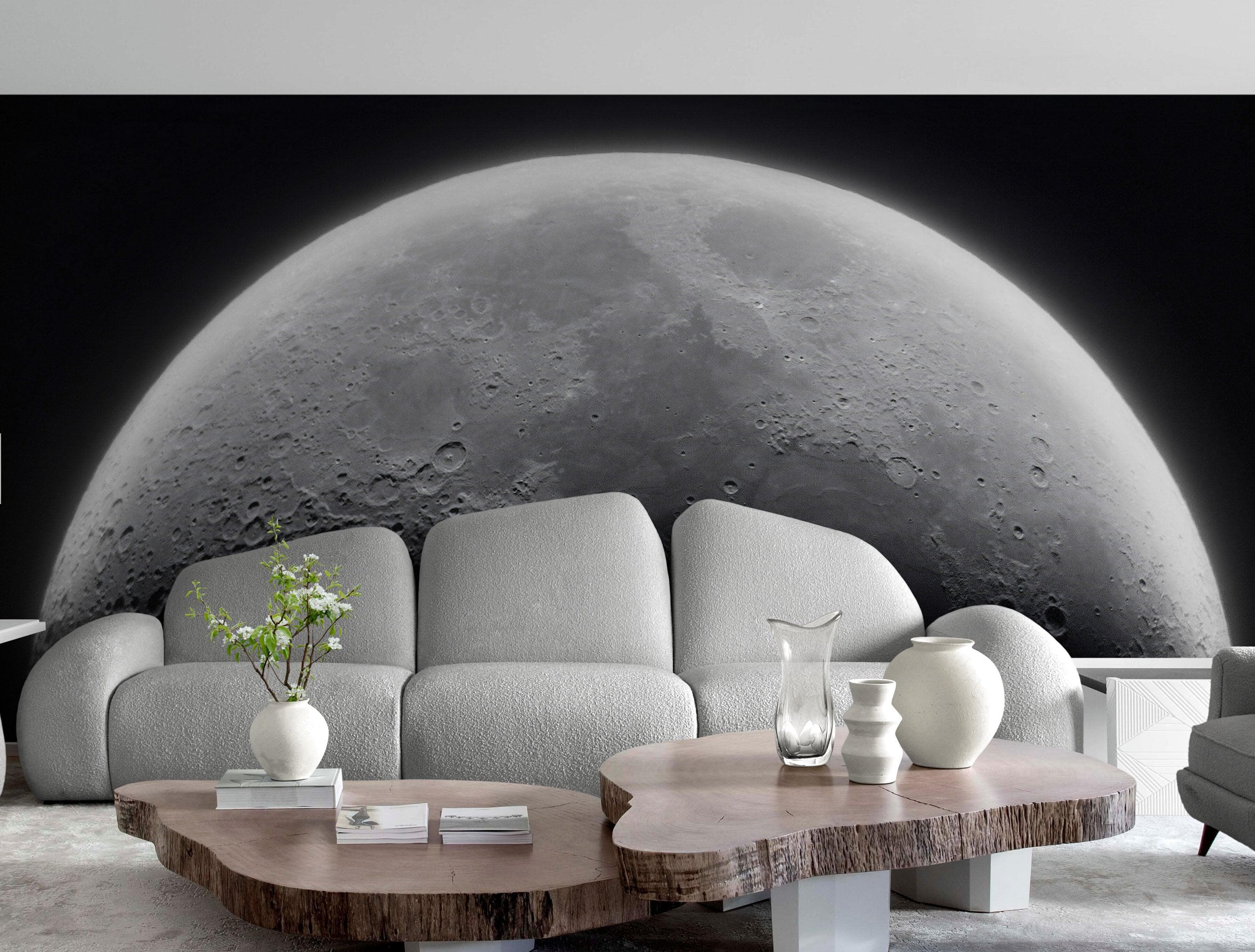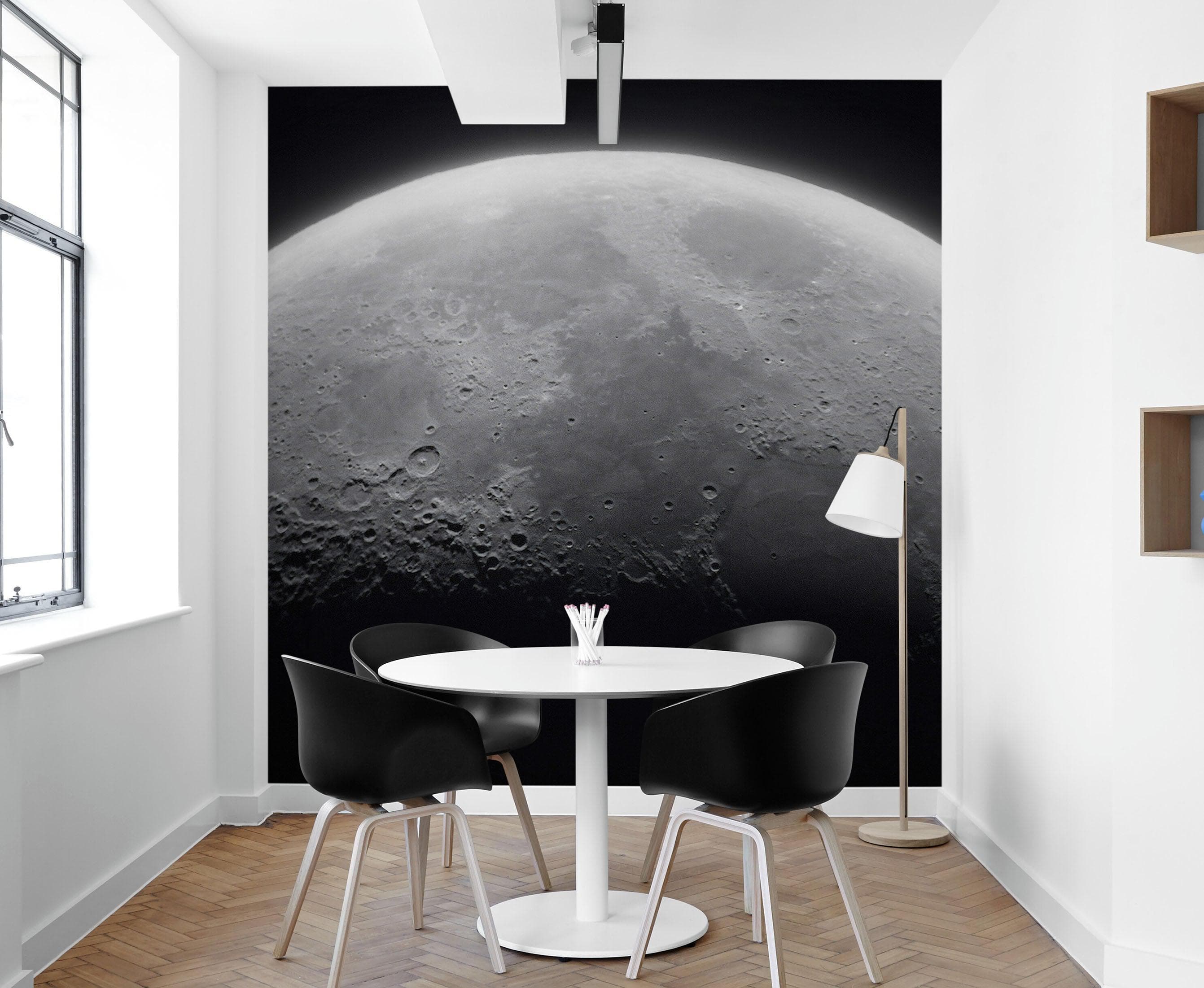 Create a calming atmosphere and peaceful ambiance with this moon wallpaper design. The soft glow of the moon can reduce stress and anxiety. Perfect for any Astronomy enthusiast.