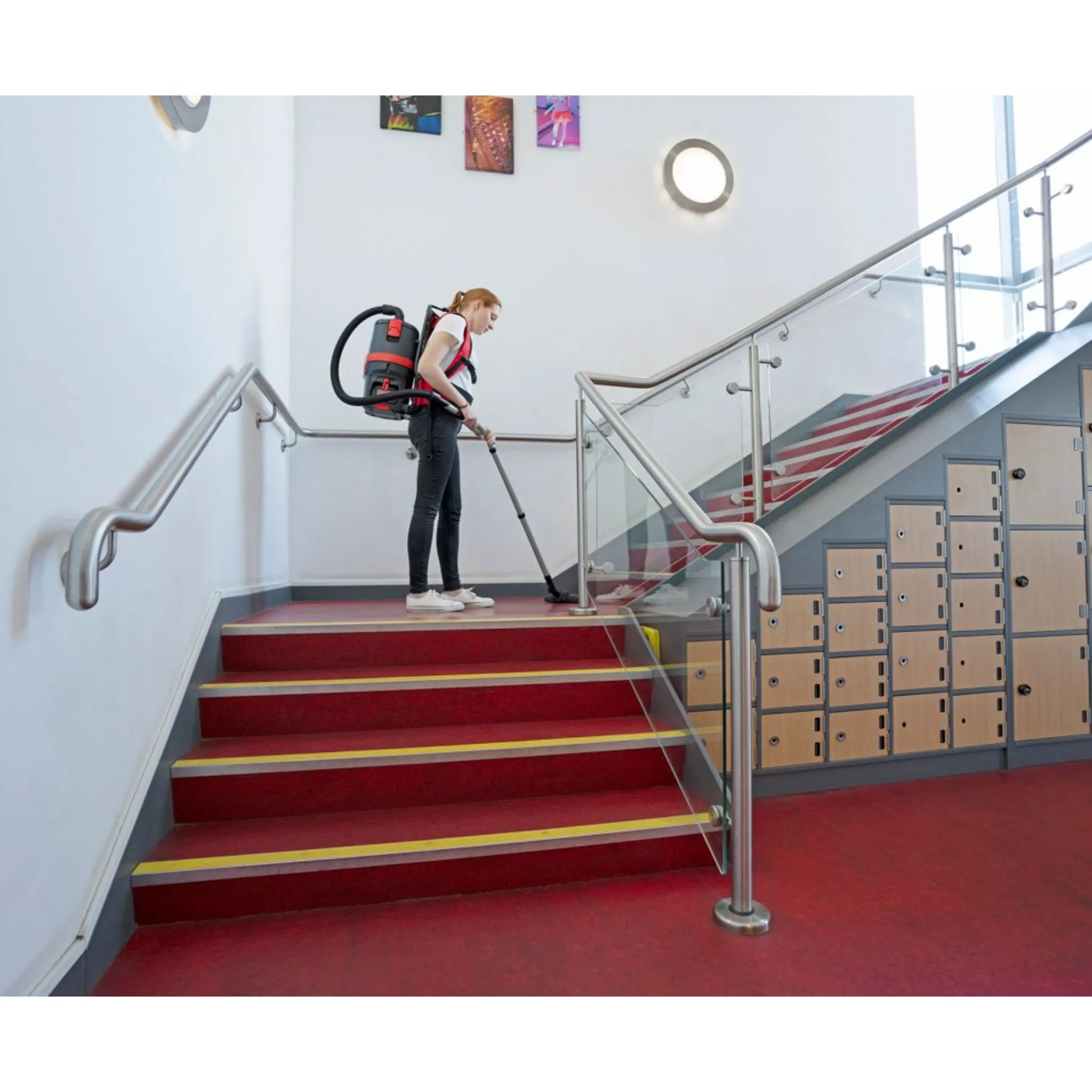 The NaceCare Latitude RBV 150NX is the ultimate solution for powerful, cordless cleaning in high-traffic or day-use environments. Powered by the revolutionary NX300 36V Battery Technology and a cutting-edge 350W digital brushless motor, this backpack vacuum delivers up to 90 minutes of run time, making it the most advanced cordless vacuum in its class. Weighing only 15 lbs., the RBV 150NX is compact, lightweight, and extremely comfortable for all-day use. With award-winning performance and whisper-quiet operation, this unit is ideal for professional cleaners who demand the best.