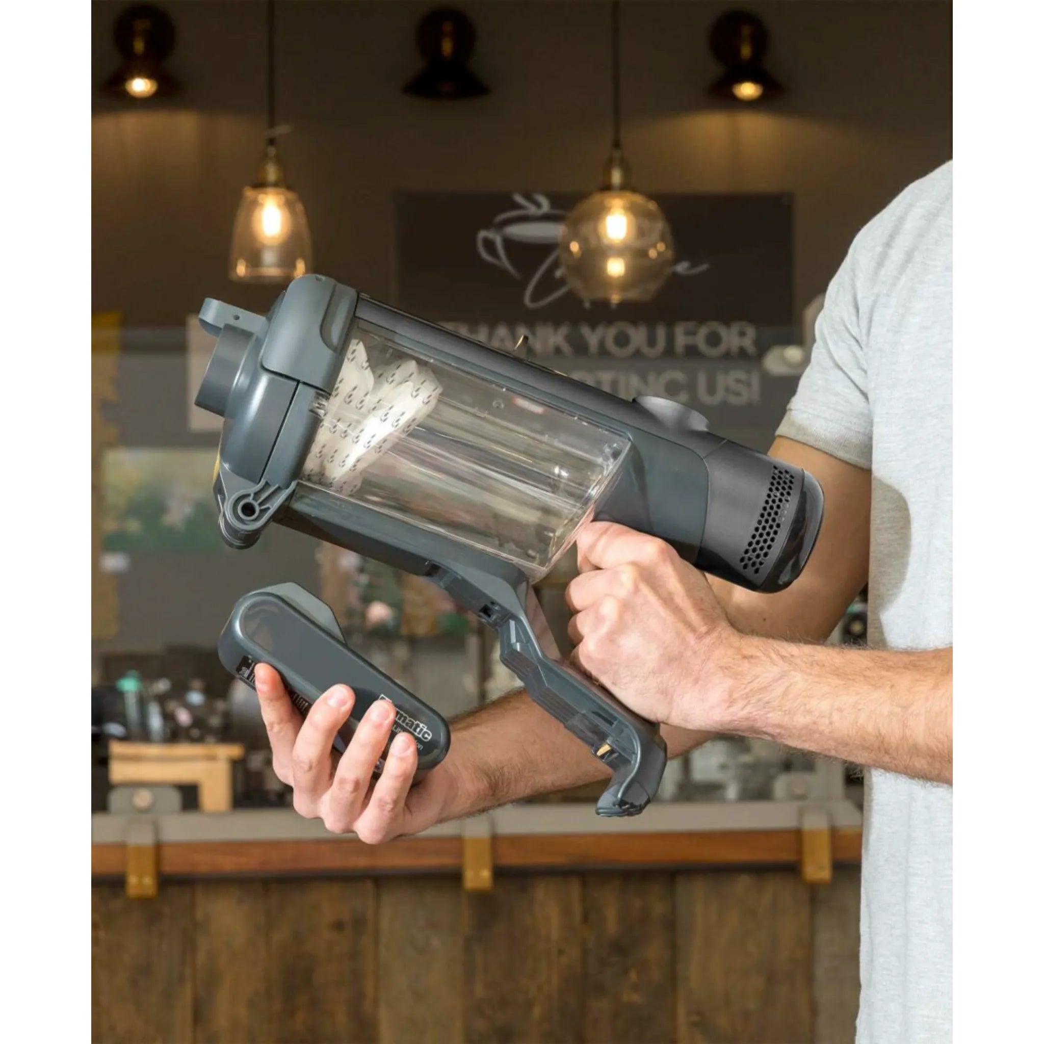 Meet the NaceCare NQ 100 The Quick — your ultimate solution for efficient, cordless cleaning. Designed with professionals in mind, this award-winning powerhouse delivers up to 120 minutes of high-performance, dust-free cleaning. Its advanced filter pod system, dual interchangeable lithium-ion batteries, and ergonomic, lightweight design make it incredibly easy to use, store, and maintain. Whether tackling large commercial spaces or detail-oriented tasks, The Quick lives up to its name — delivering performance, convenience, and cleanliness in one smart package.