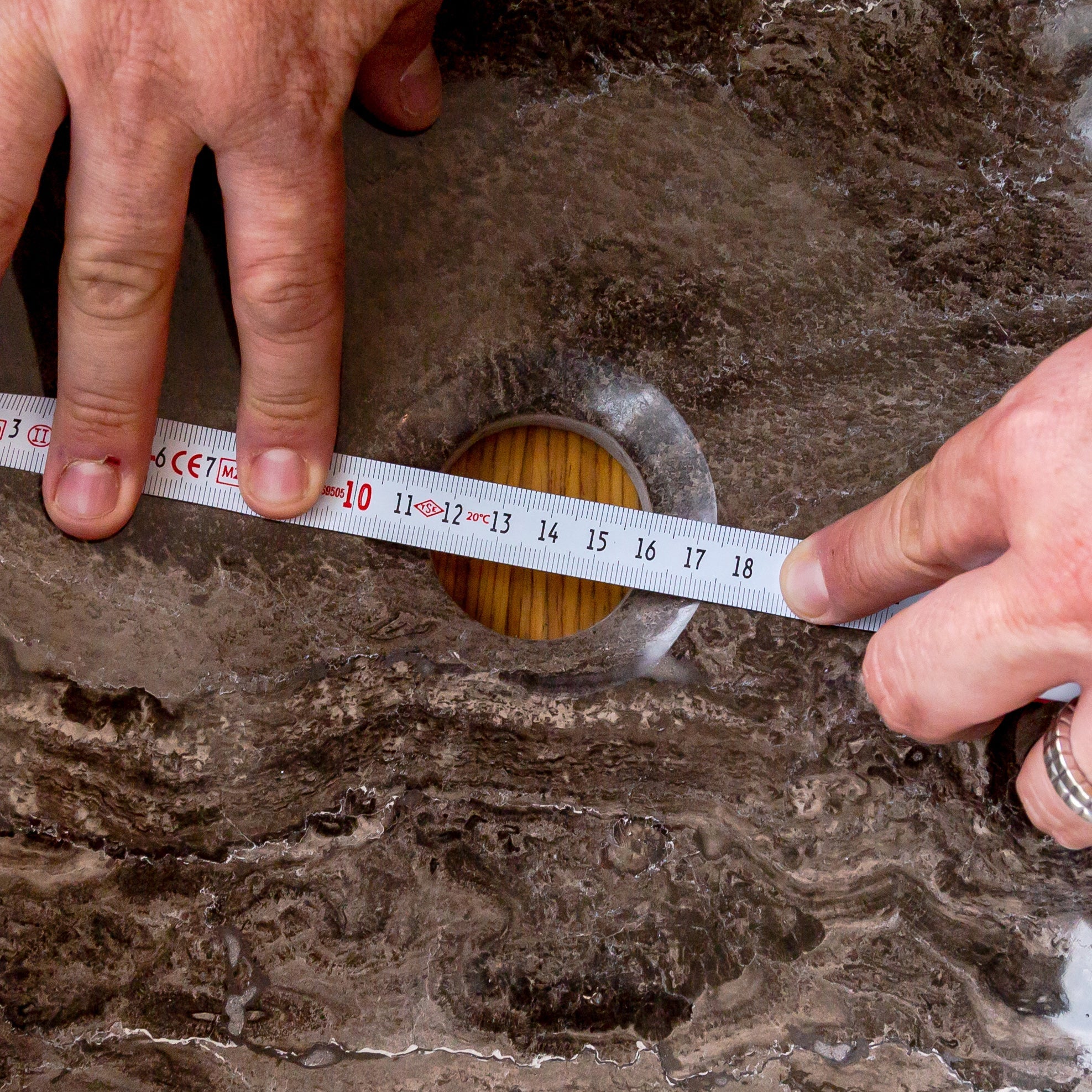 Hand carved natural marble construction. Diameter is 16 inches, Height is 6 inches, Drain hole 1.5 inches. Its curved edges and smooth construction facilitate the cleaning and maintenance of this sink bowl. Not easy to produce cracks, refused to dirt deposition, durable and not deformed. No overflow and very resistant to drains.
