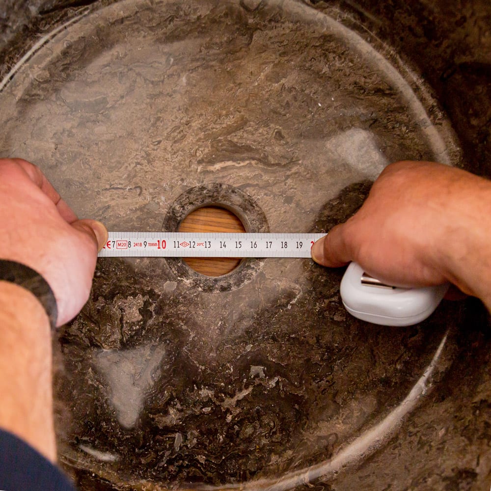 Hand carved natural marble construction. Diameter is 16 inches, Height is 6.5 inches, Drain hole 1.5 inches. Its curved edges and smooth construction facilitate the cleaning and maintenance of this sink bowl. Not easy to produce cracks, refused to dirt deposition, durable and not deformed. No overflow and very resistant to drains.