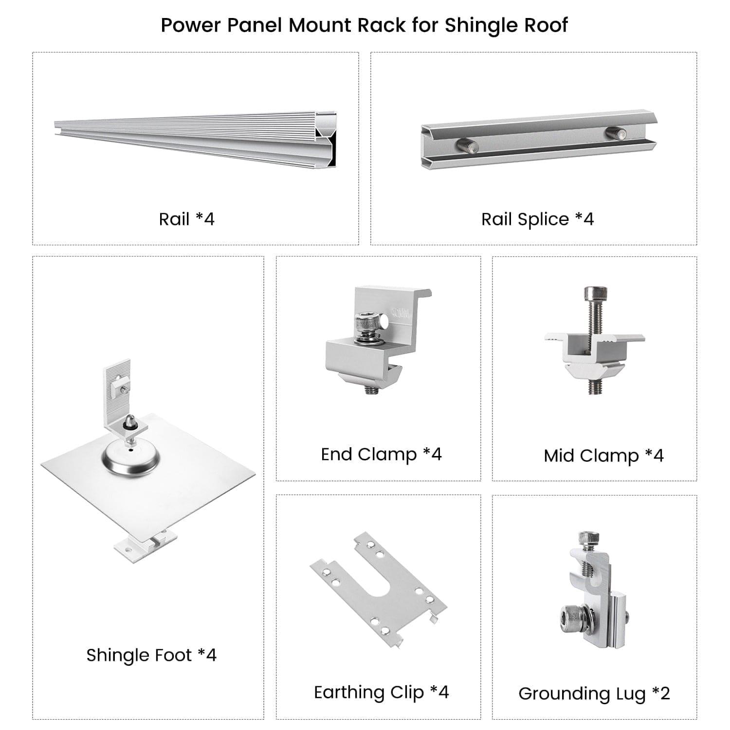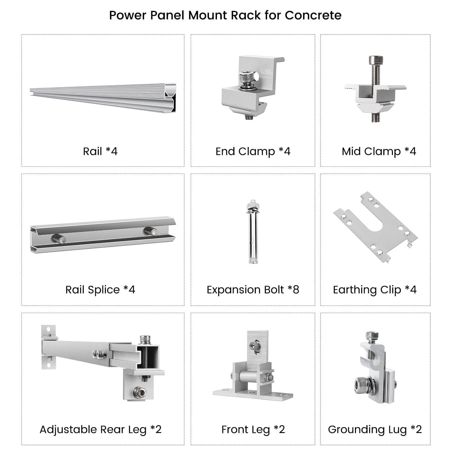 • Complete solar mounting kit, expandable for future needs, includes all necessary solar panel brackets.