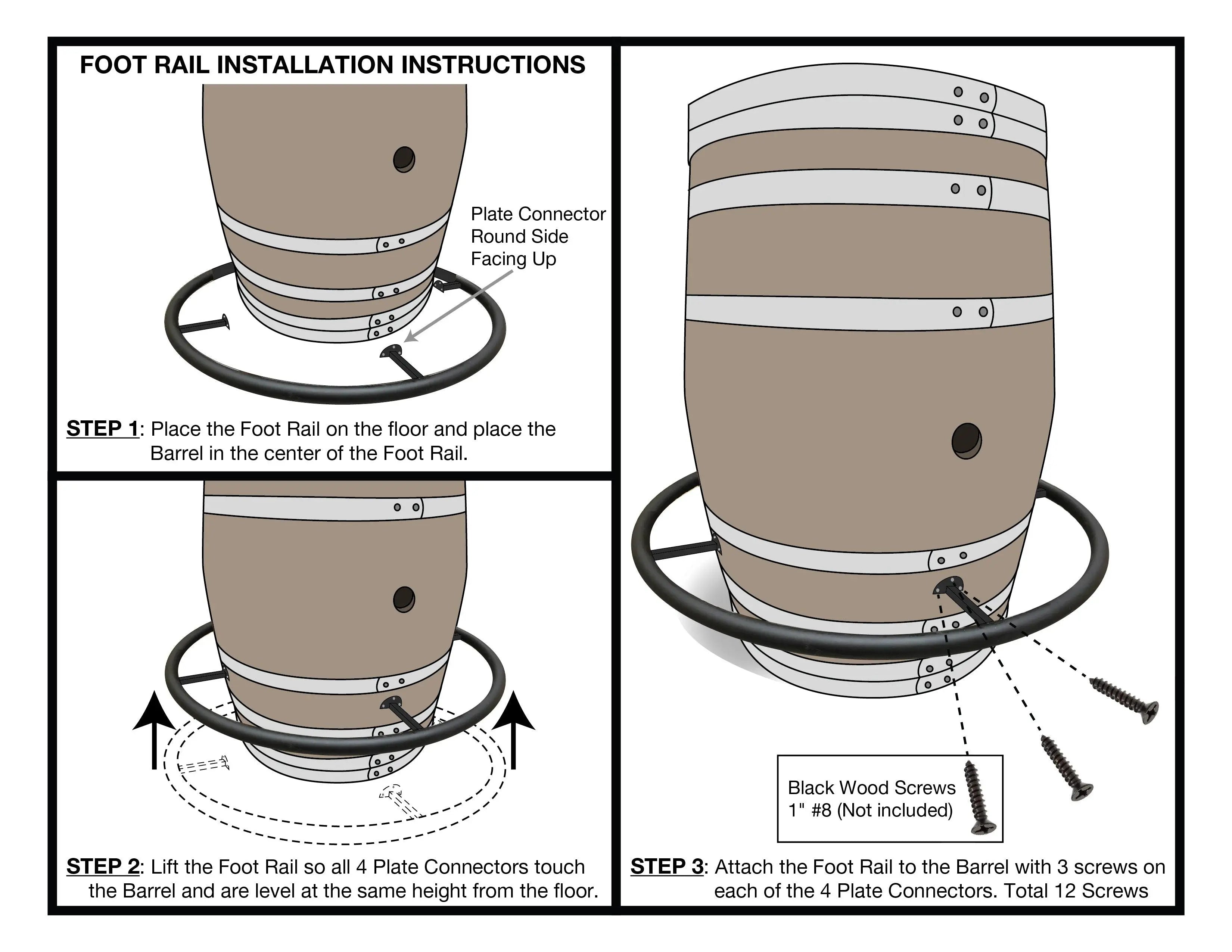 Finished Barrel + Round Top + Foot Rail + 0, 2 or 4 Bar Stools Included.