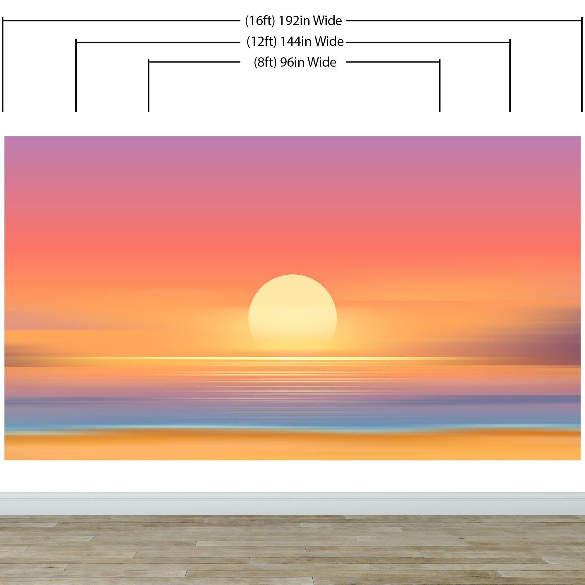 Orange Sunset Over Beach Wall Mural. Blurred Abstract Sunset Over Coastline. #6393
