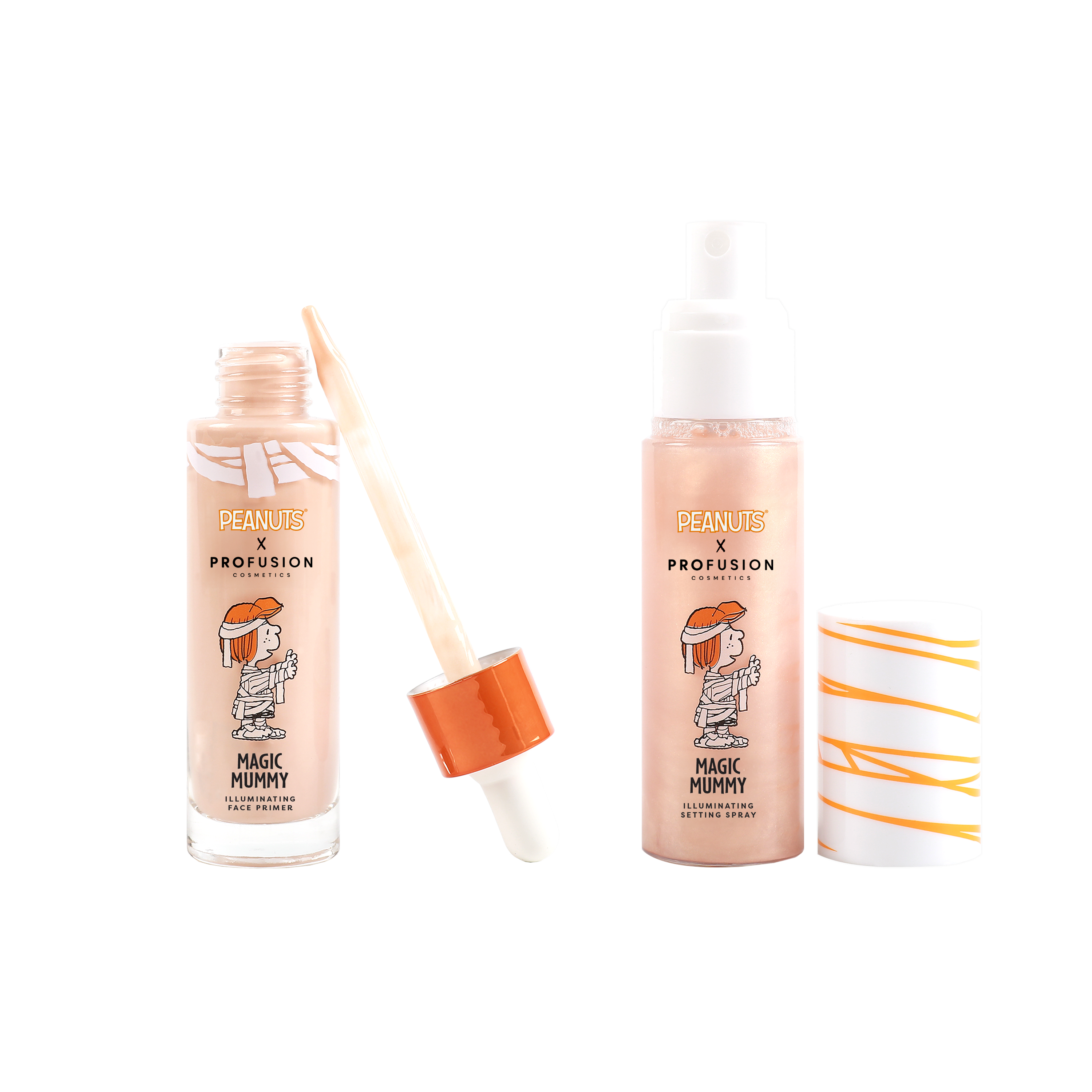 Unveil your mesmerizing mummy look this Halloween with the Peanuts x Profusion Cosmetics Magic Mummy Illuminating Face Primer & Setting Spray Set. Crafted with love and infused with Hyaluronic Acid, Vitamin E & C, this vegan and paraben-free duo offers the perfect blend of skincare and makeup benefits. The lightweight primer creates a smooth canvas while the setting spray locks in your look for hours of frightful fun. Embrace the spooky season with this must-have beauty essential and get ready to rock the spookiest night of the year.