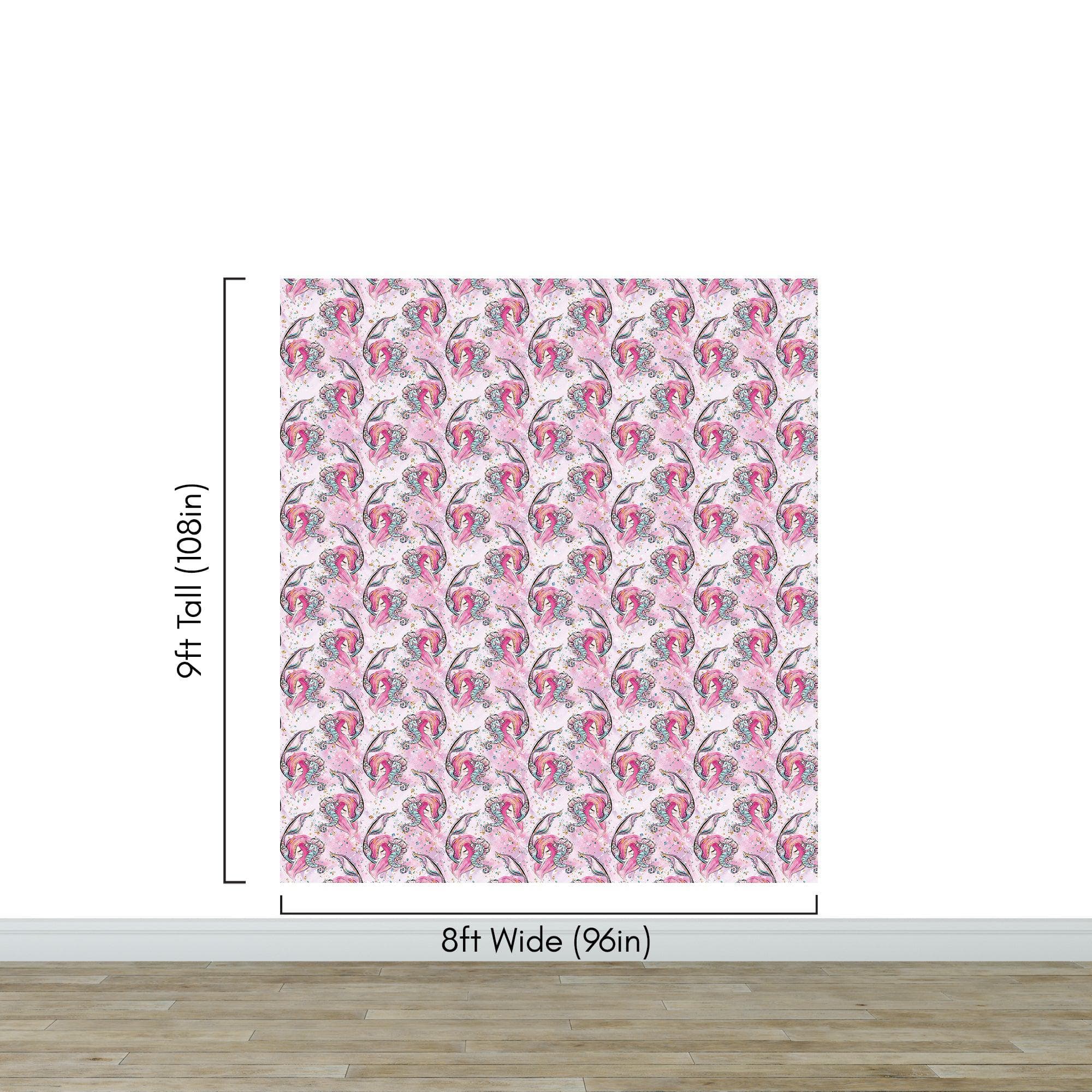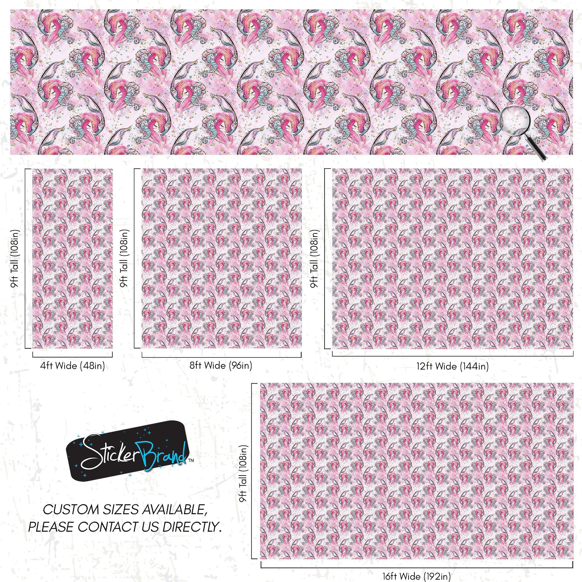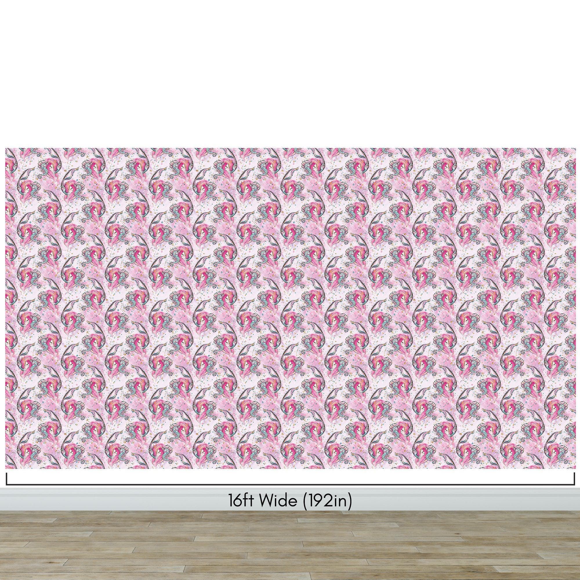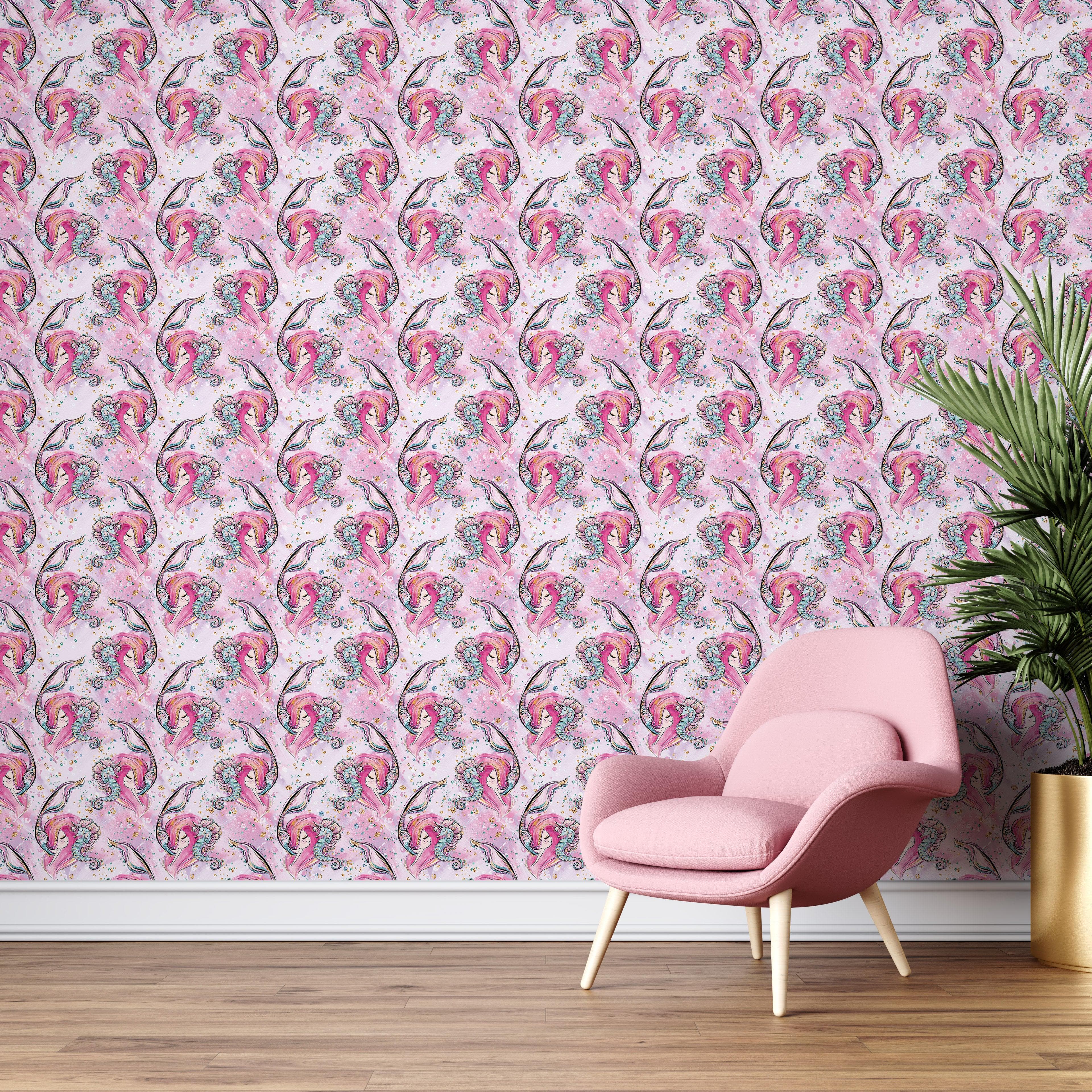 Pink Mermaid Wall Mural. Magical Cute Mermaid and Seahorse in Ocean Peel and Stick Wallpaper. #6371