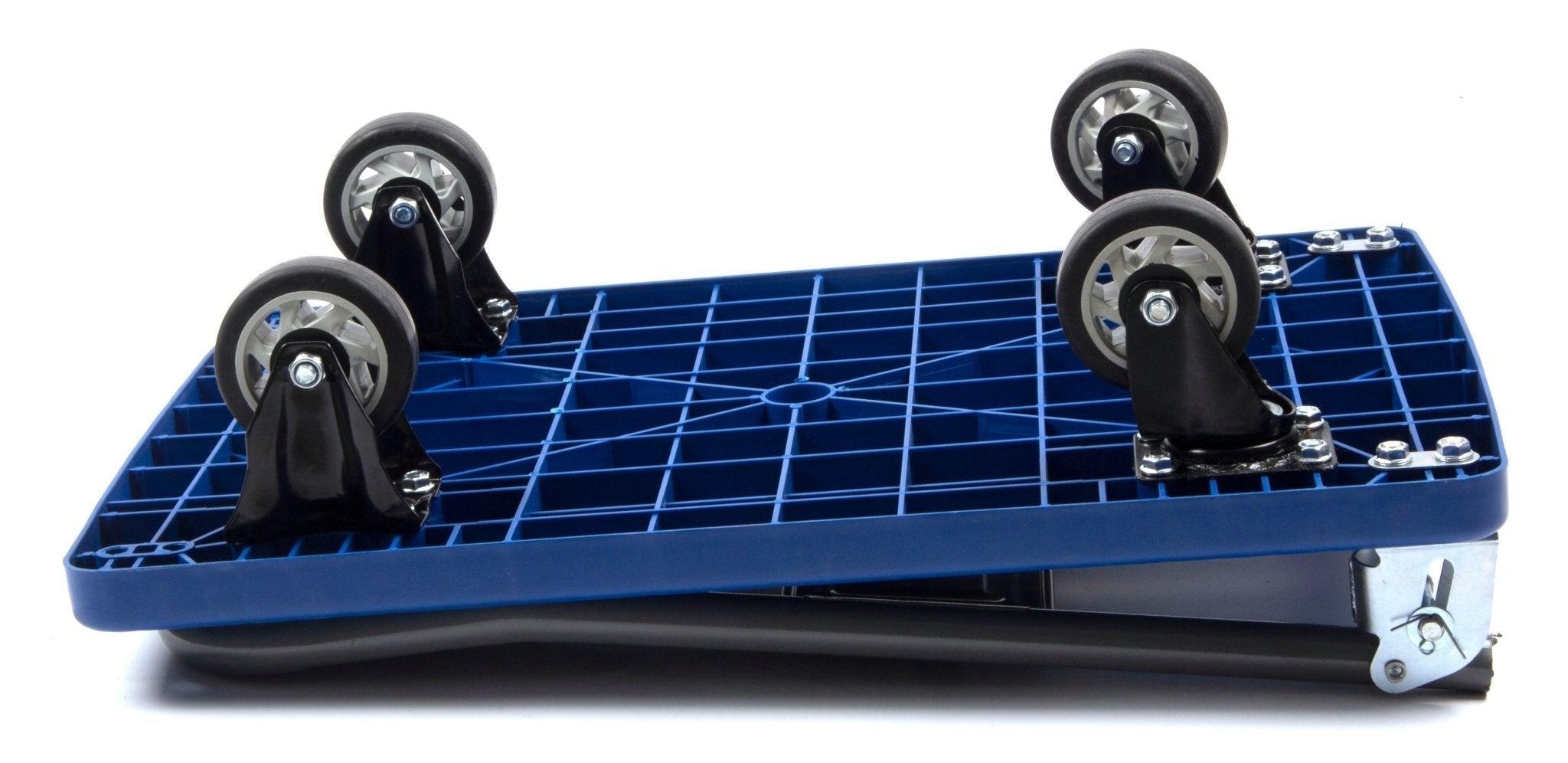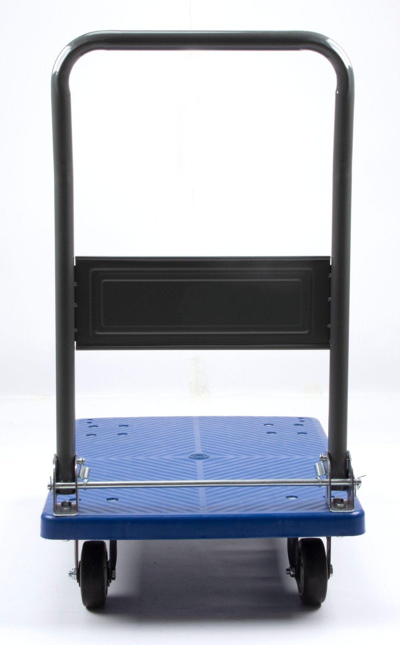Tired of bulky carts? This platform push cart dolly is designed for easy storage. Fold down the padded handle in seconds to lay flush on the platform.