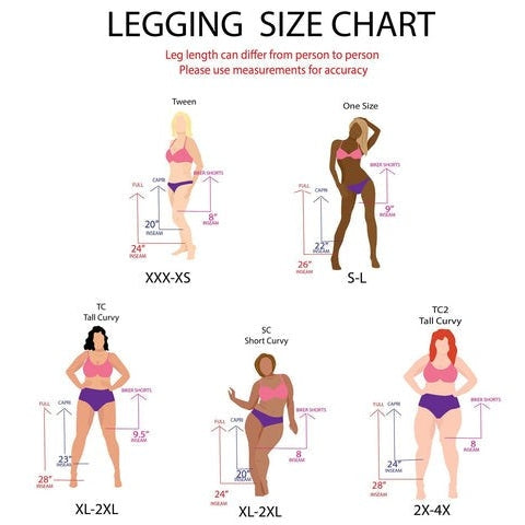 Floral leggings with dark purple background.  It features larger flowers, filigree, and small butterflies.  Available in three sizes