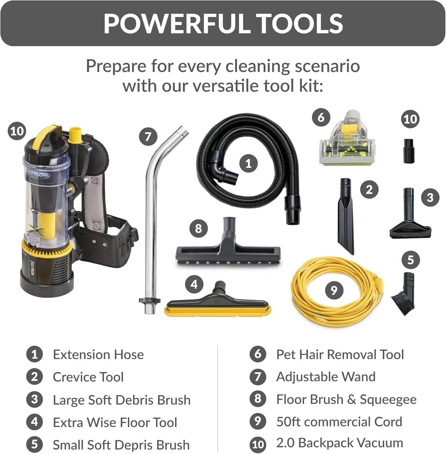 Prolux 2.0 Commercial Bagless Upright Backpack Vacuum with Deluxe 1 1/2 inch Tool Kit