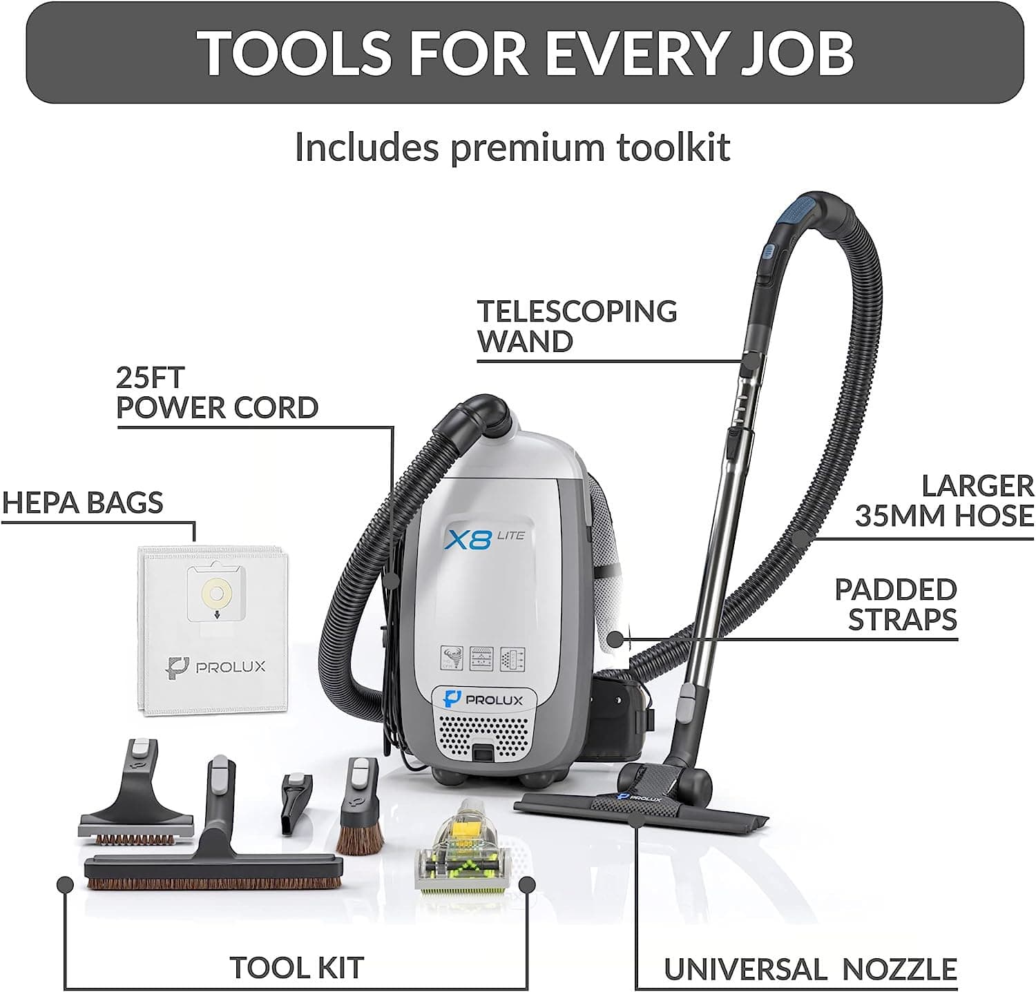 Prolux X8 Lite Backpack Vacuum w/ Premium Tool Kit for Light Commercial Use