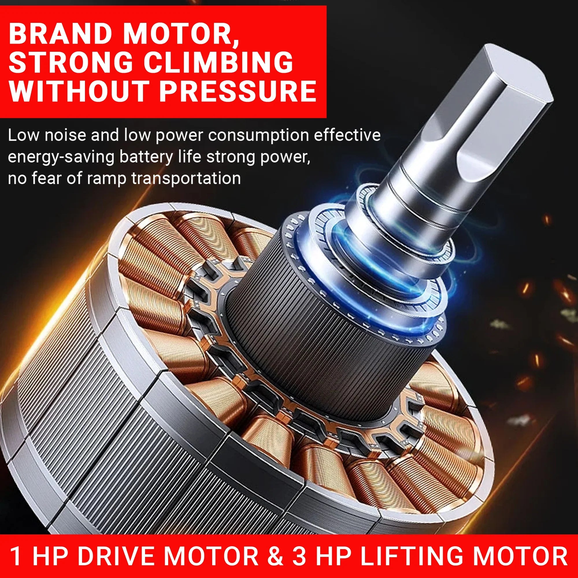 1 hp Drive Motor & 3 hp Lifting Motor: Ensures smooth and powerful operation, allowing for quick and efficient material handling.