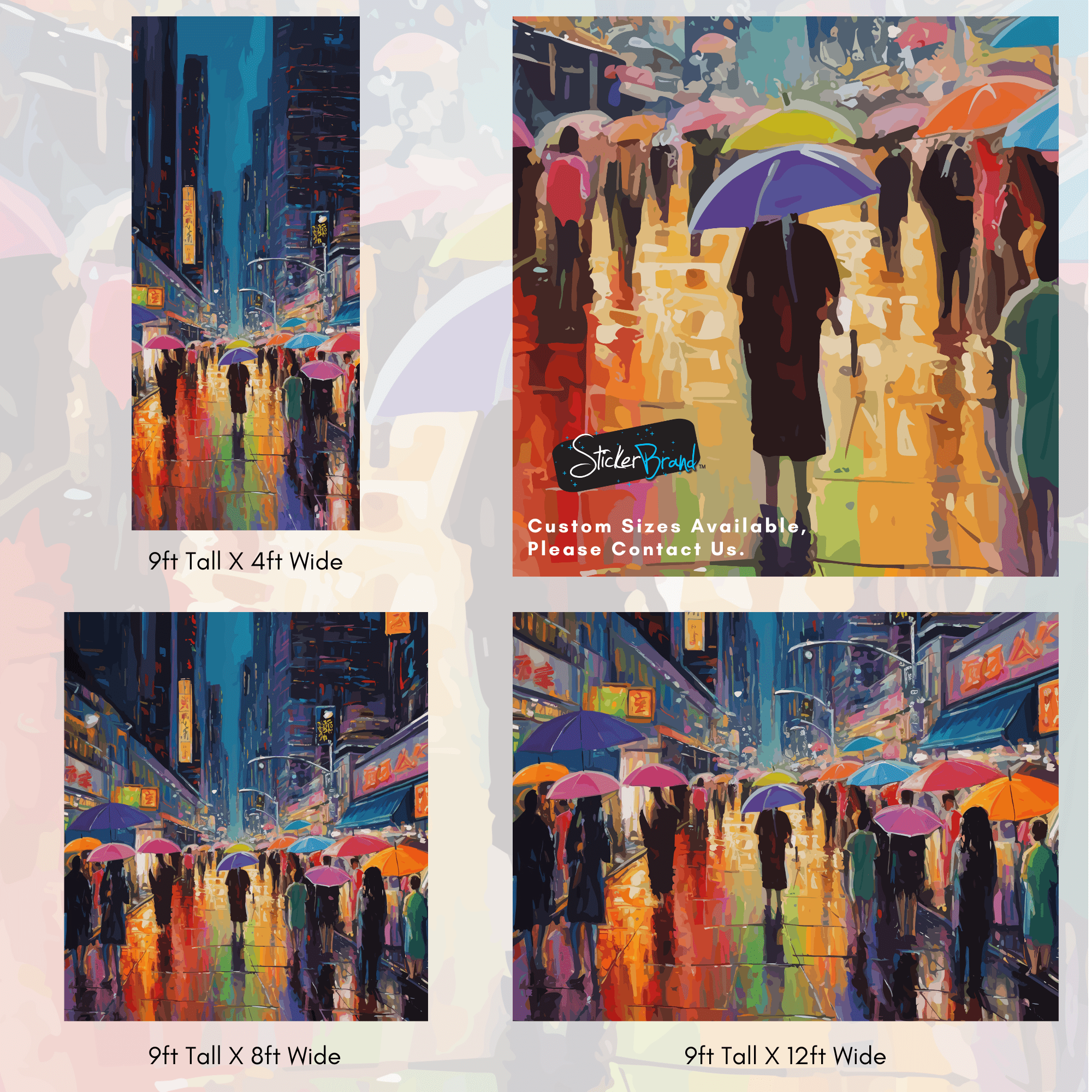Raining Cityscape Wallpaper Mural - Abstract Color Mural. #6762