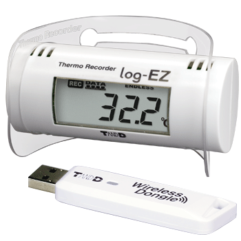 Download recorded temperature and humidity data from the log-EZ to your PC via wireless communication.Data recorded by the log-EZ can be downloaded to a PC on which the dedicated software "log-EZ for Windows" has been installed. The wireless communication function releases you from the burden of physically gathering the data loggers to check or collect data, or connecting the logger to your PC with a USB cable. Also, data recorded by multiple log-EZ units can be viewed via one computer which has the Wireless Dongle connected to it.What is the Wireless Dongle?