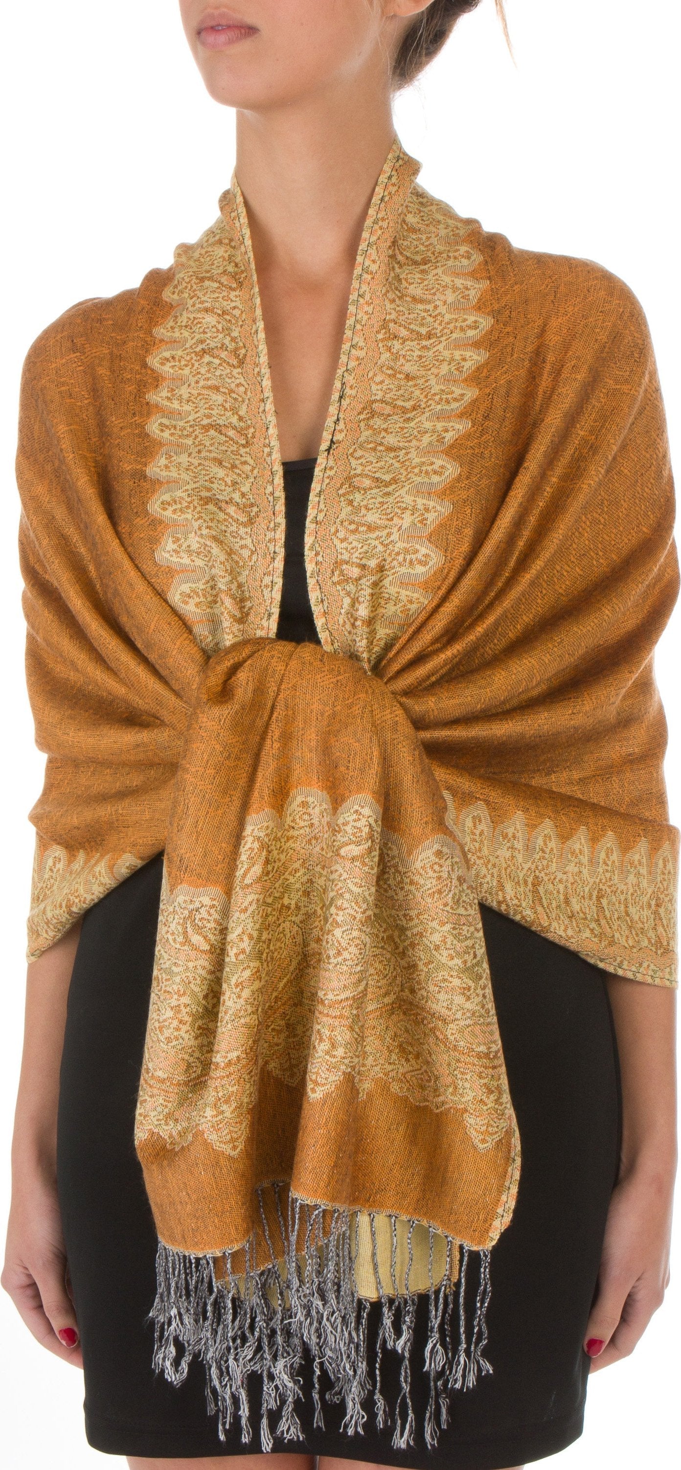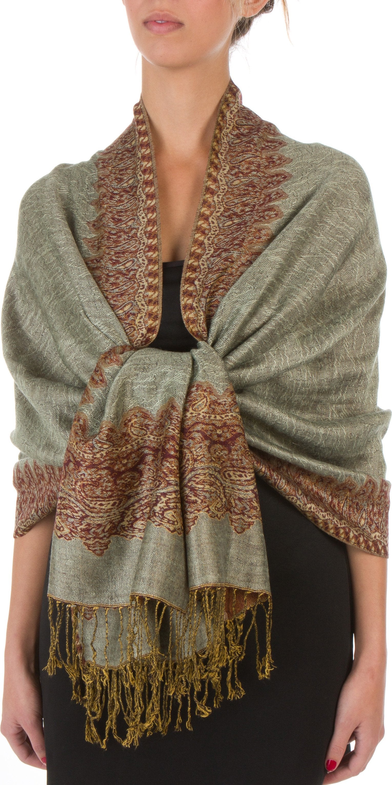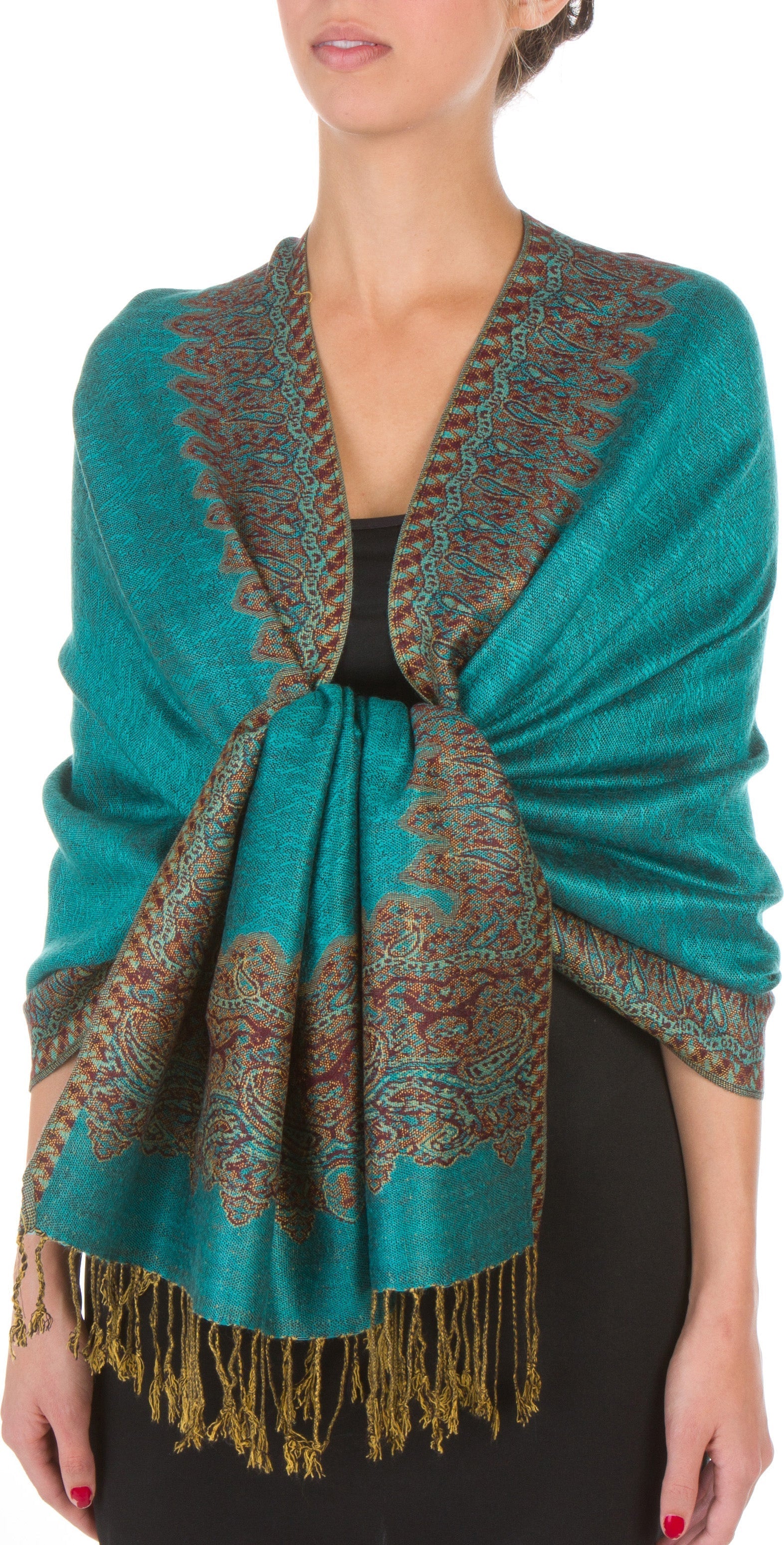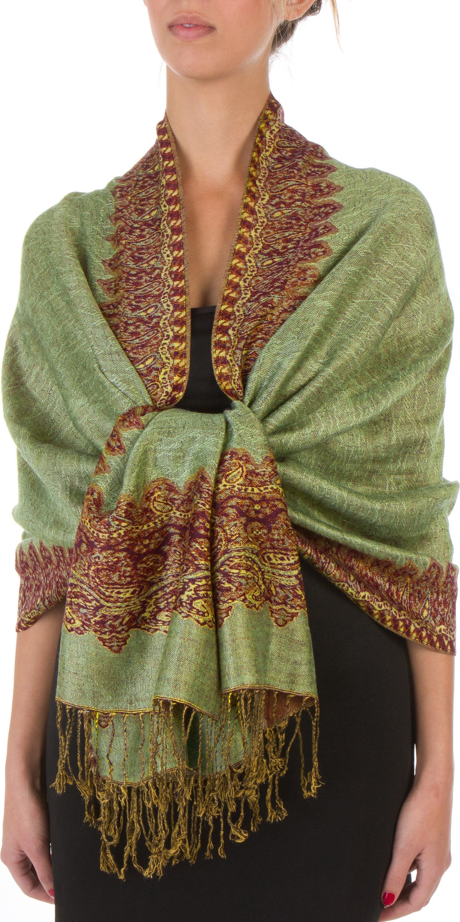 Sakkas 70" x 28" Border Pattern Layered Woven Pashmina Shawl Scarf Wrap Stole