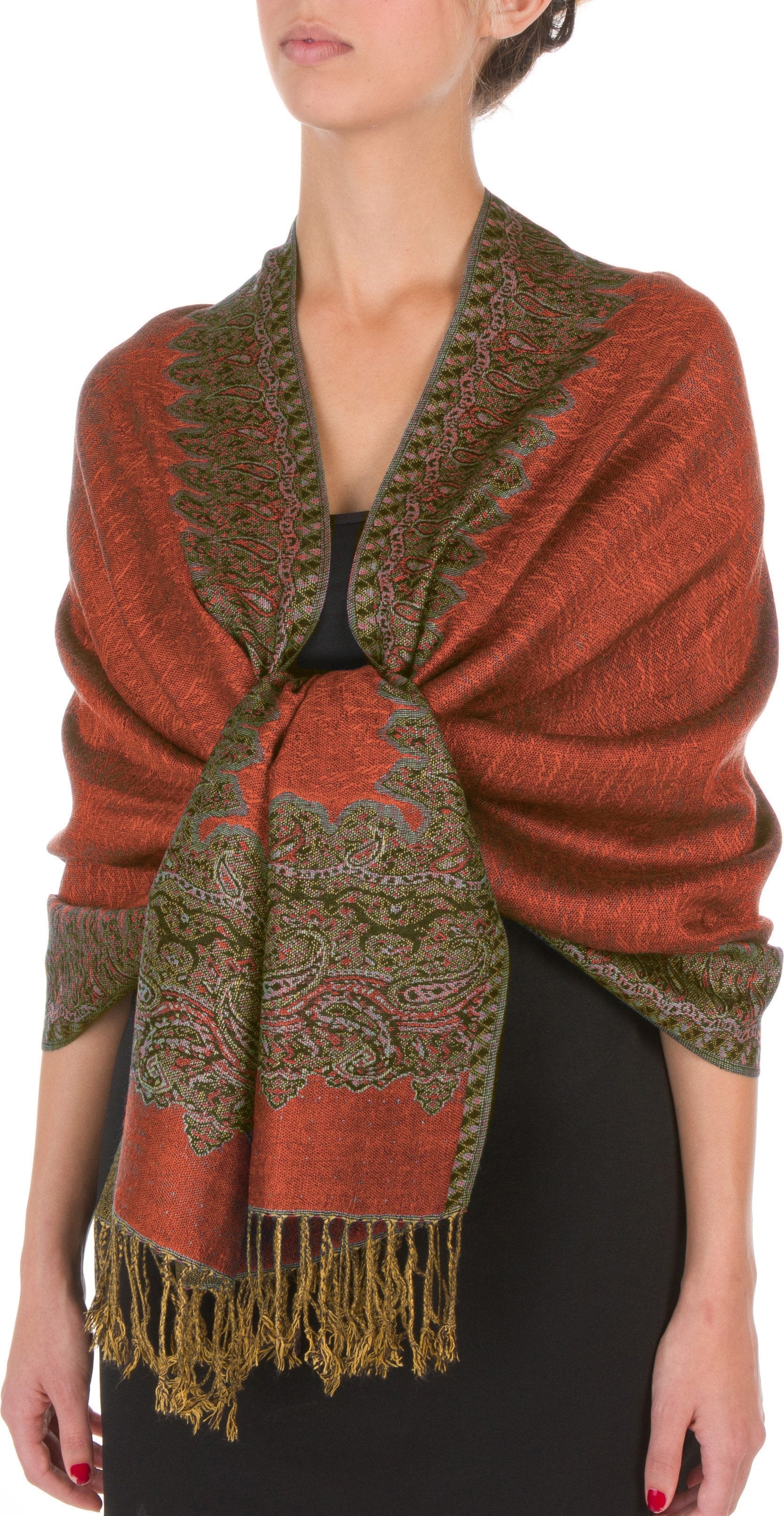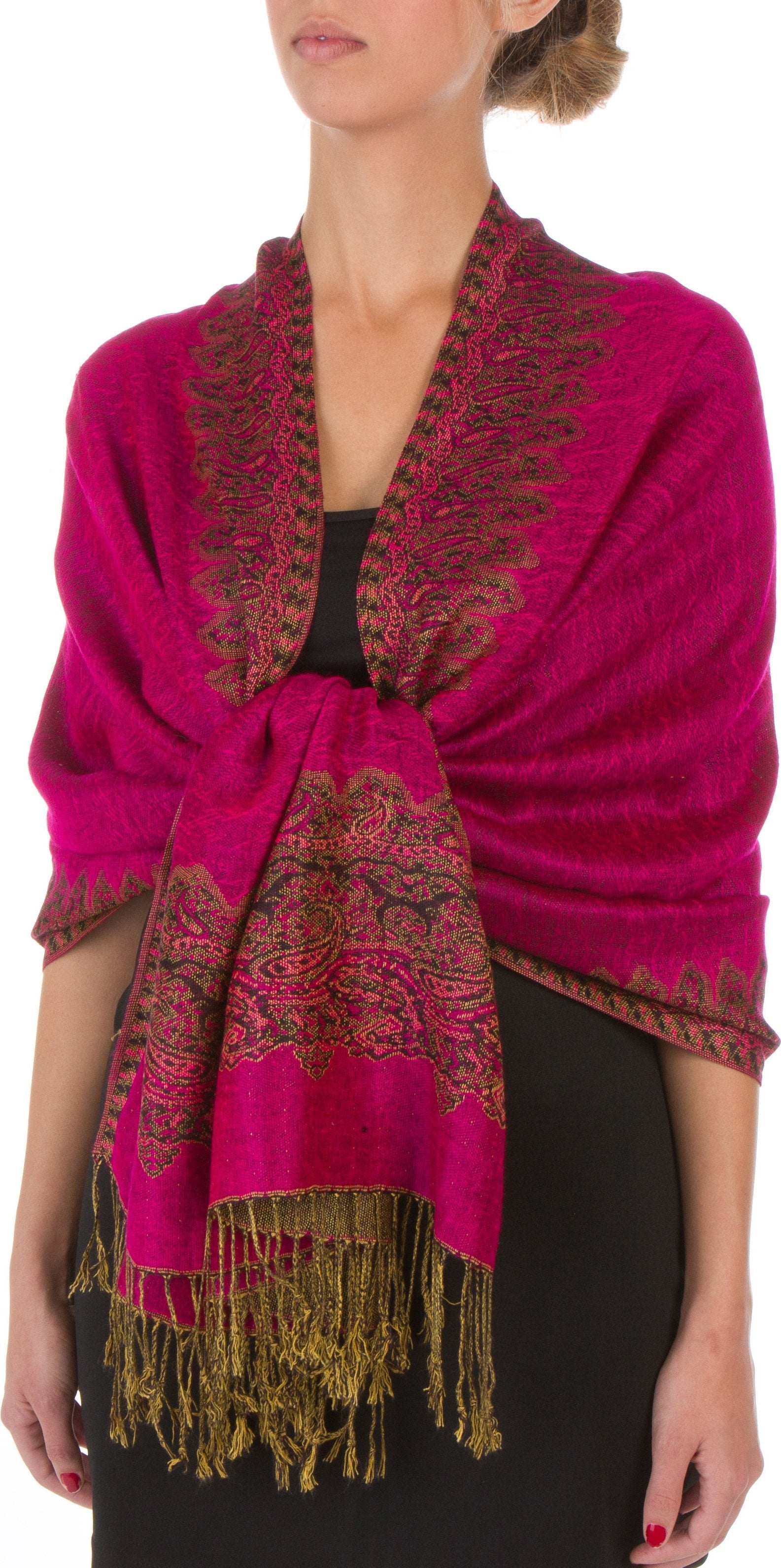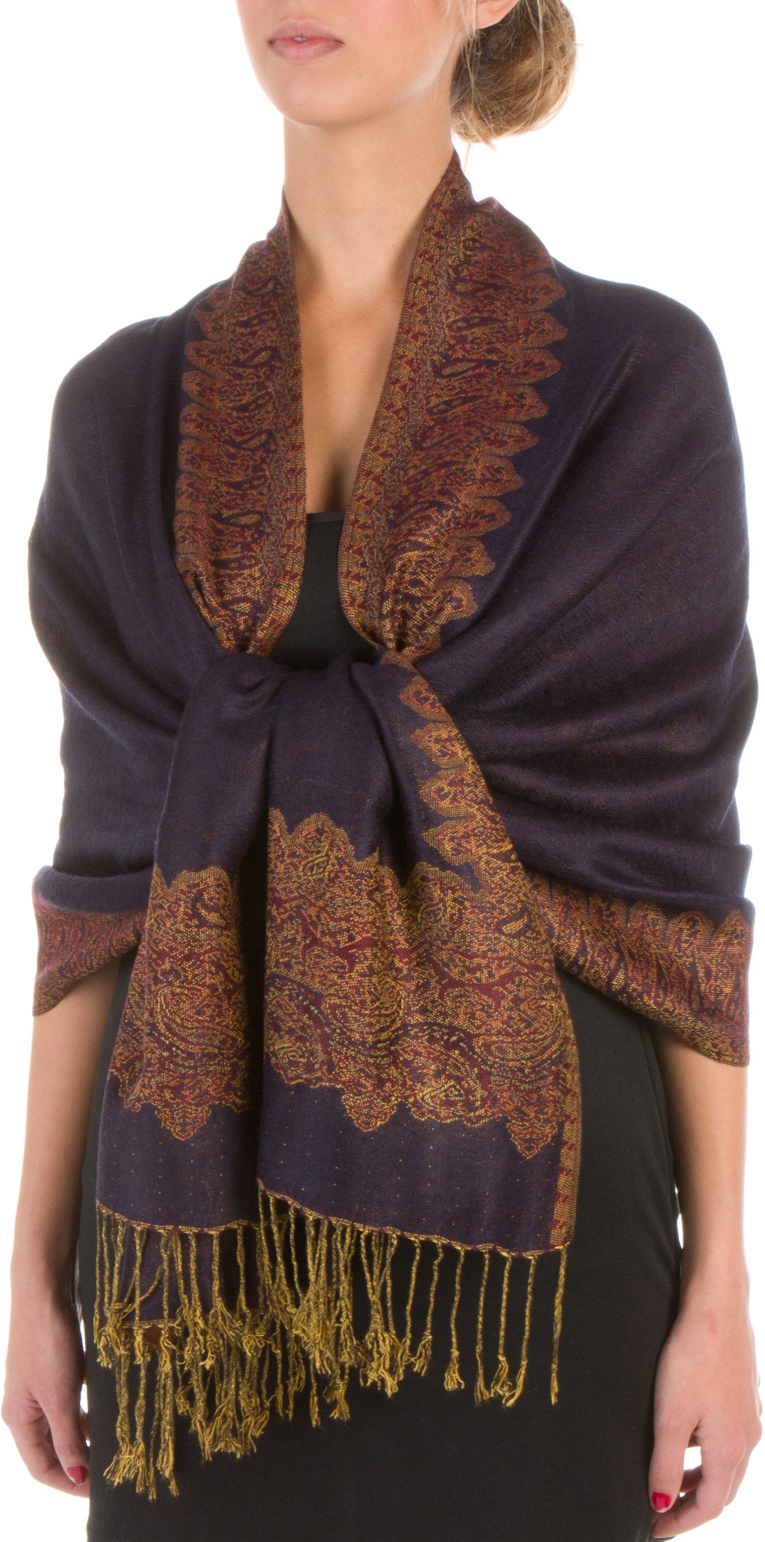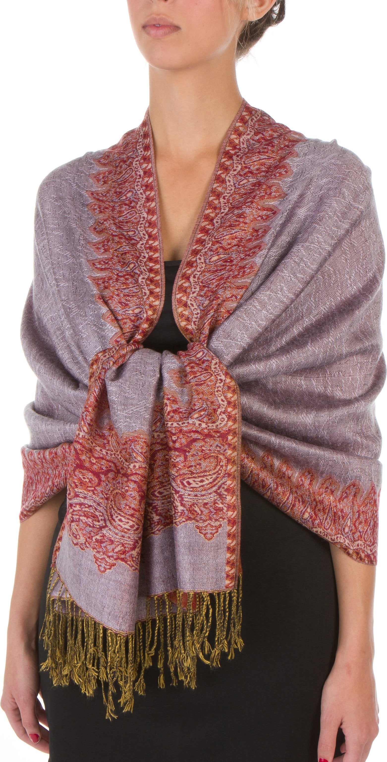Sakkas 70" x 28" Border Pattern Layered Woven Pashmina Shawl Scarf Wrap Stole