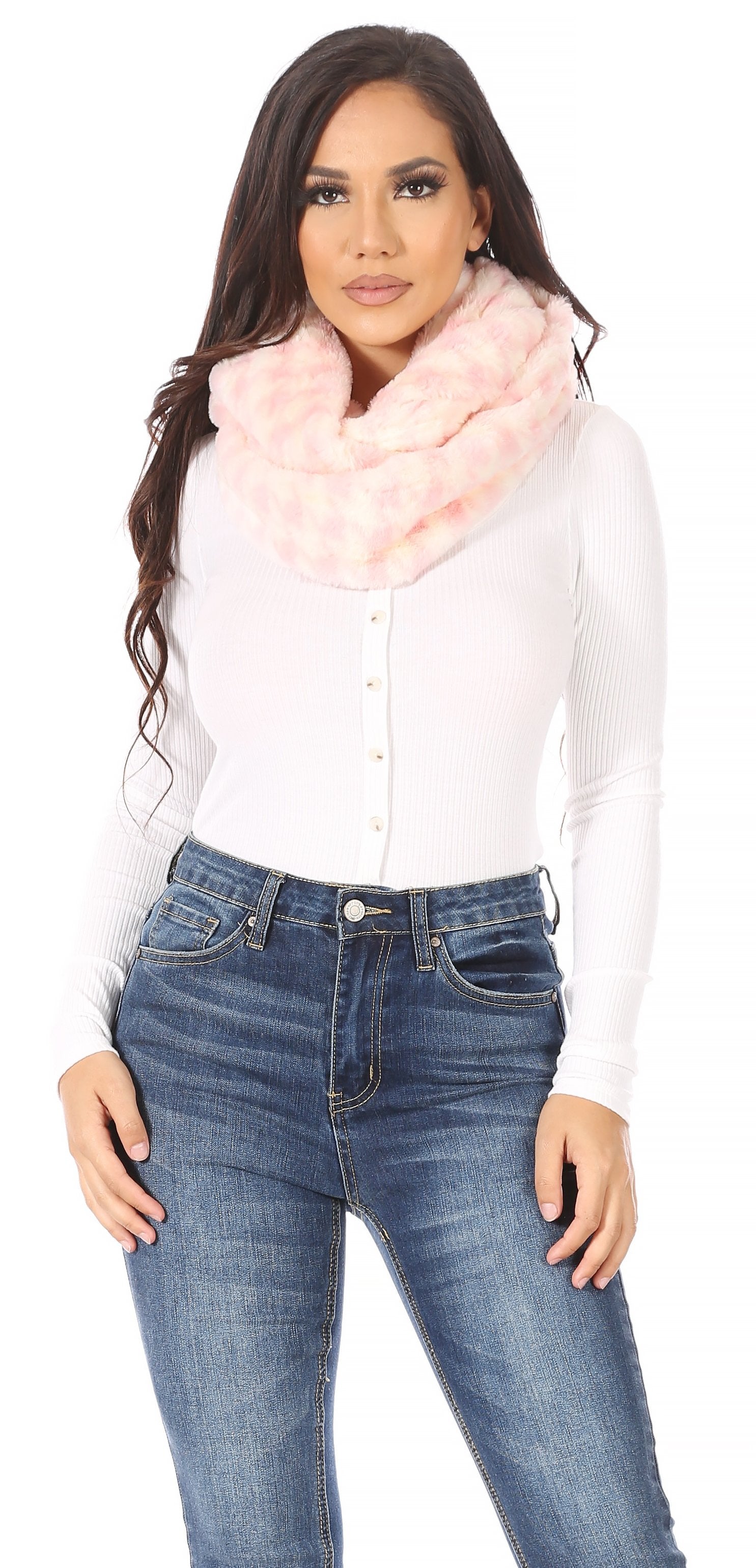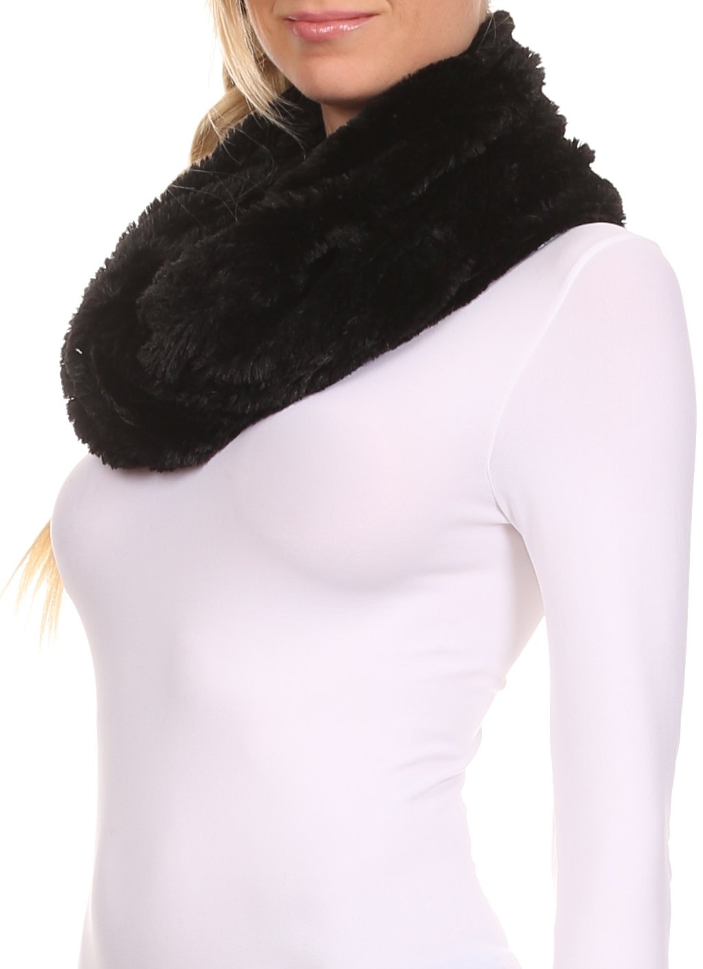This beautiful solid pattern winter neck lined infinity fur scarf comes in various colors select from black, white, grey and much more. Extremely soft and warm eye-catching style infinity fur scarf in unique fur pattern and colors. This is the perfect furry scarf you need in your fall and cold weather winter wardrobe. This scarf can be styled in so many ways. Wrapped around over or under winter clothing and coats. Can also be worn around neck with a t-shirt or long sleeve shirt. Color combinations can make a great statement piece or complimentary piece to any outfit. Can be dressed up or down.