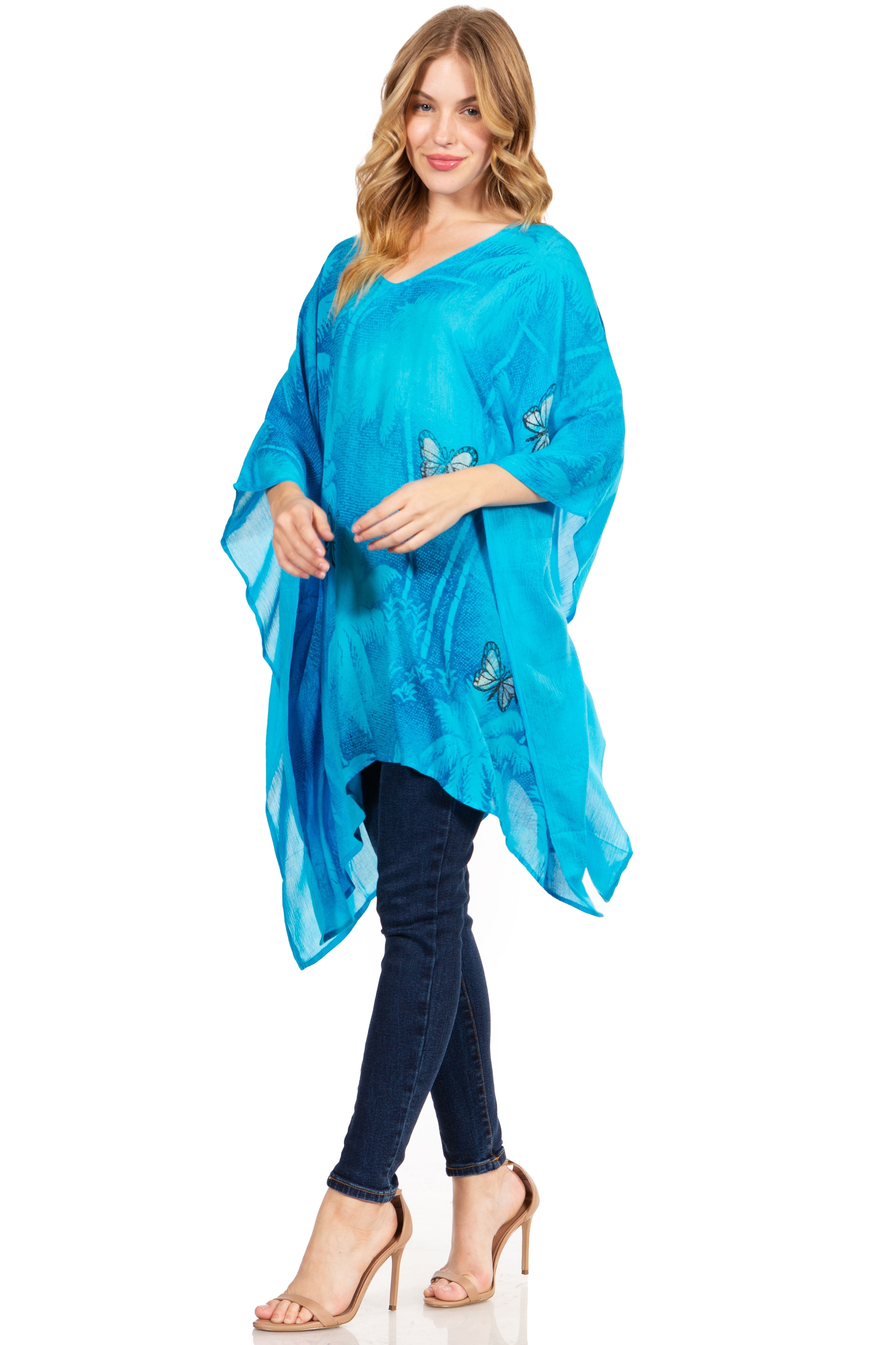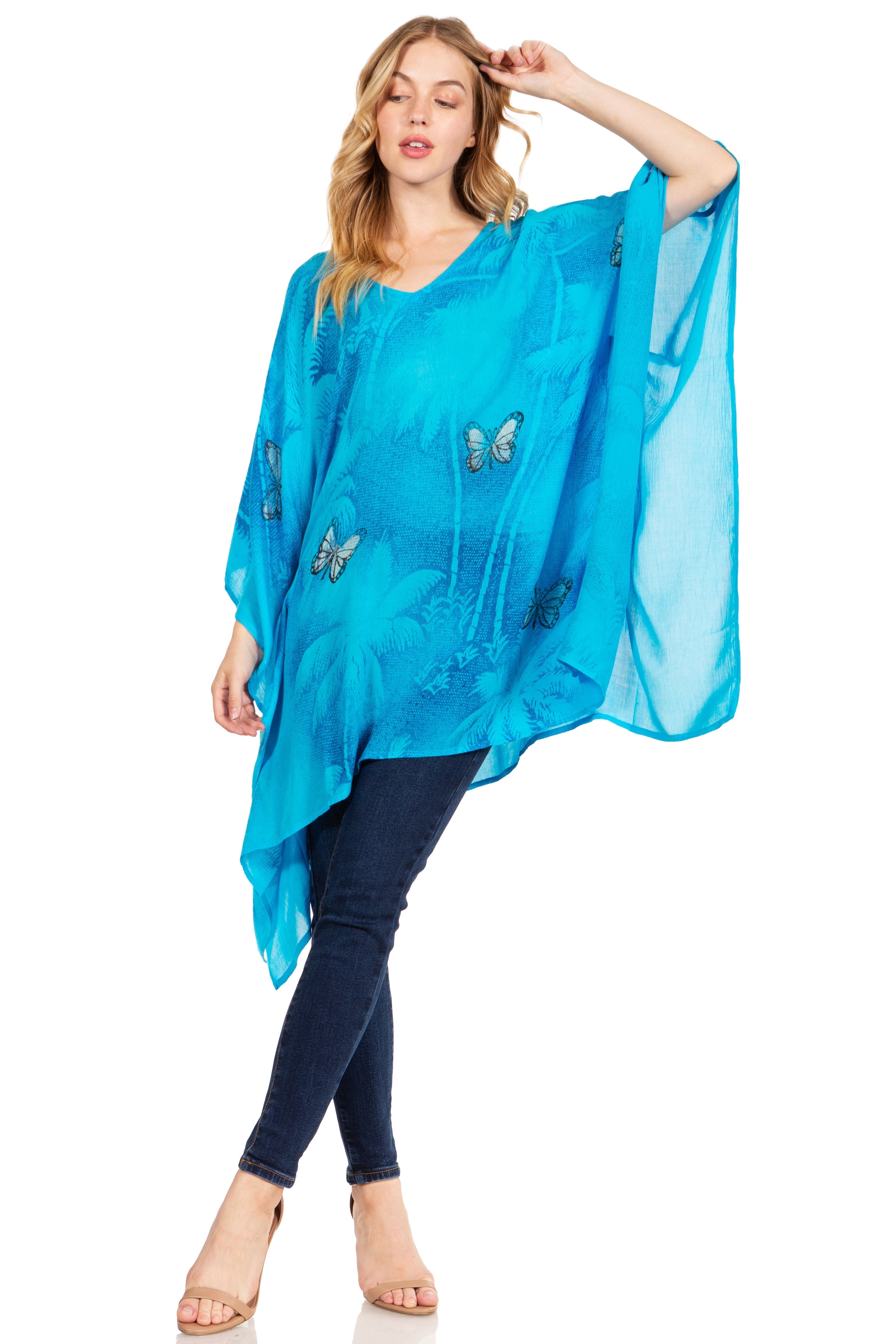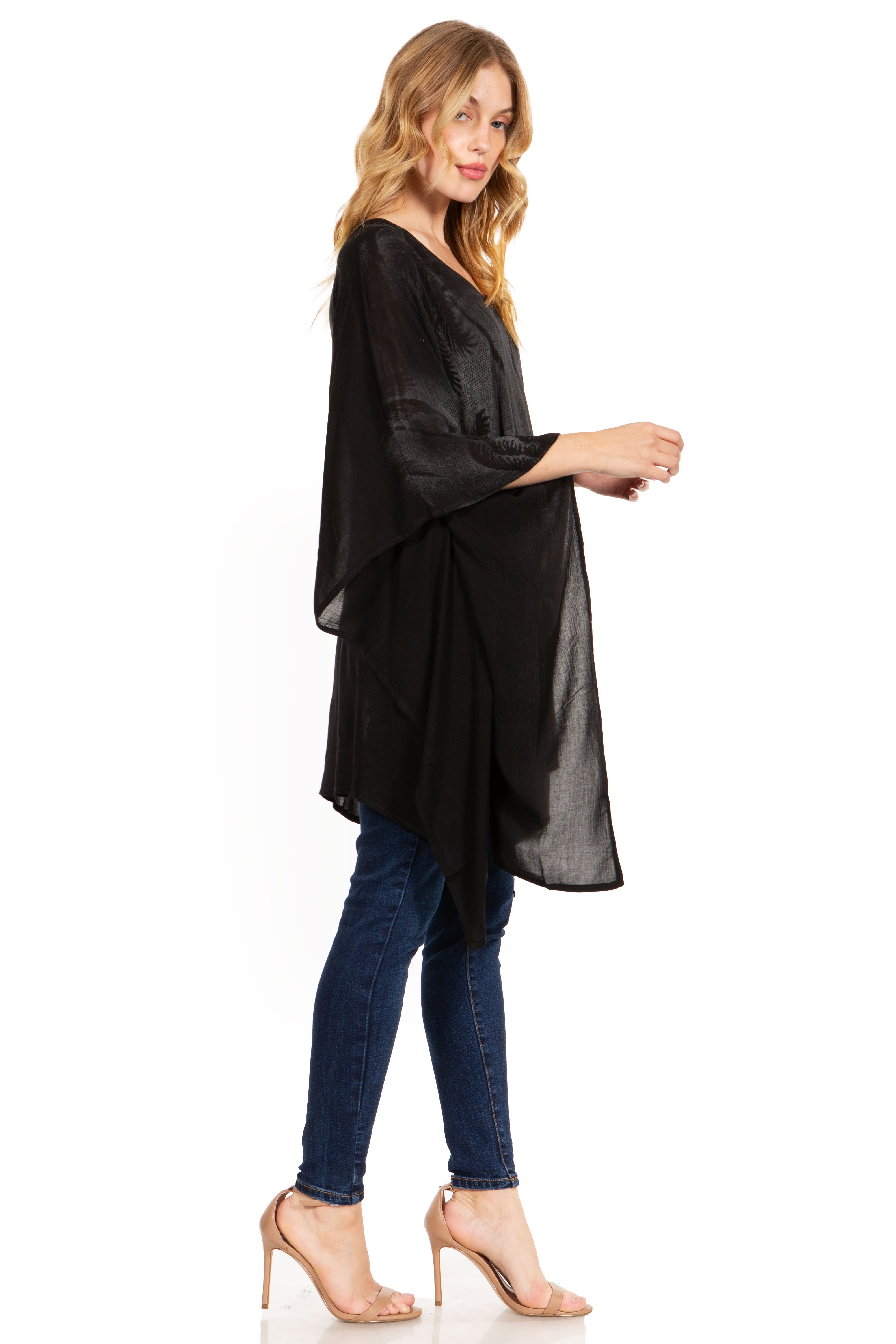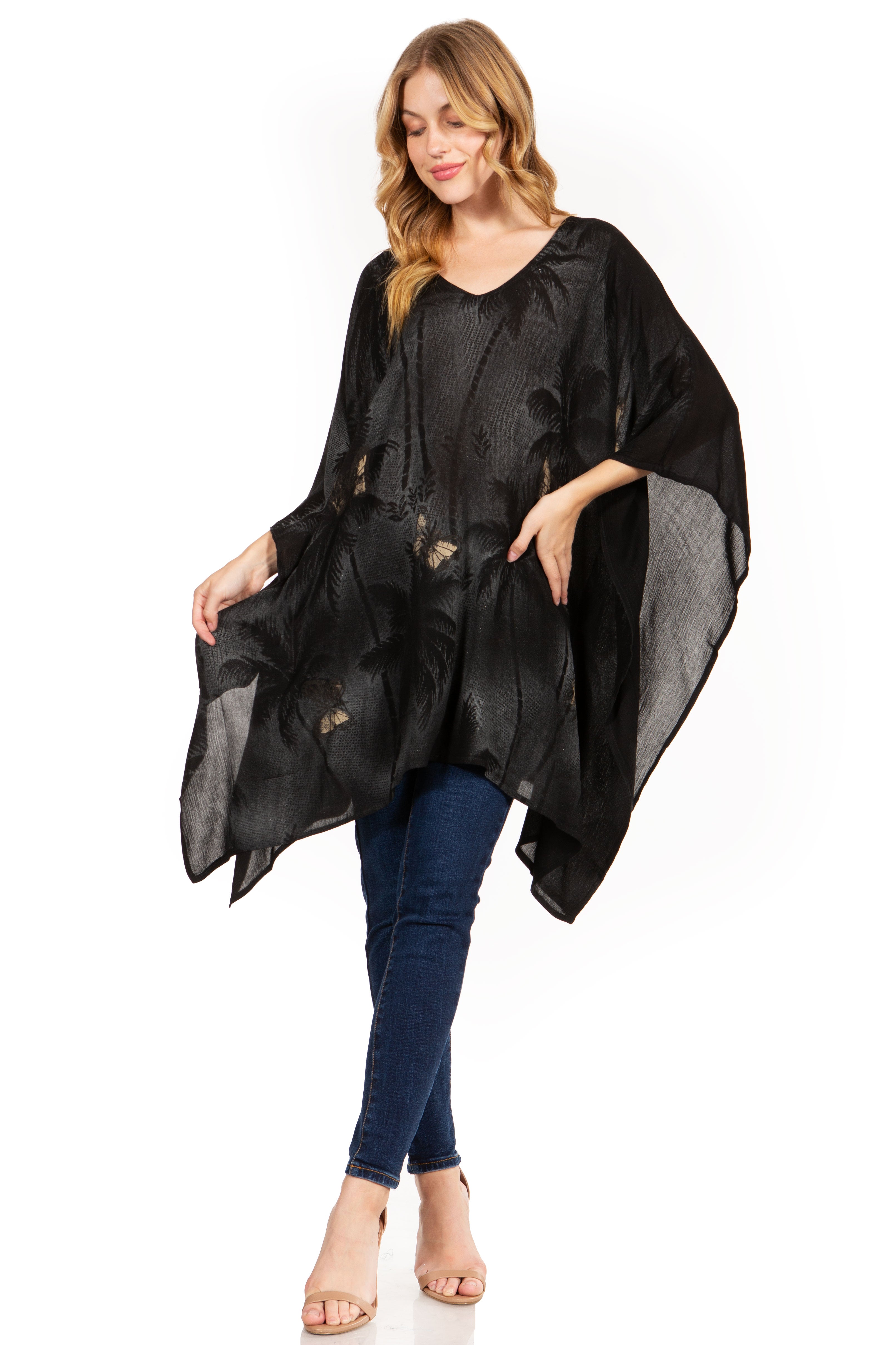 • Versatile and Simple: This classic Poncho Top Blouse Caftan Cover up top features a beautiful drape V-neck and generous armholes. Soft and light with the perfect fit and shape to be worn as a Top Blouse Caftan Cover up or everyday comfy top. Pair it with your favorite bottoms and sandals for an effortless look.