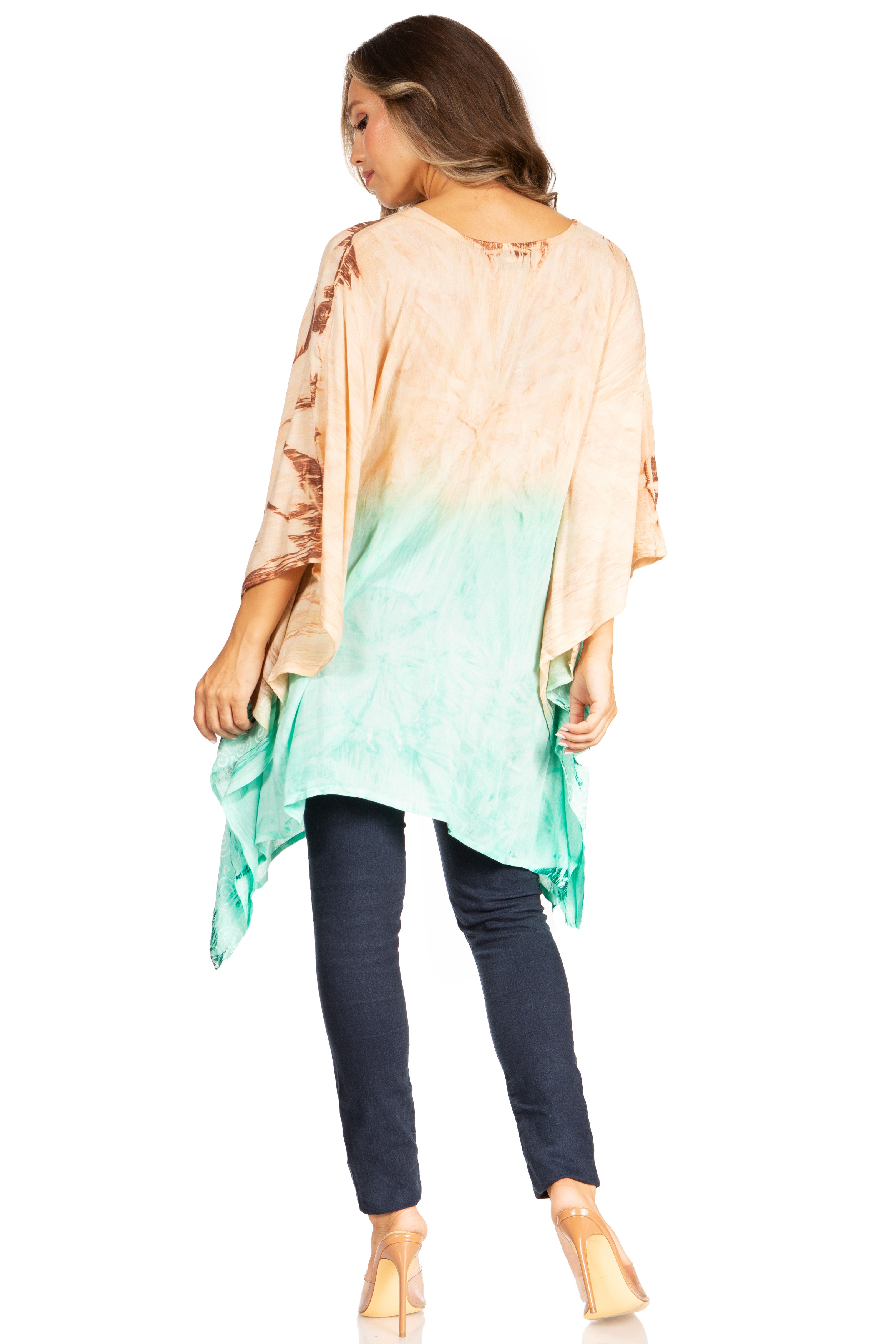 Sakkas Adalwin Third Tie Dye Desert Sun Circle Ponch Tunic Top Blouse W/Embroidery