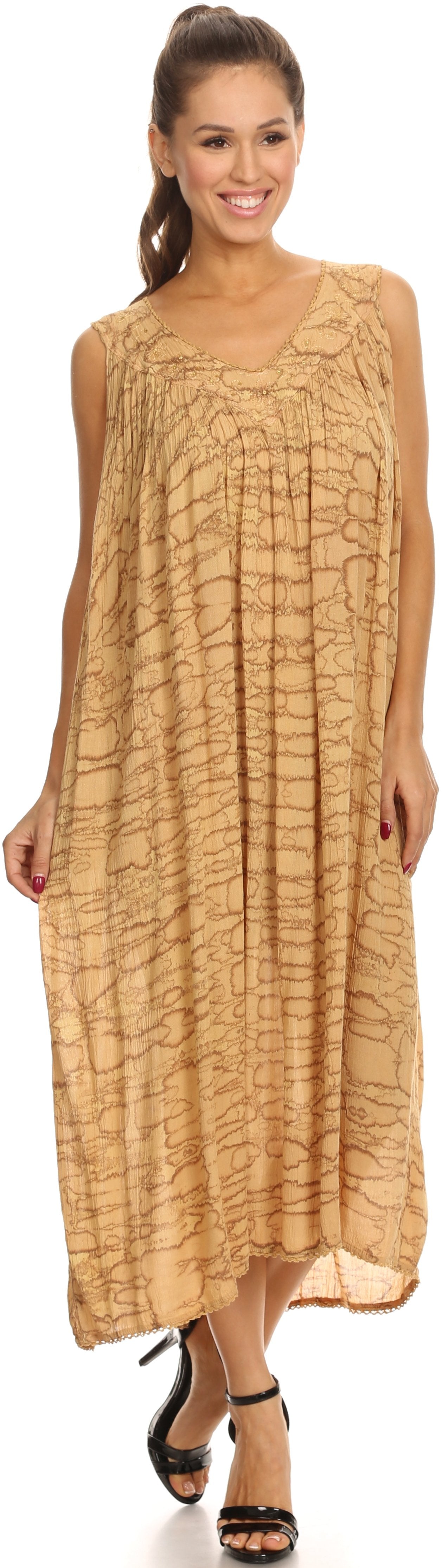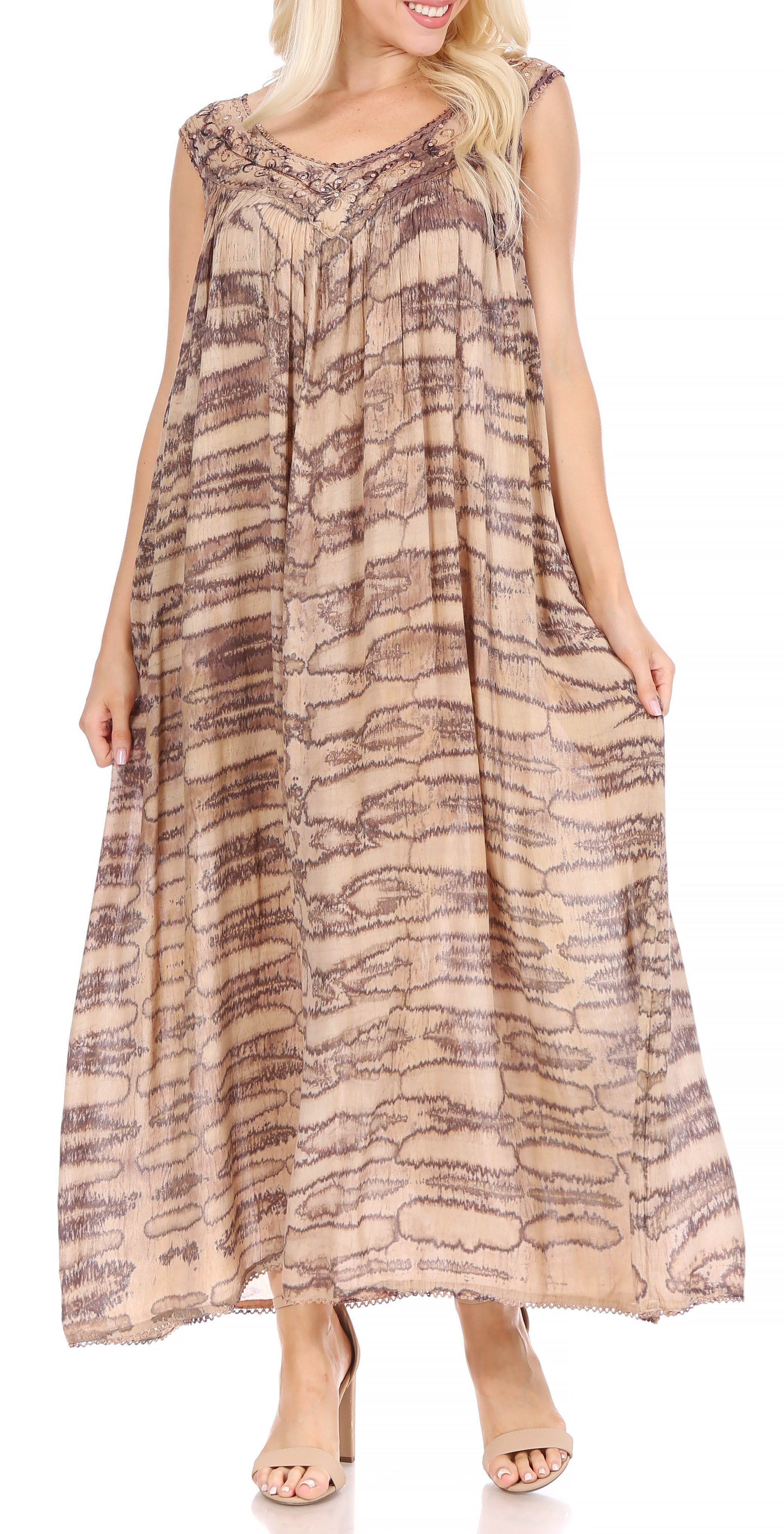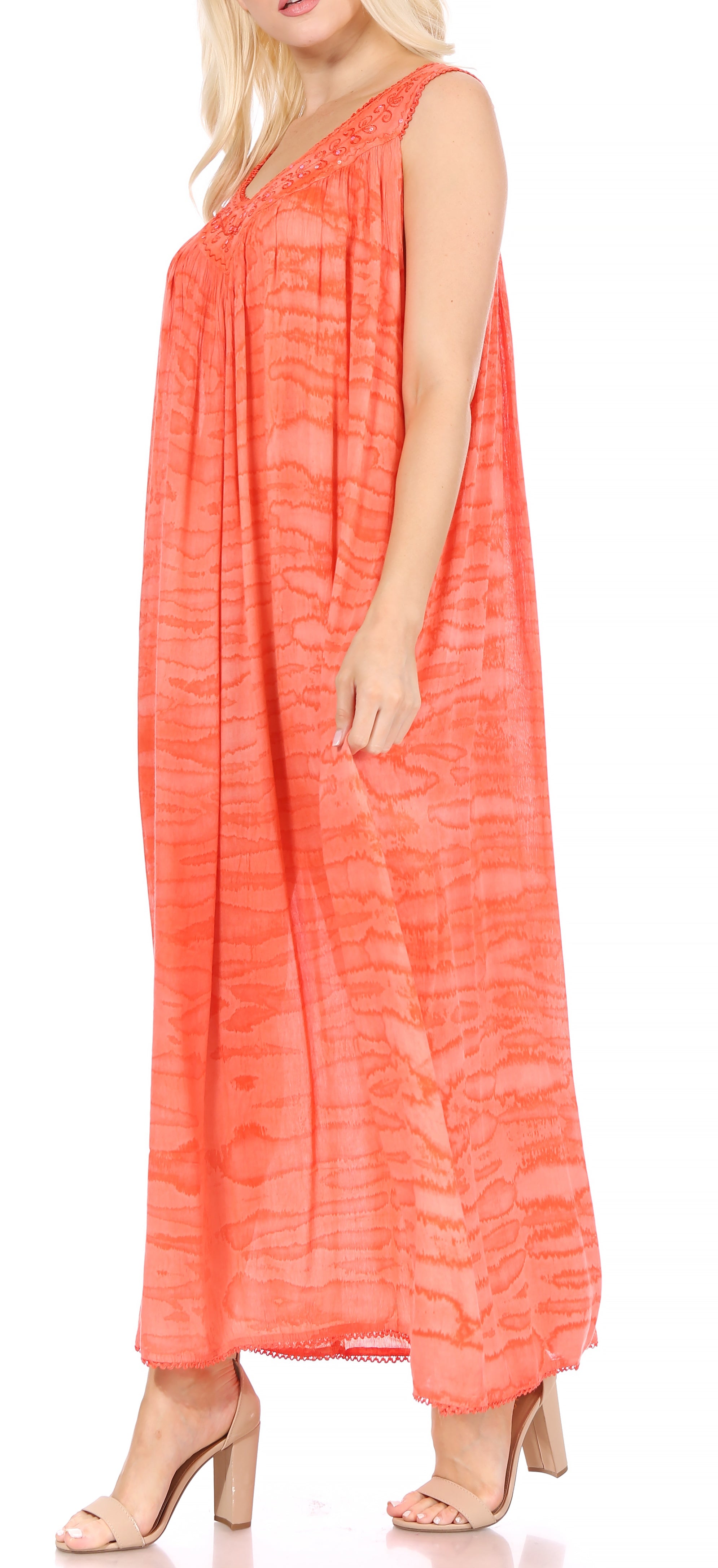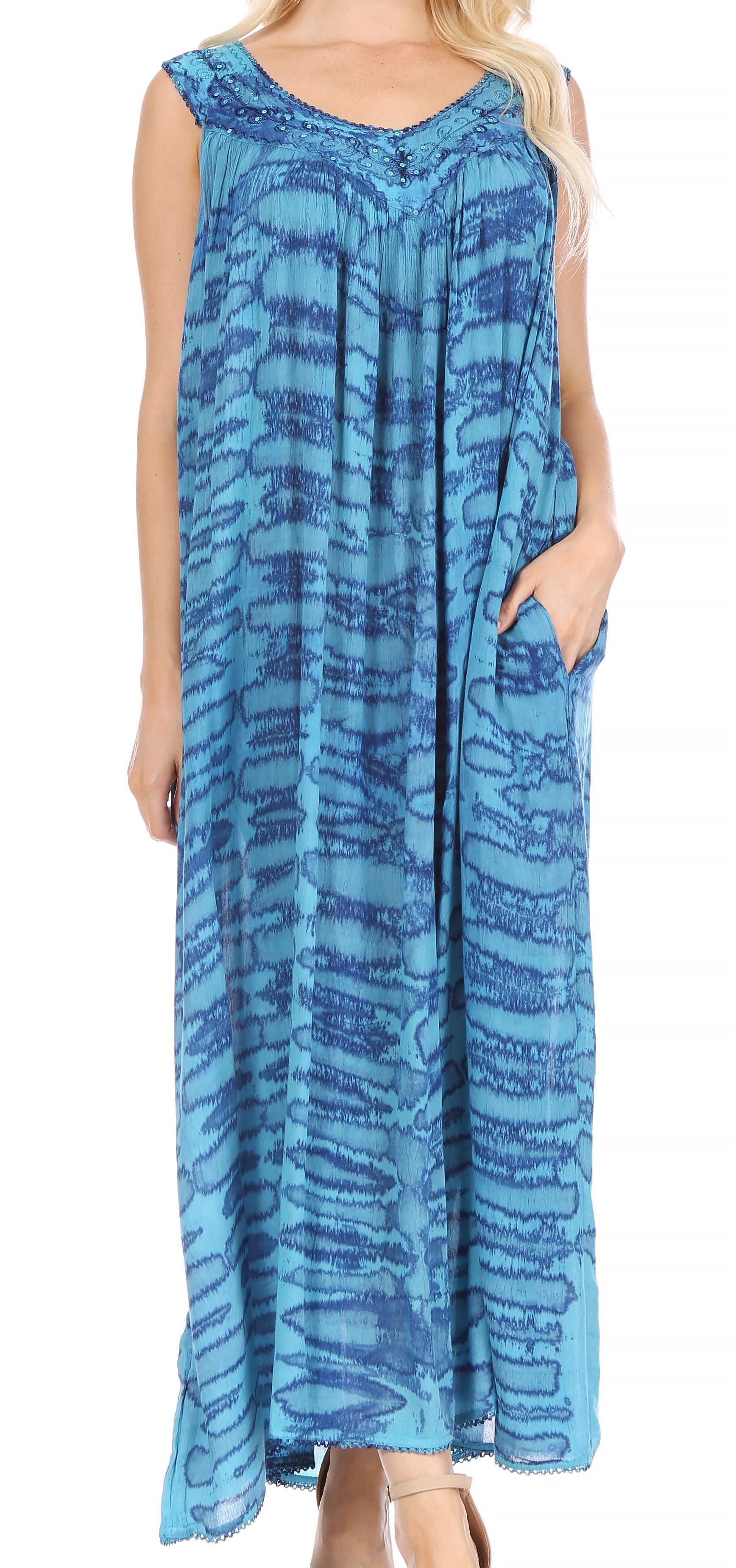 Features neckline sequin embroidery, scoop neck, and beautiful colors. Lightweight rayon fabric and relaxed fit makes this the perfect summer dress. Wear it when going out, as a swimsuit cover up, or loungewear! Hand wash separately in cold water. Line dry. | Material: 100% Rayon