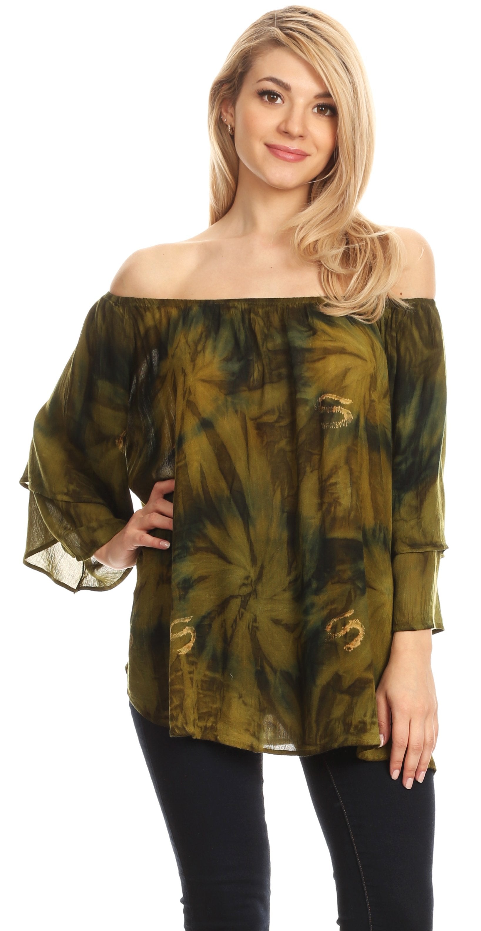 Sakkas Alania Watercolor Tie Dye Double Bell Sleeve Raglan Blouse