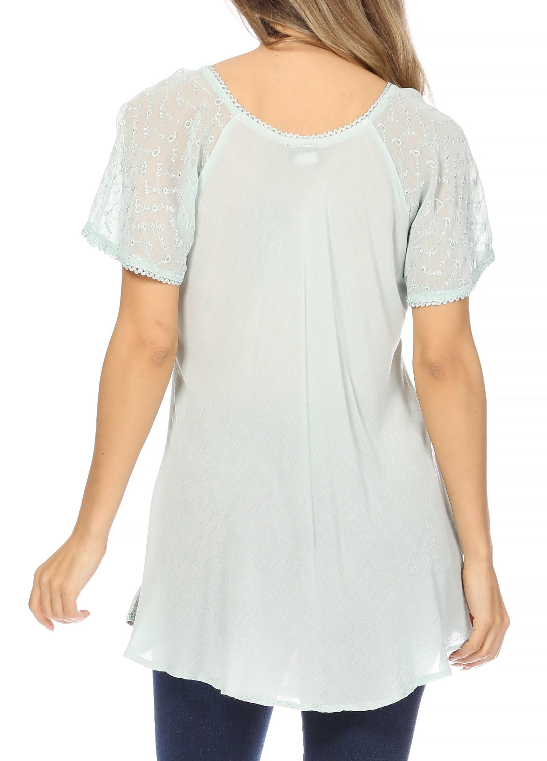 Sakkas Albina Island Relaxed Fit Embroidery Cap Sleeves Blouse / Top
