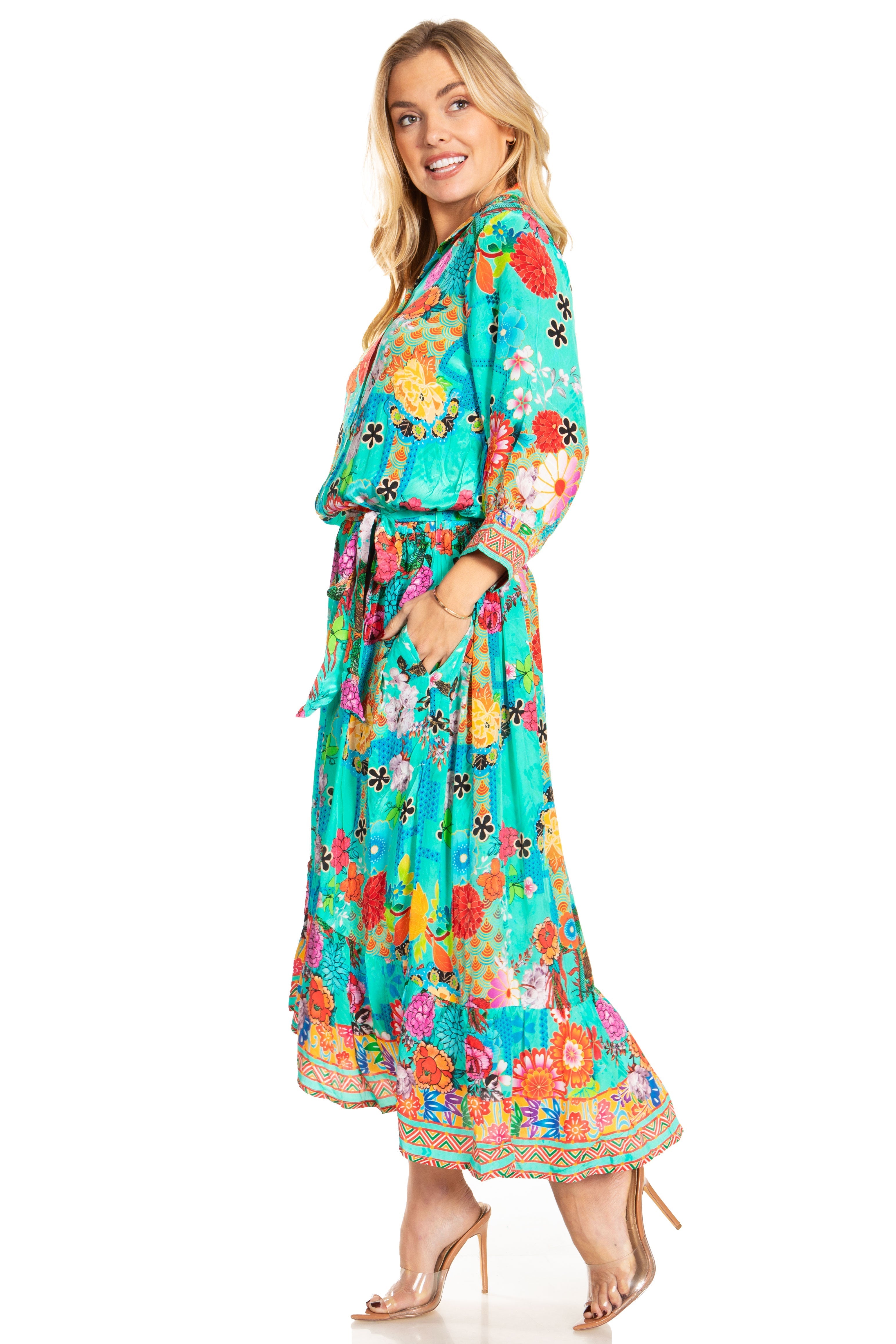 Get Stylish with Sakkas Andreas Women's Maxi Long Sleeve Floral Ruffle Dress with Pockets and Button Down