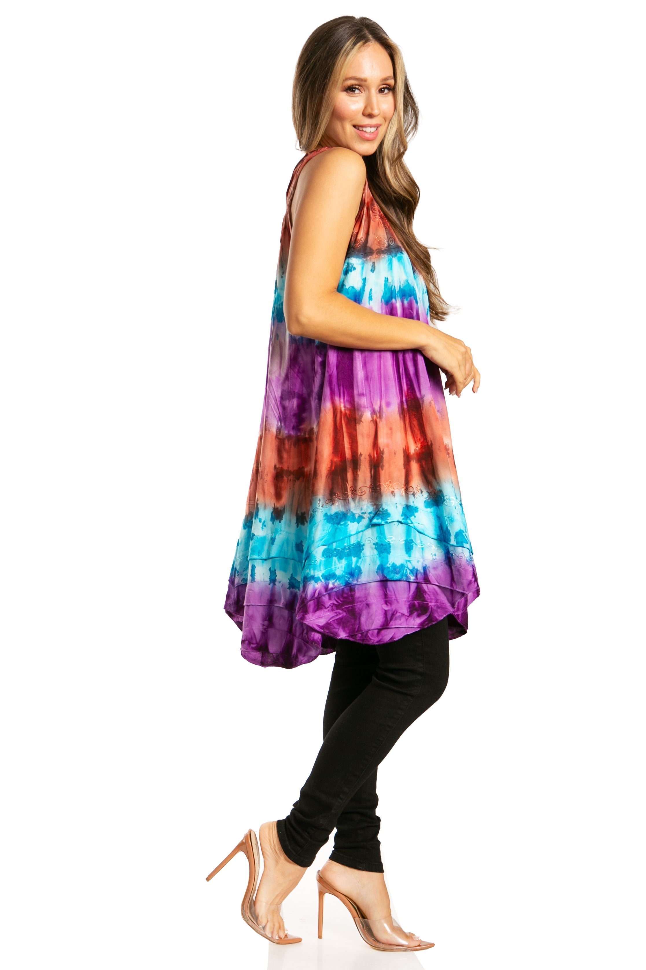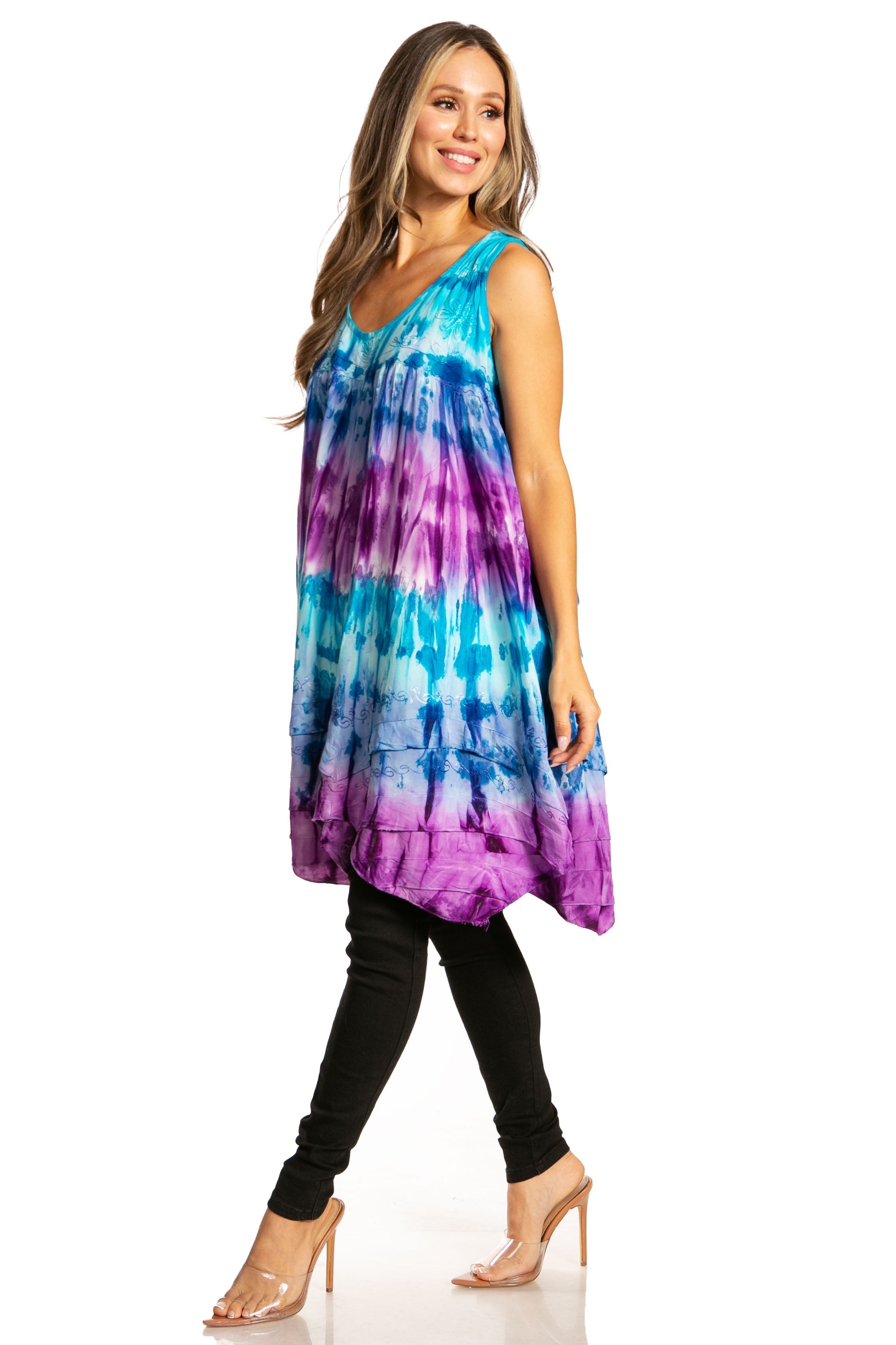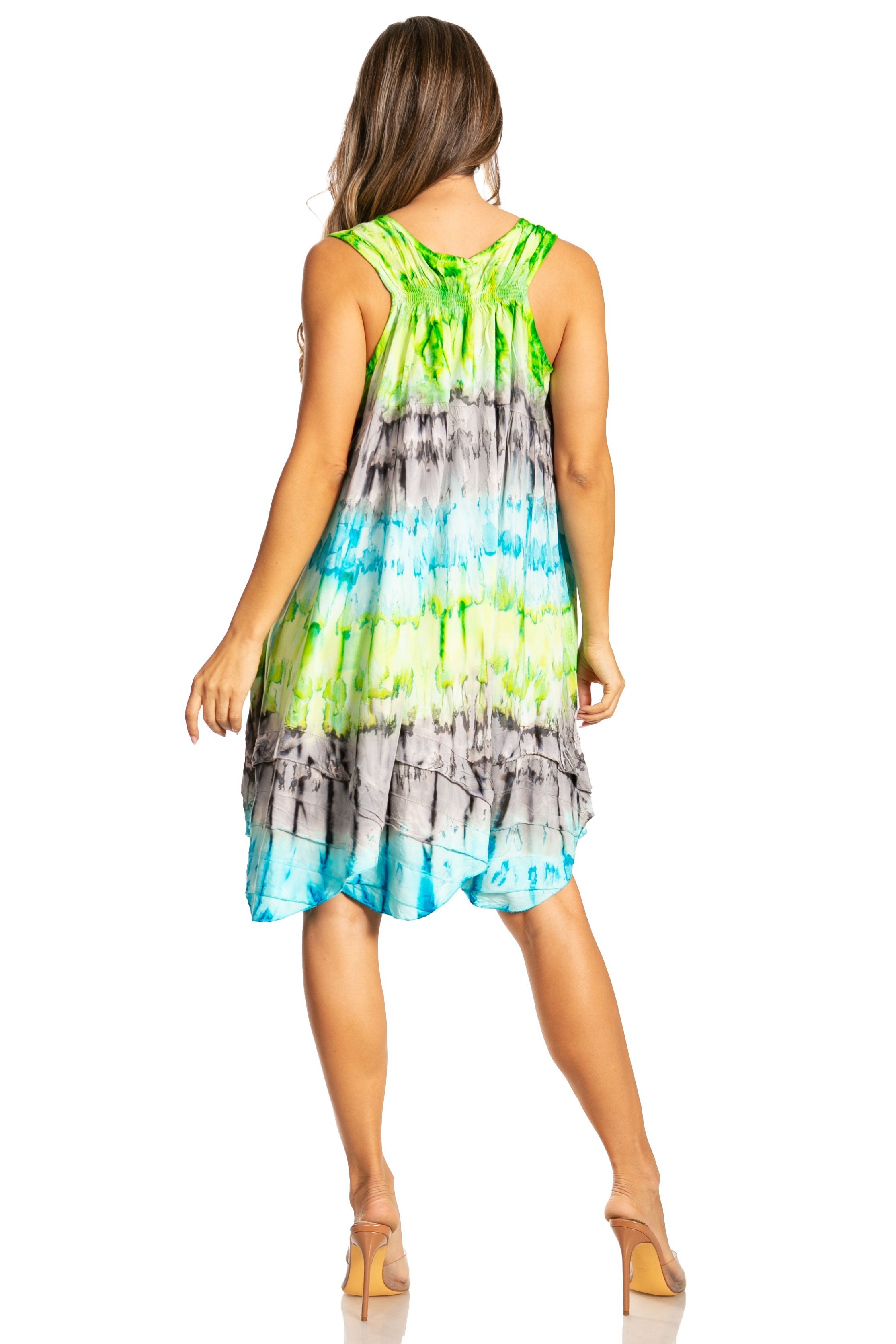 Sakkas Artemi Women's Casual Short Tie-dye Sleeveless Loose Tank Dress Cover-up