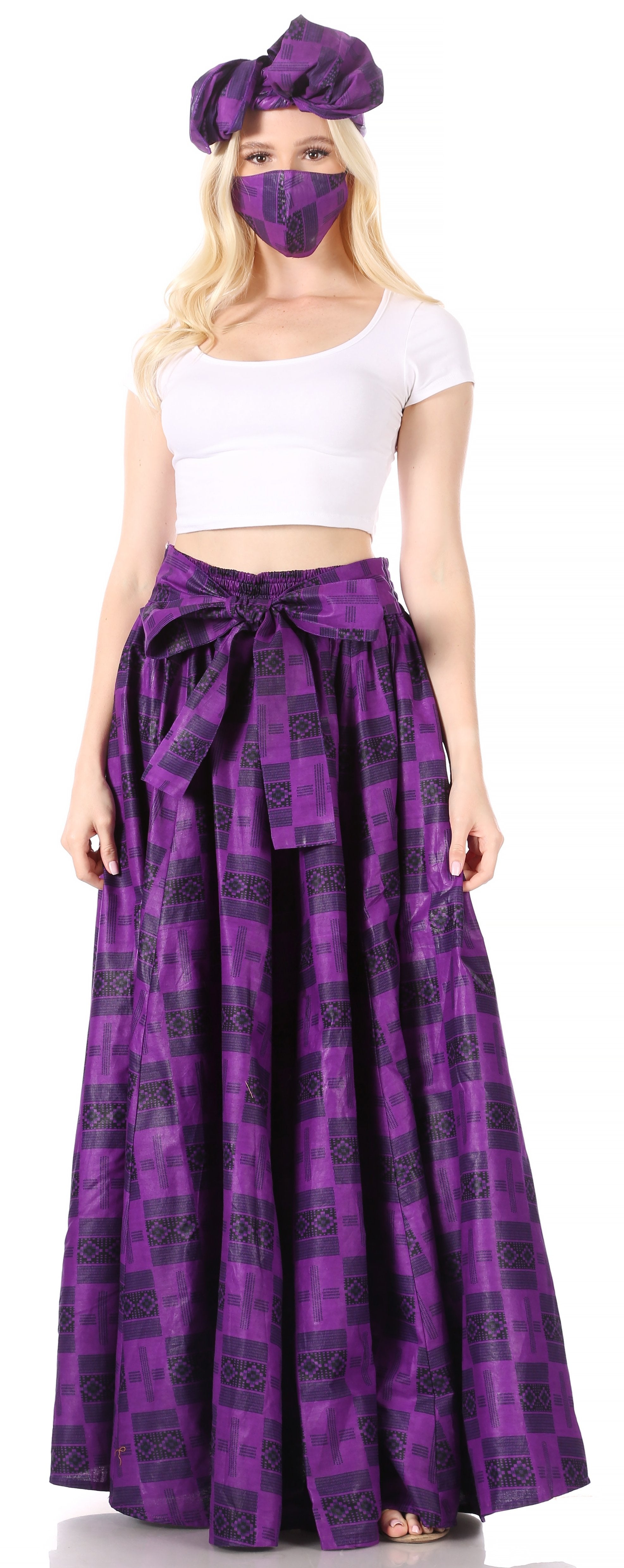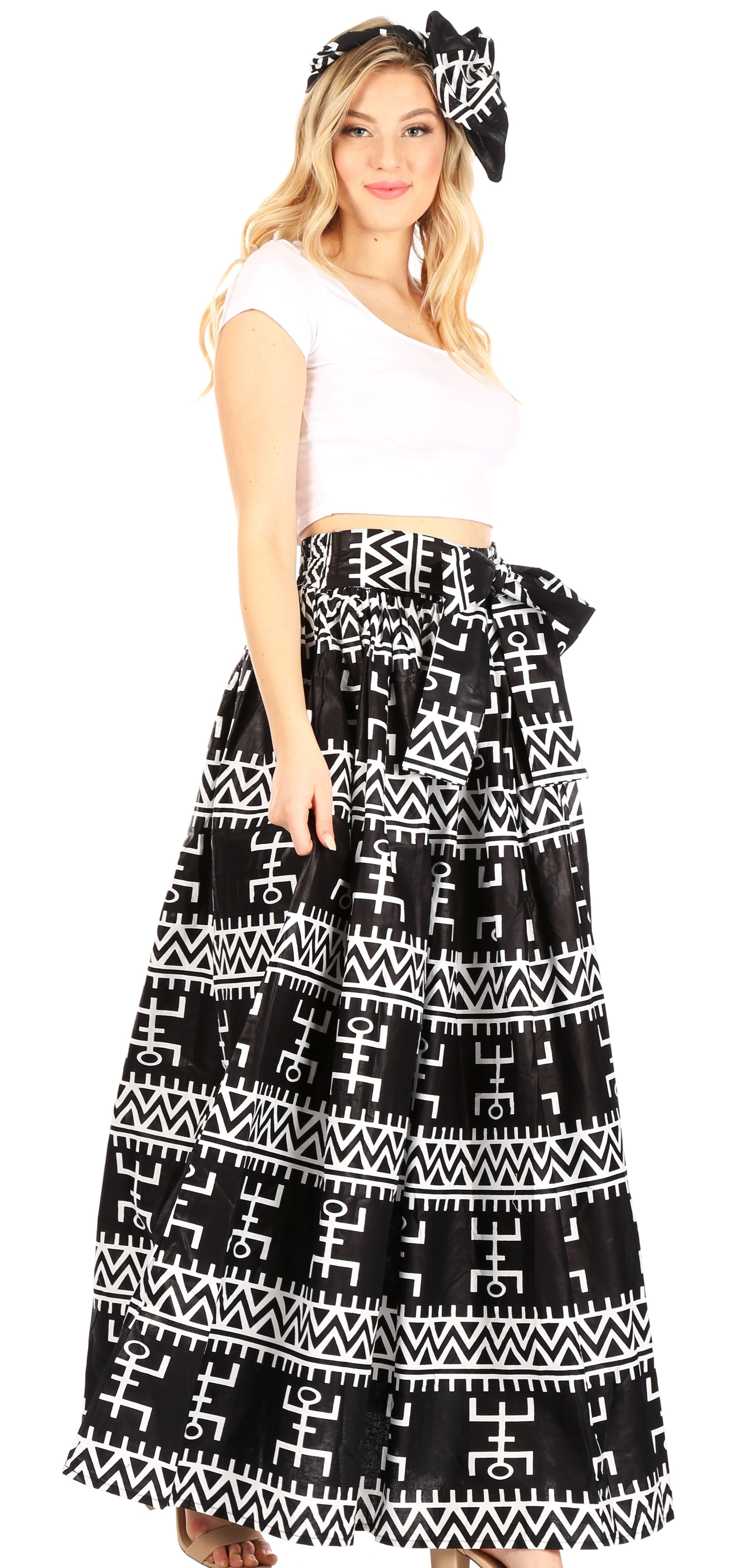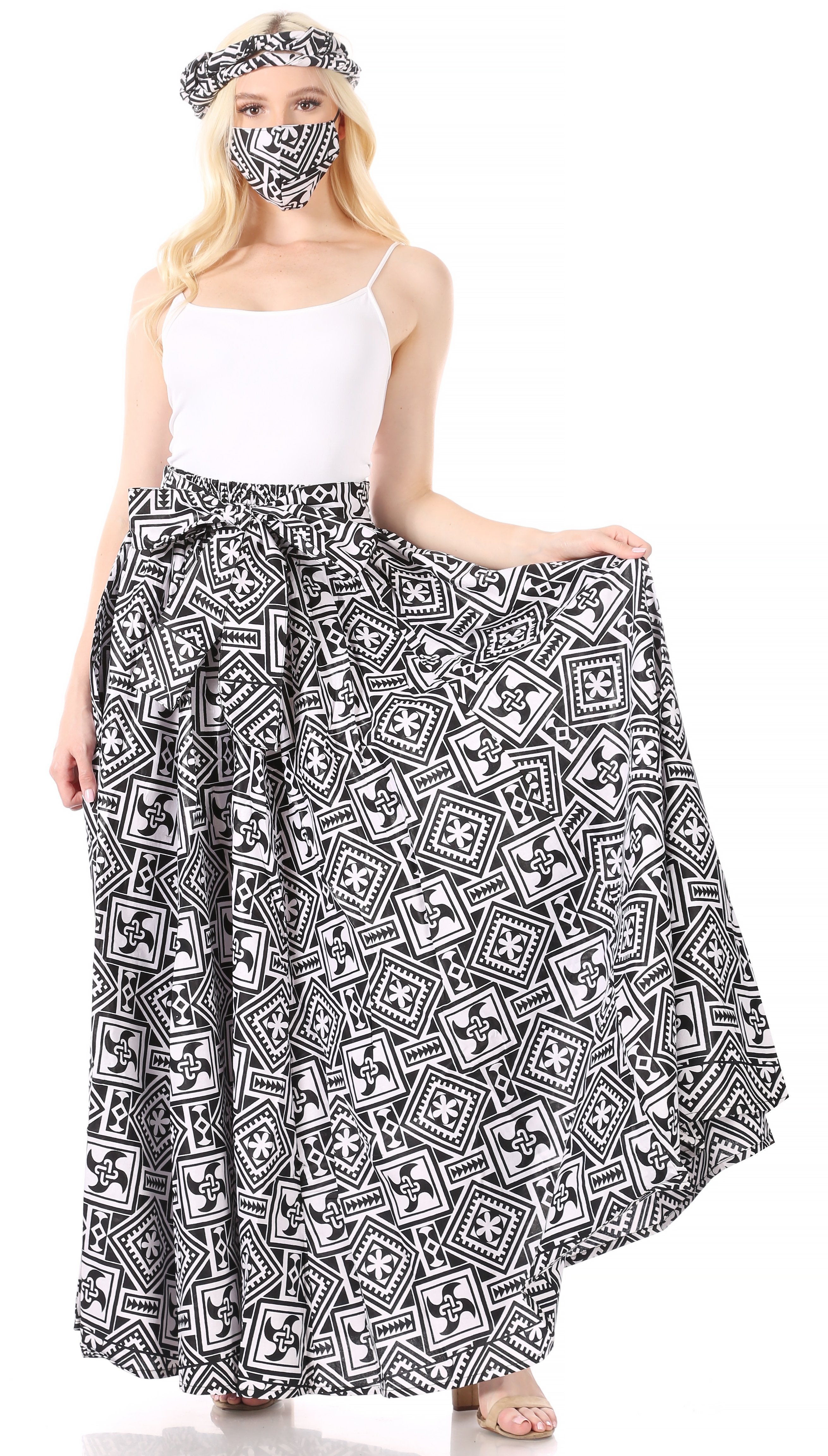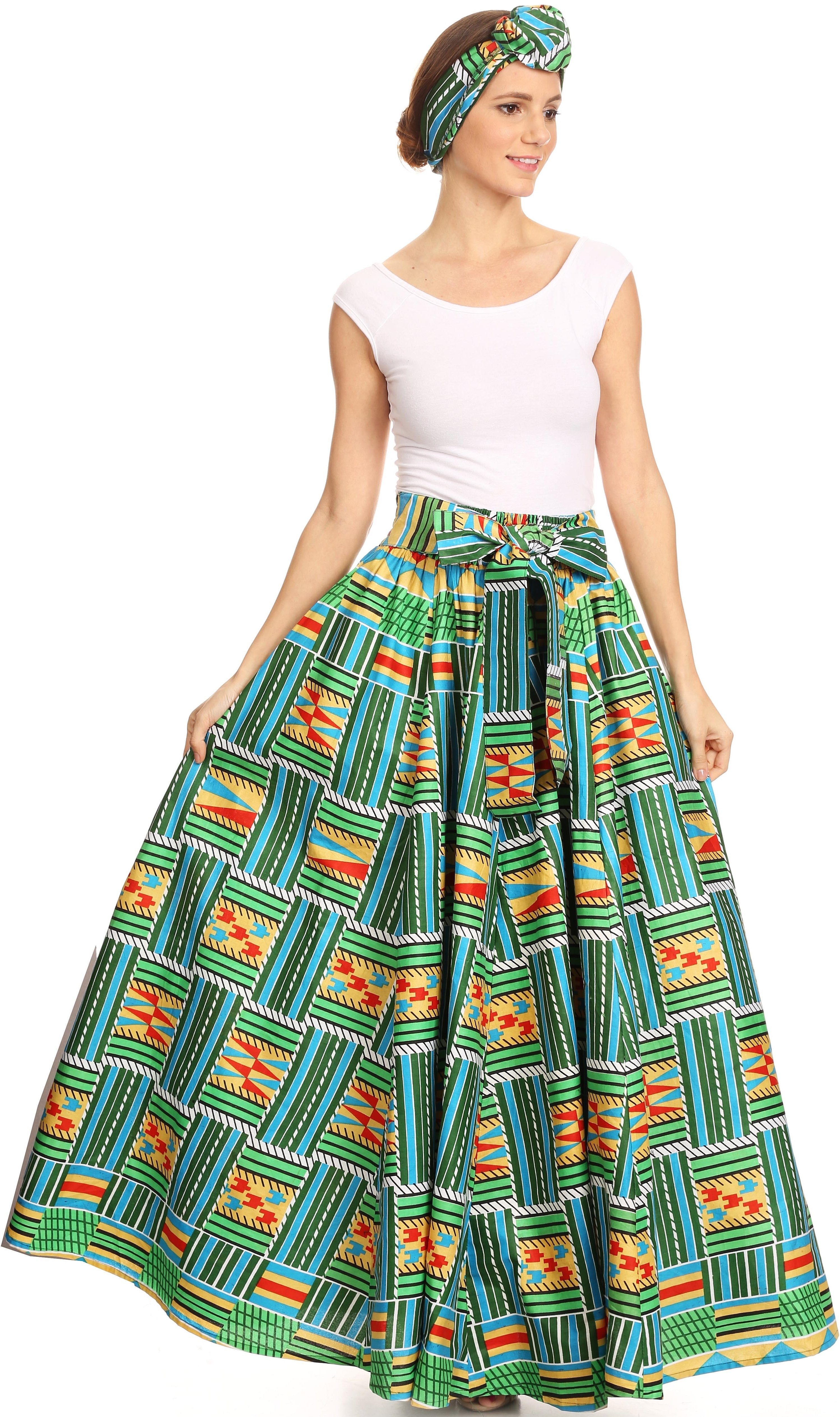 • To style this skirt, wear with your favorite tops, coats, jackets, or beachwear! Can be styled with open toed shoes or sandals, crop tops, halter tops, bandeau, tank top, wide loose shirts, blouses, or silk tops. This skirt can also be transformed into a dress or cover up! Try pairing its matching head wrap with bold geometric earrings or a thin, delicate necklace.