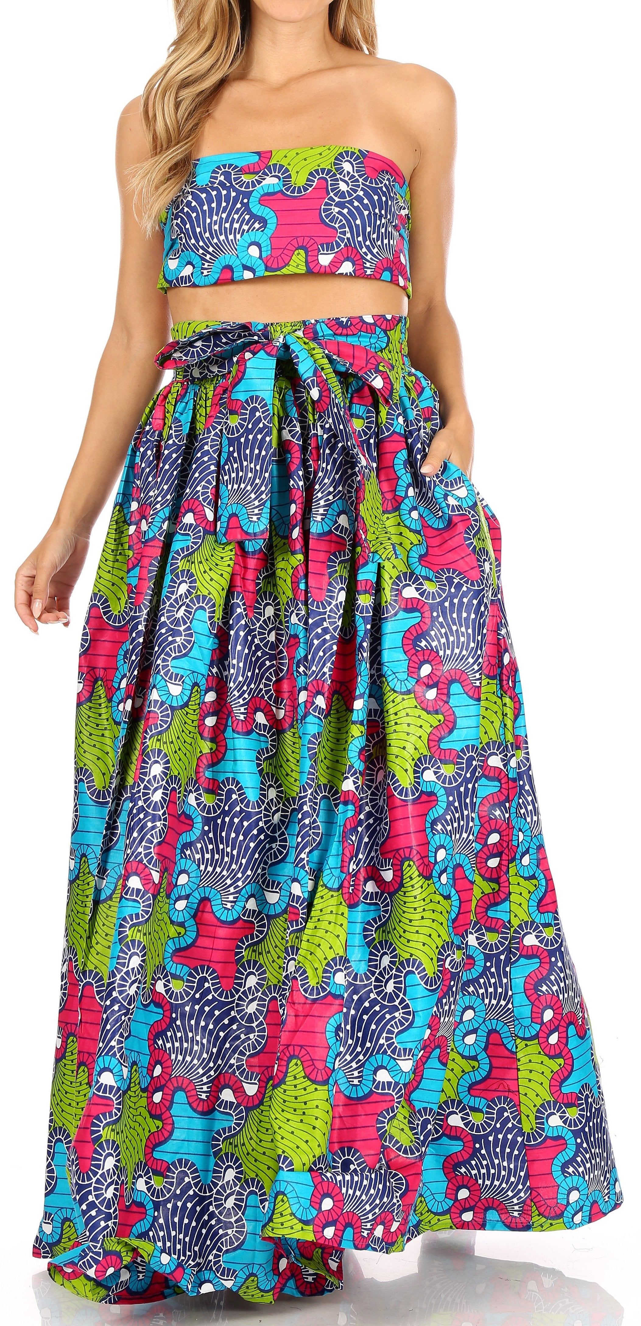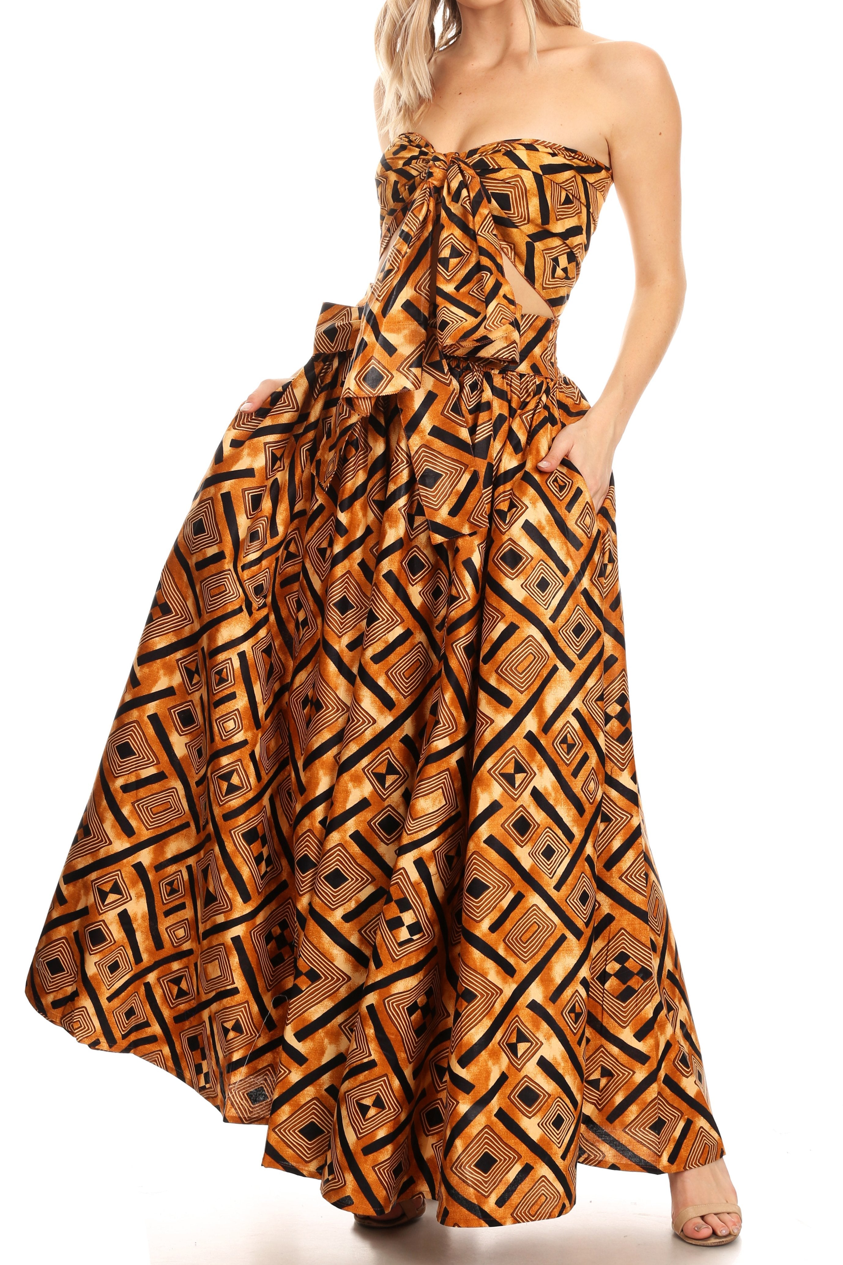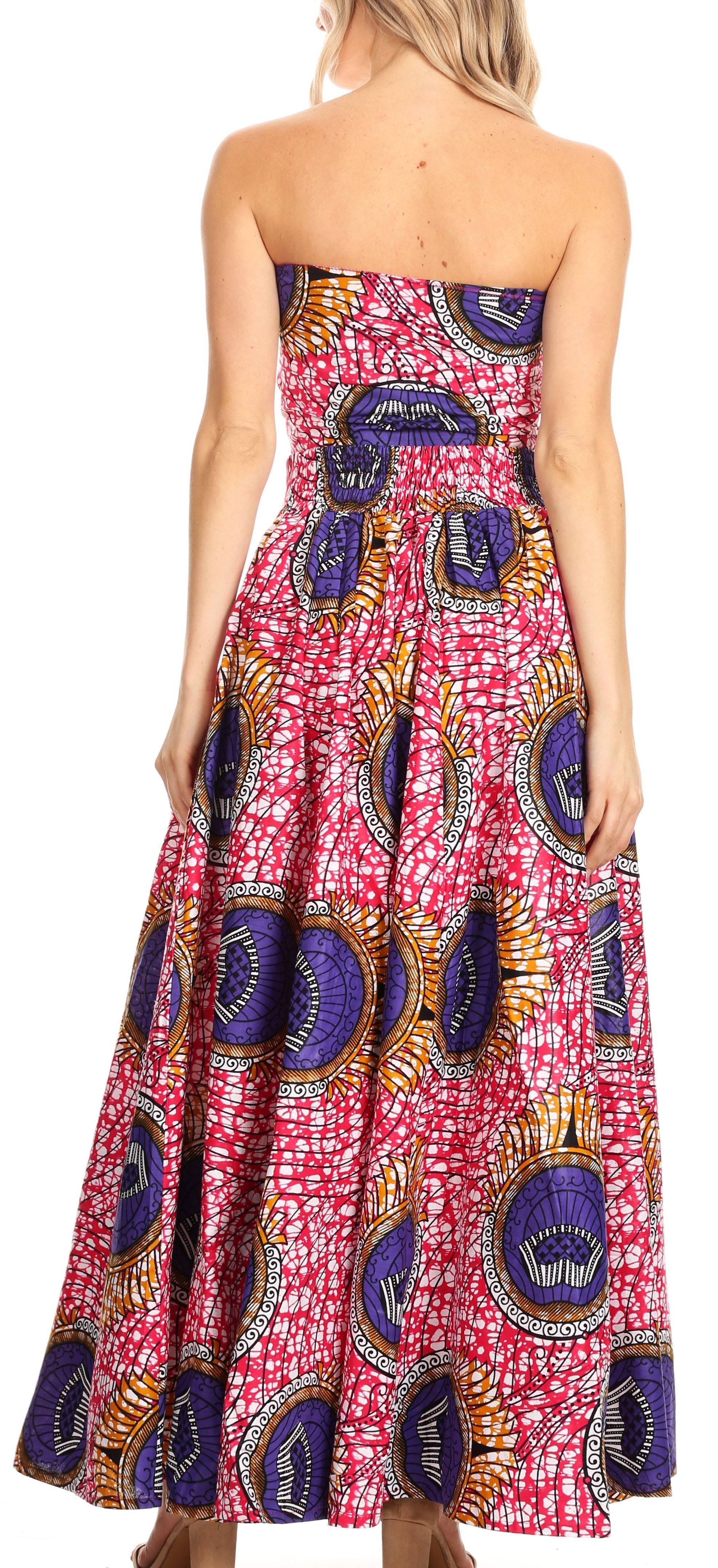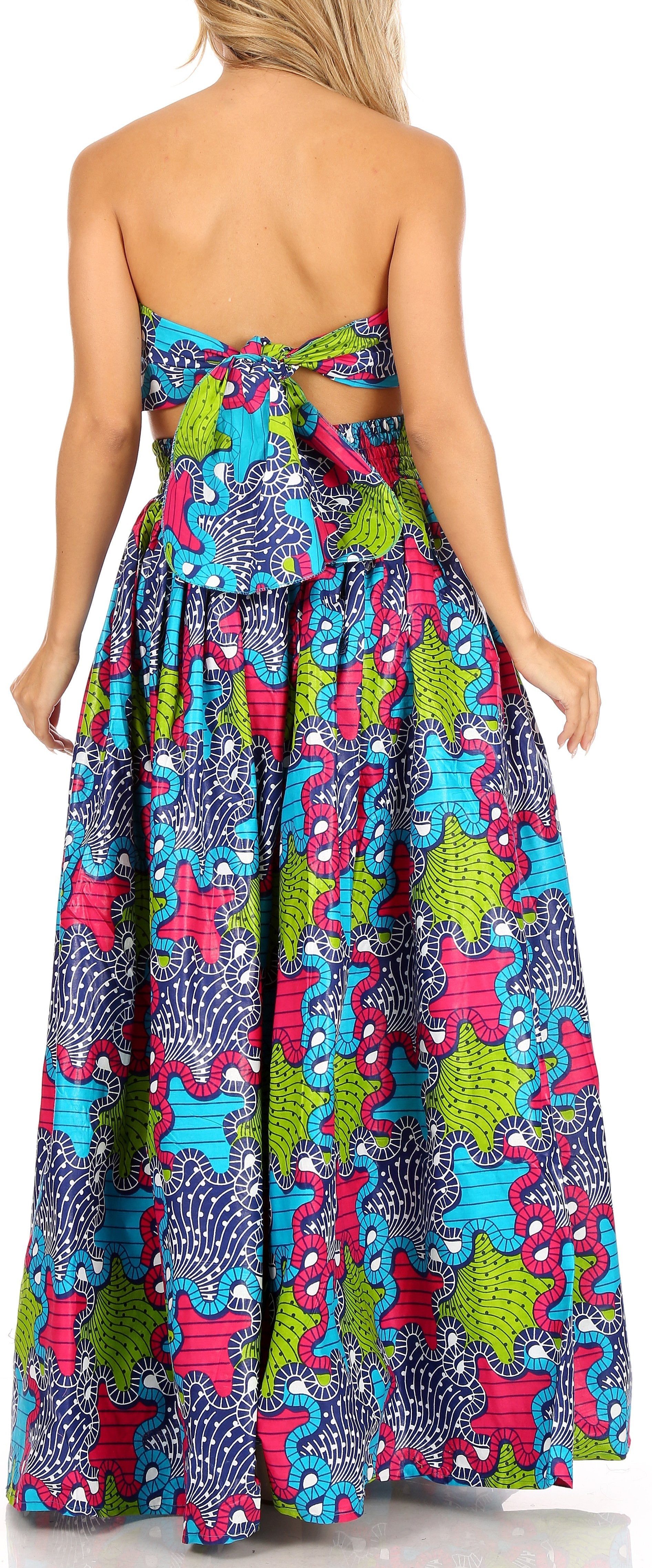 Sakkas Asma Convertible Traditional Wax Print Adjustable Strap Maxi Skirt Dress