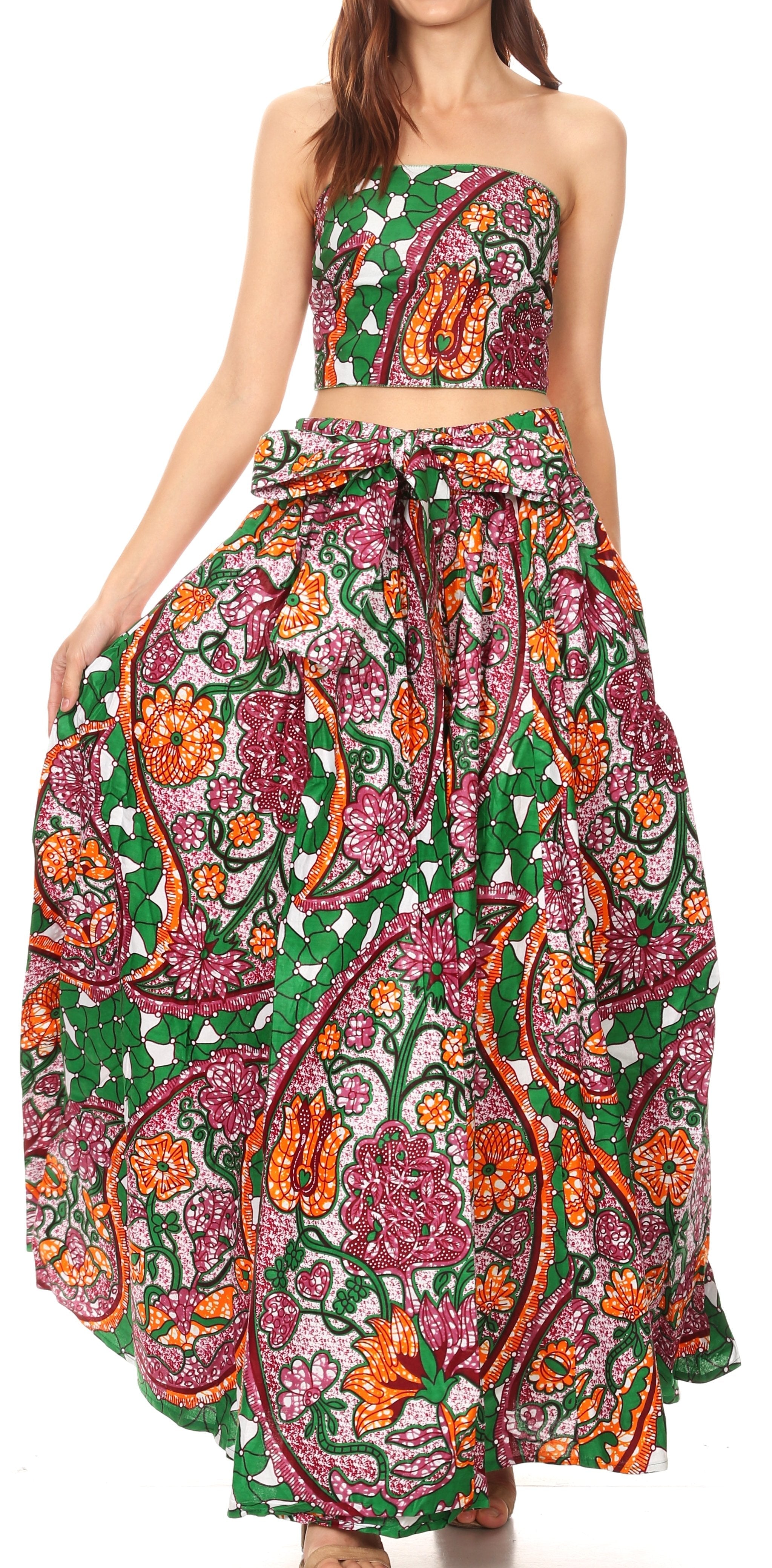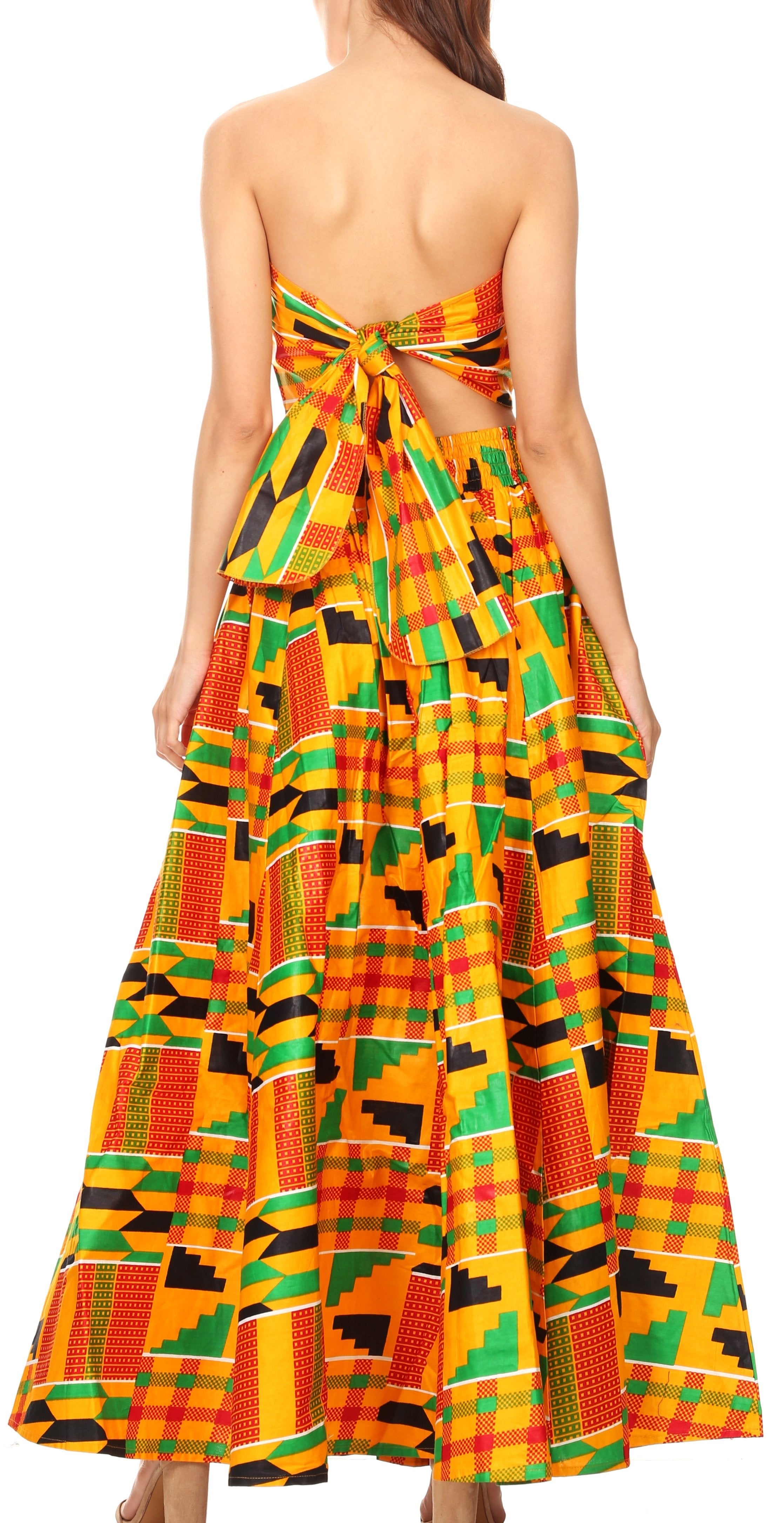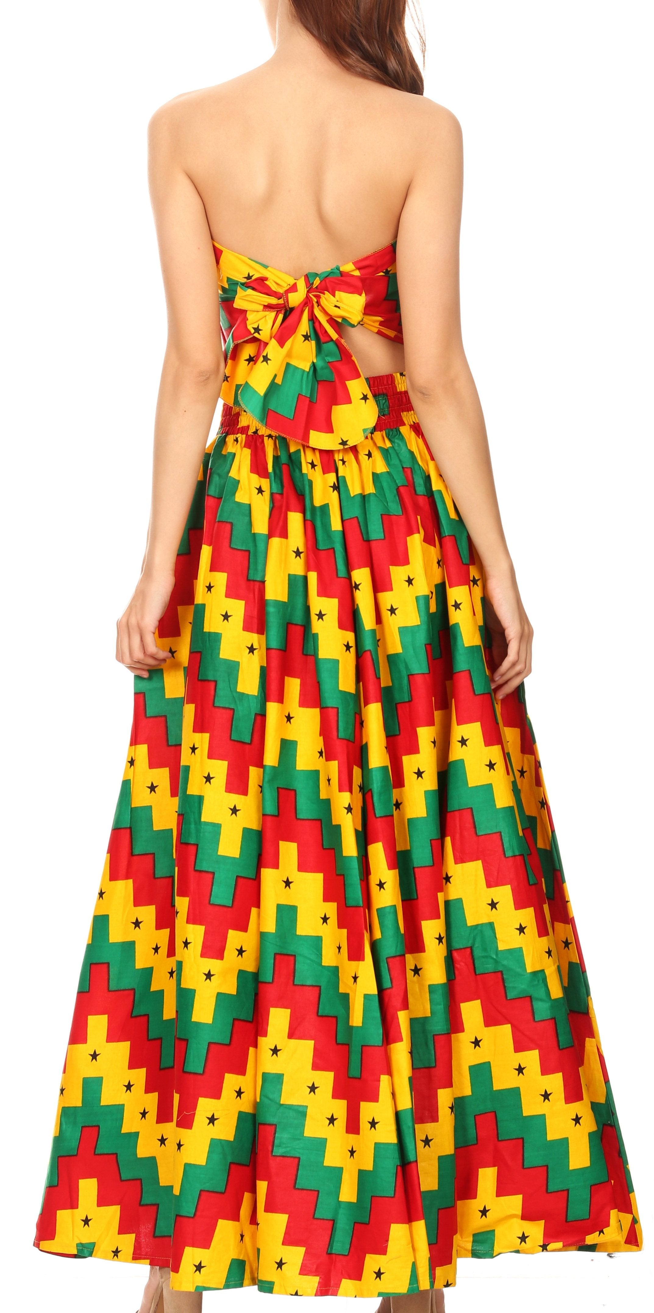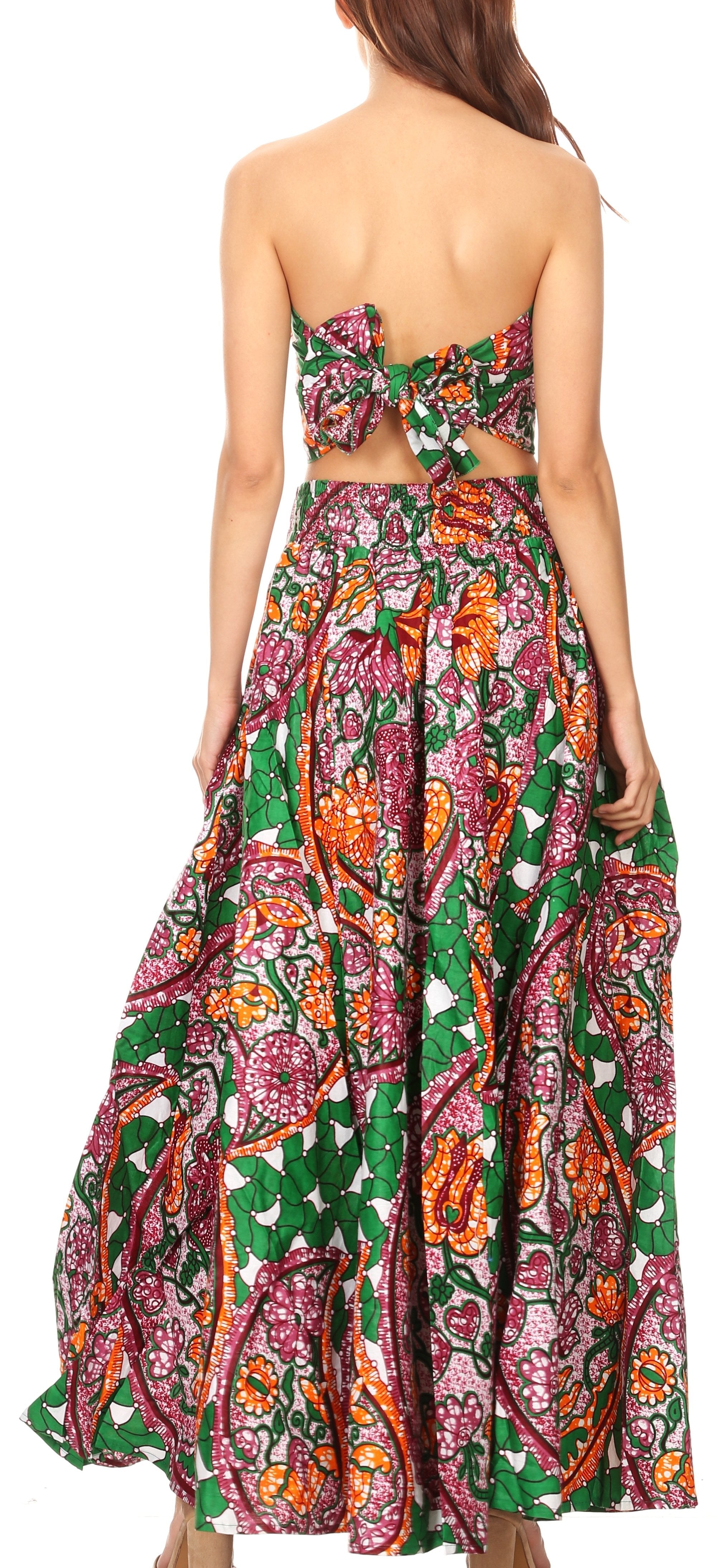 Sakkas Asma Convertible Traditional Wax Print Adjustable Strap Maxi Skirt Dress