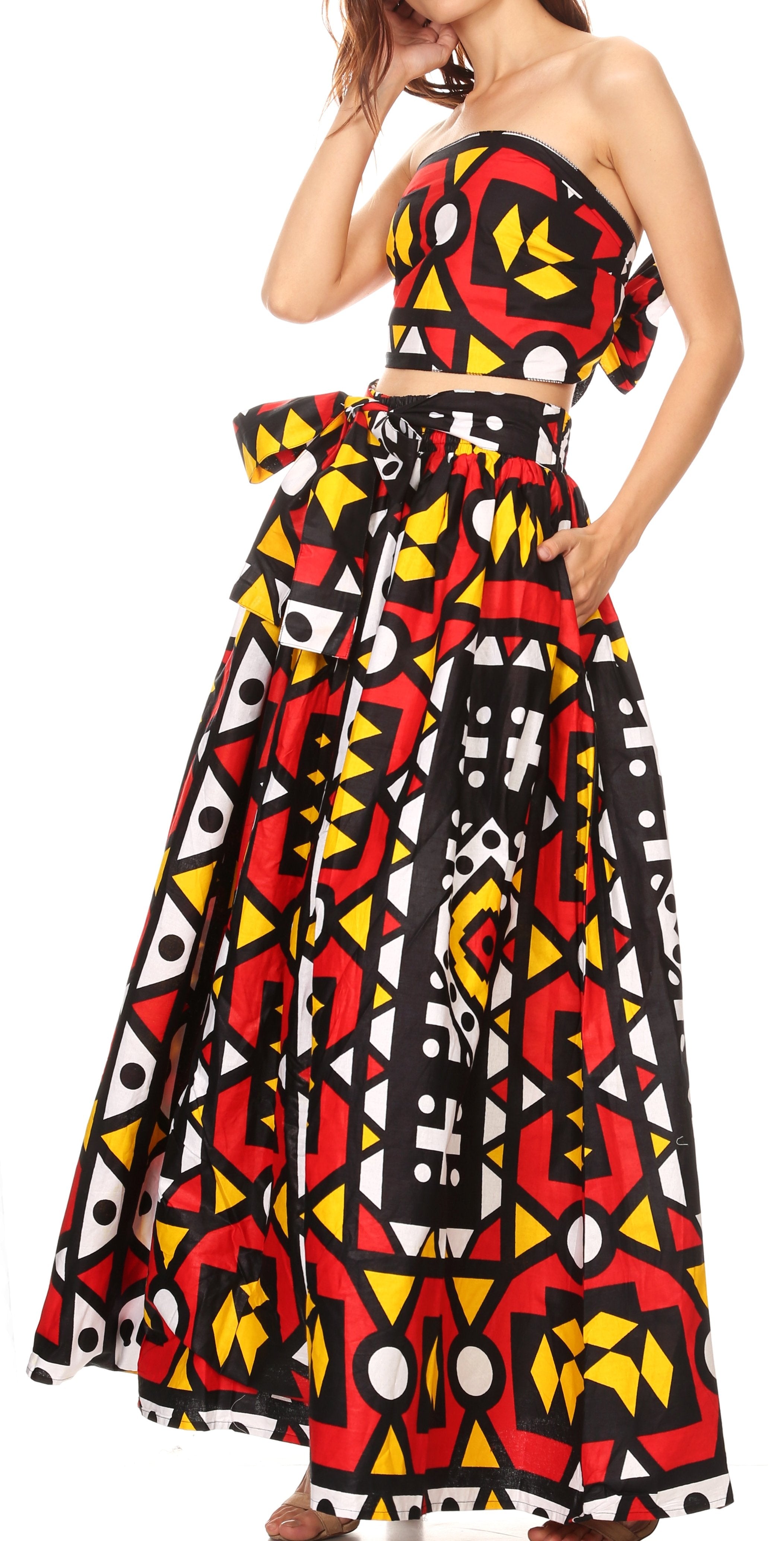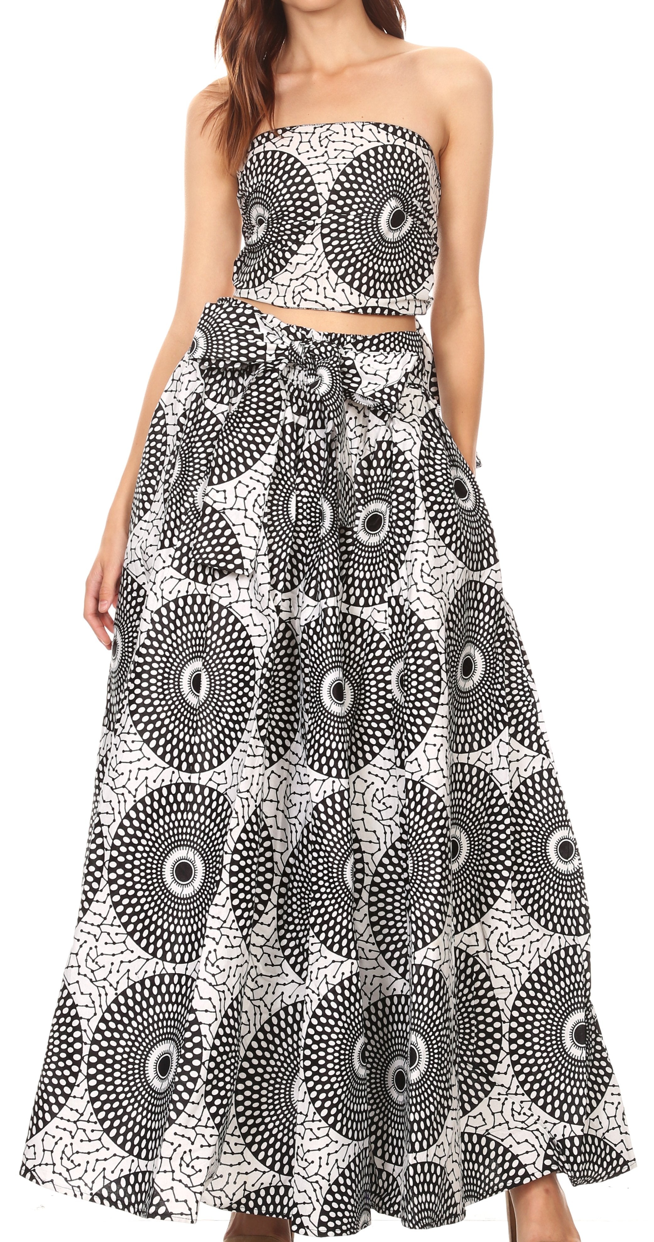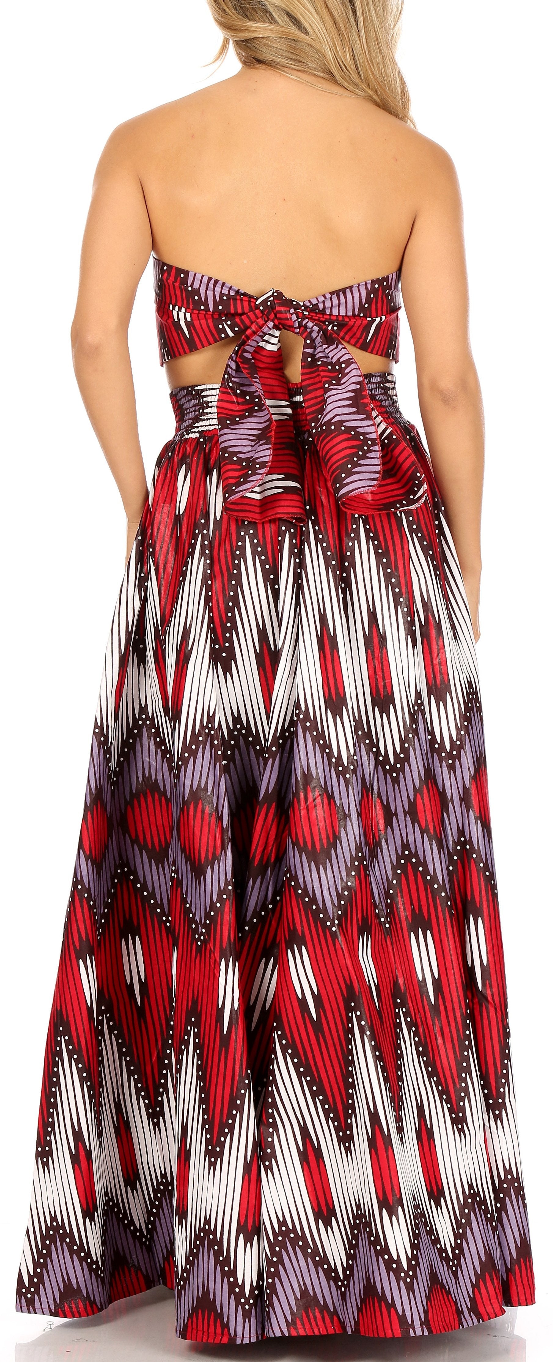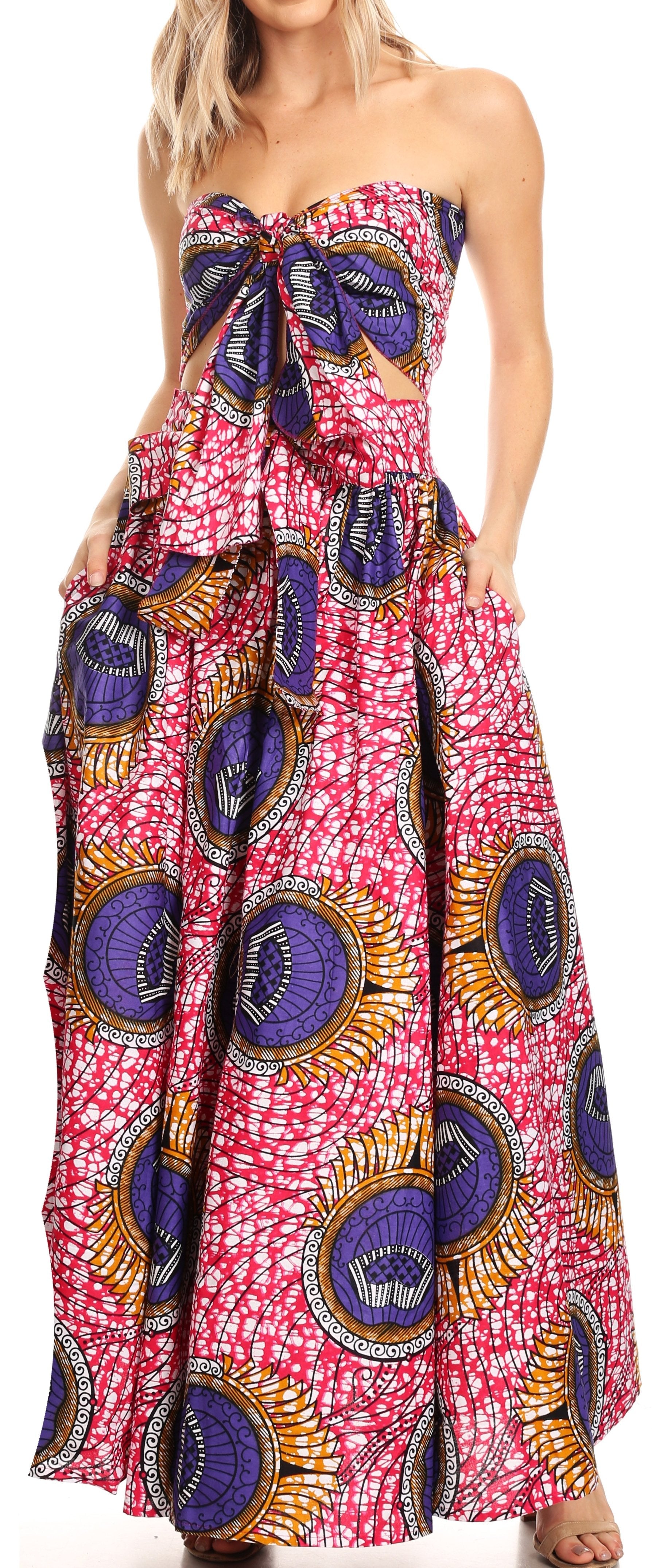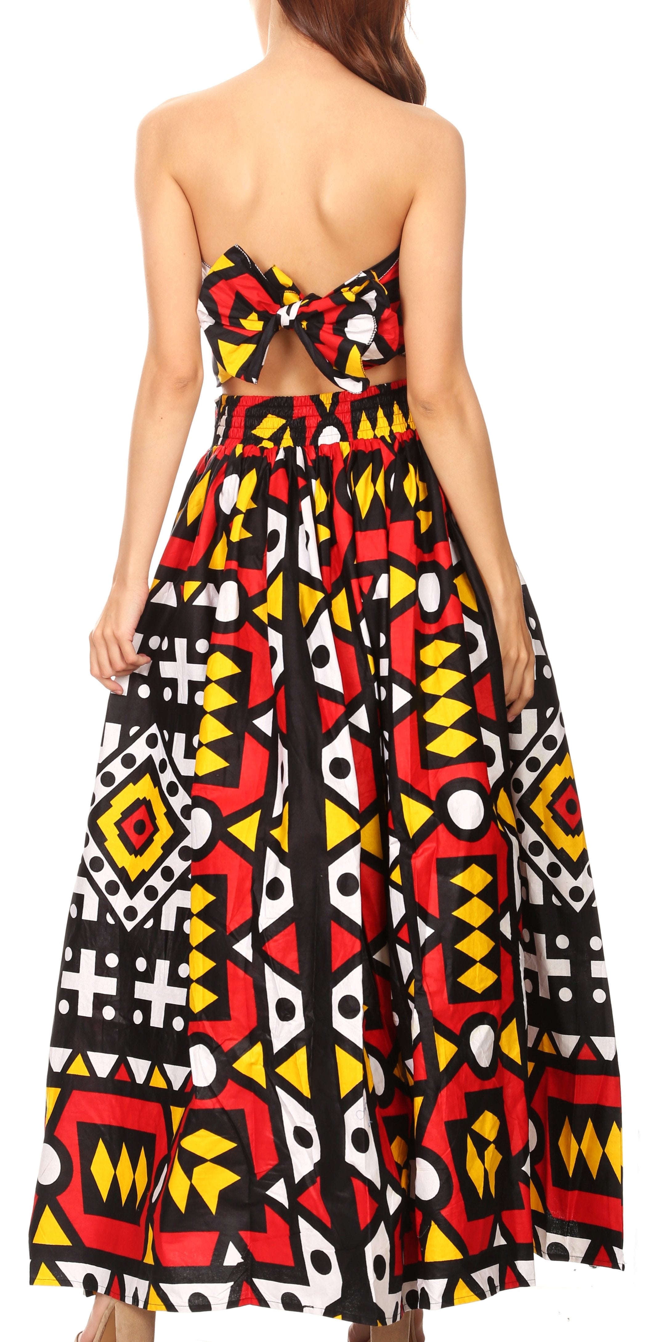Sakkas Asma Convertible Traditional Wax Print Adjustable Strap Maxi Skirt Dress