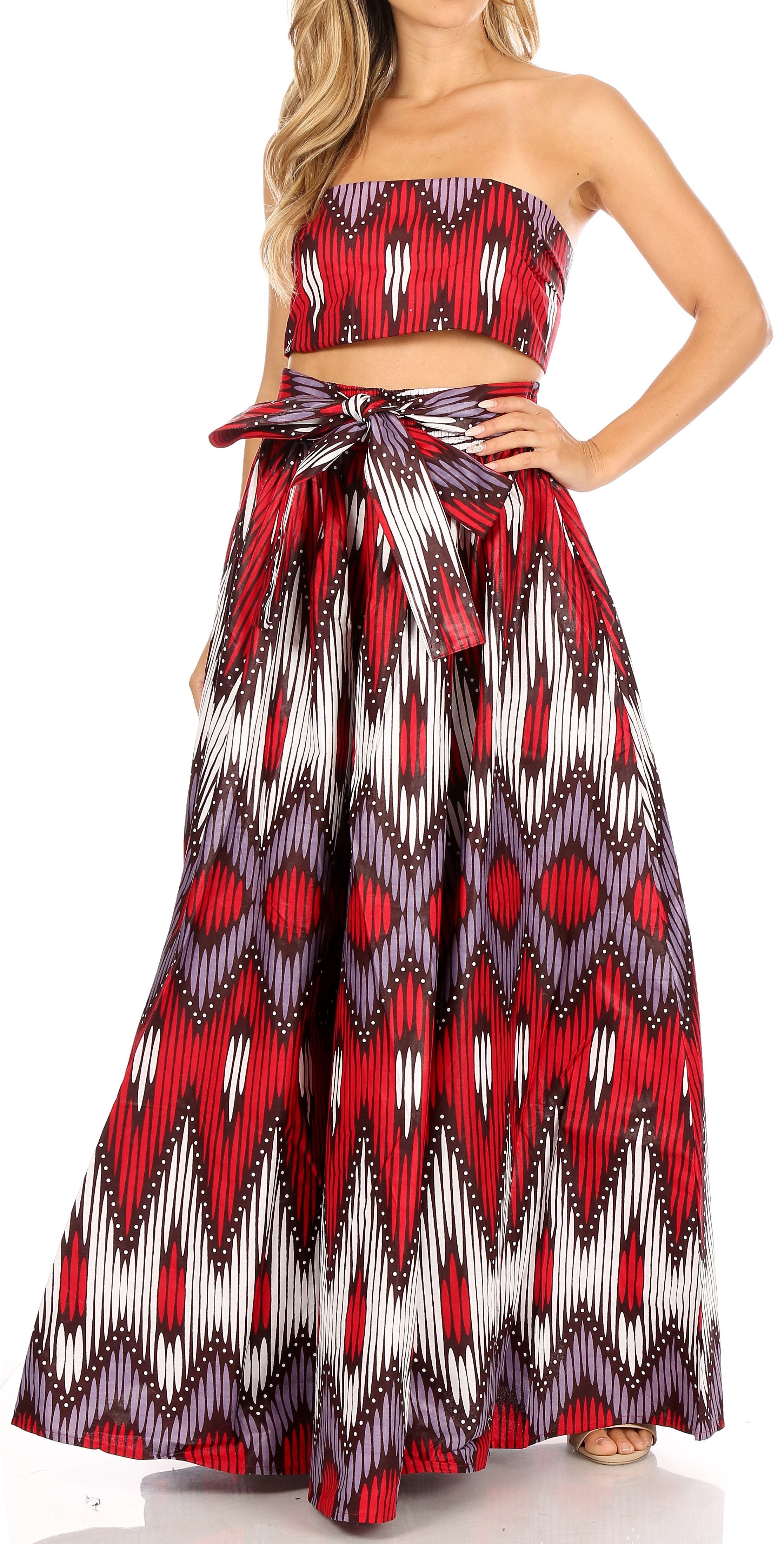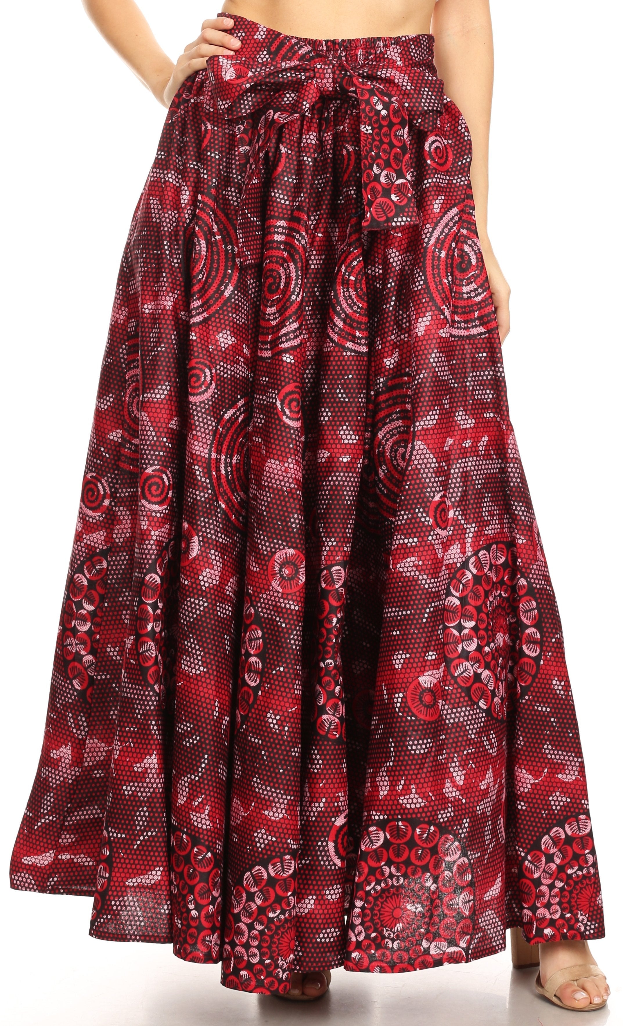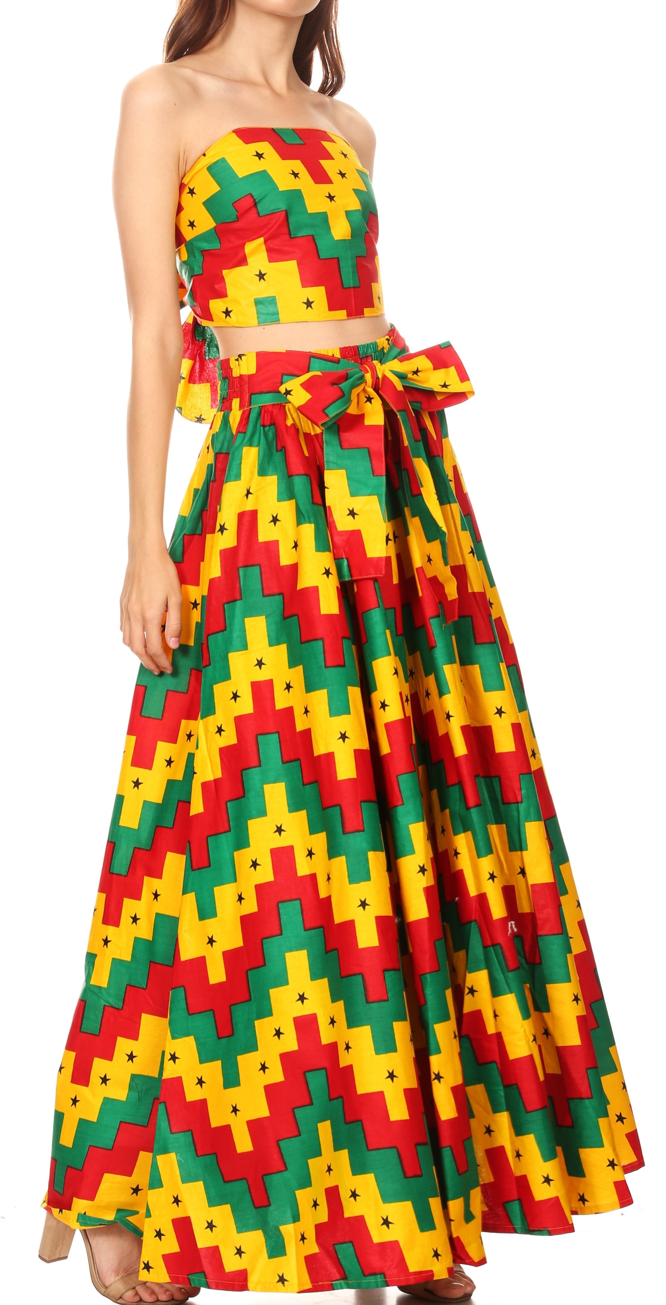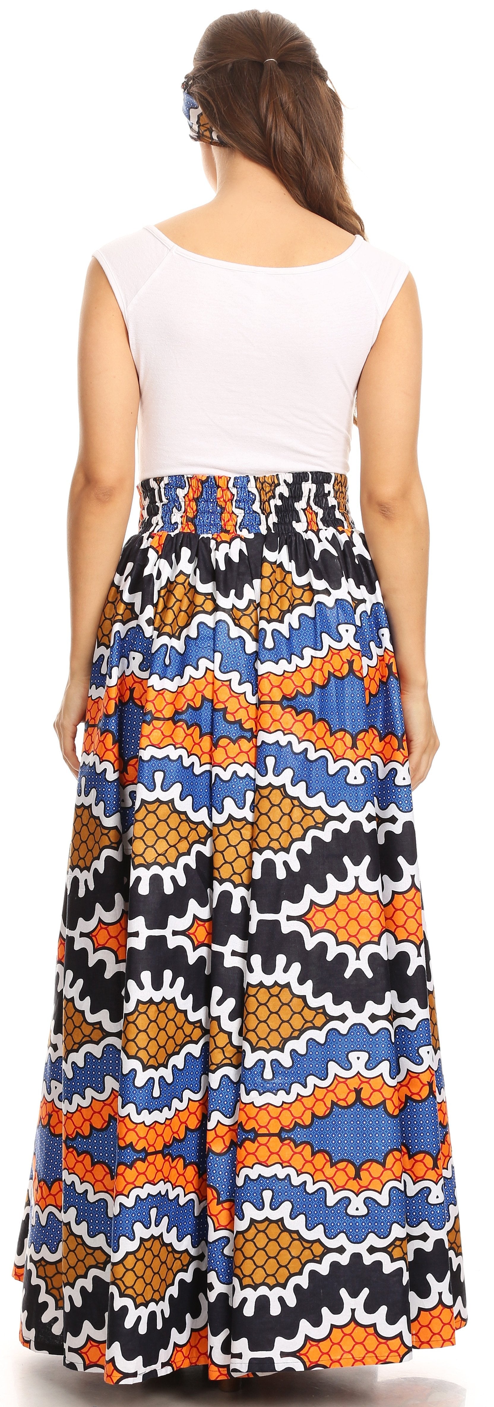 Sakkas Asma Convertible Traditional Wax Print Adjustable Strap Maxi Skirt Dress