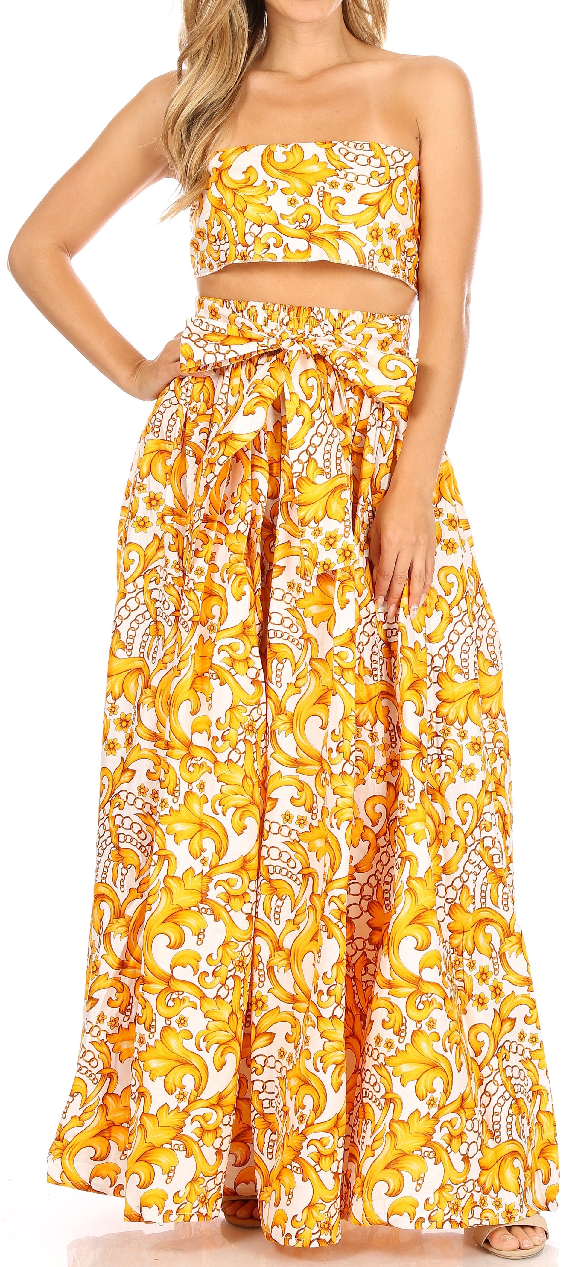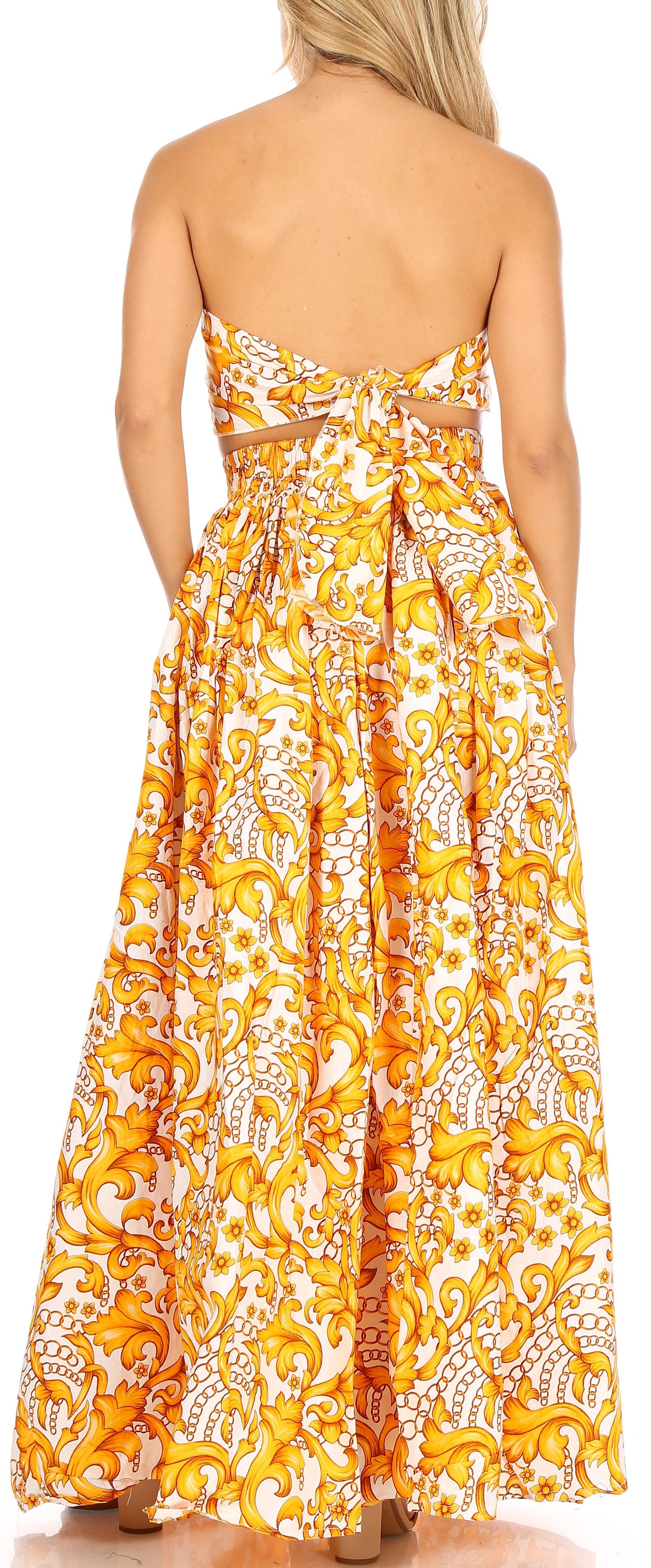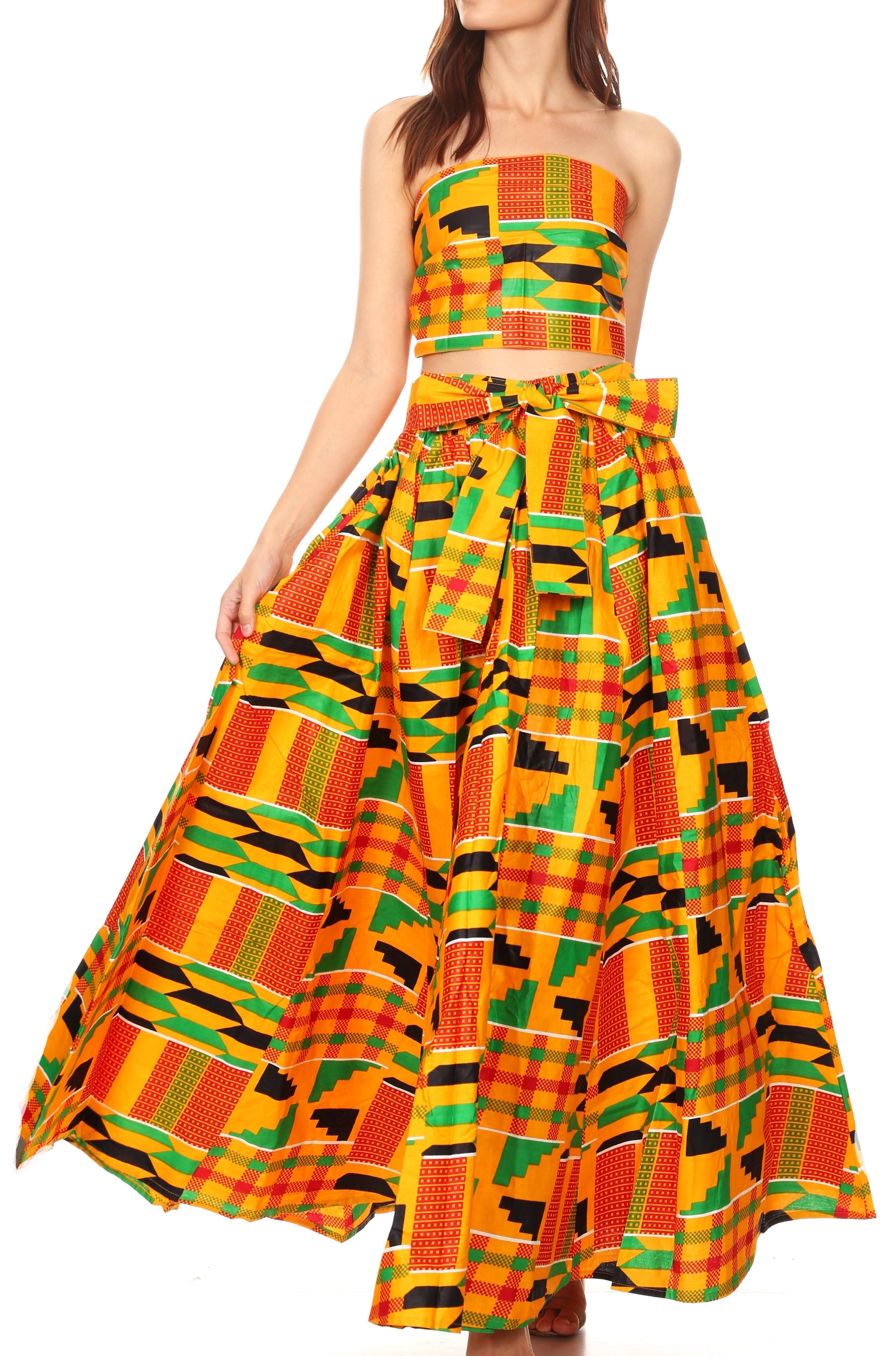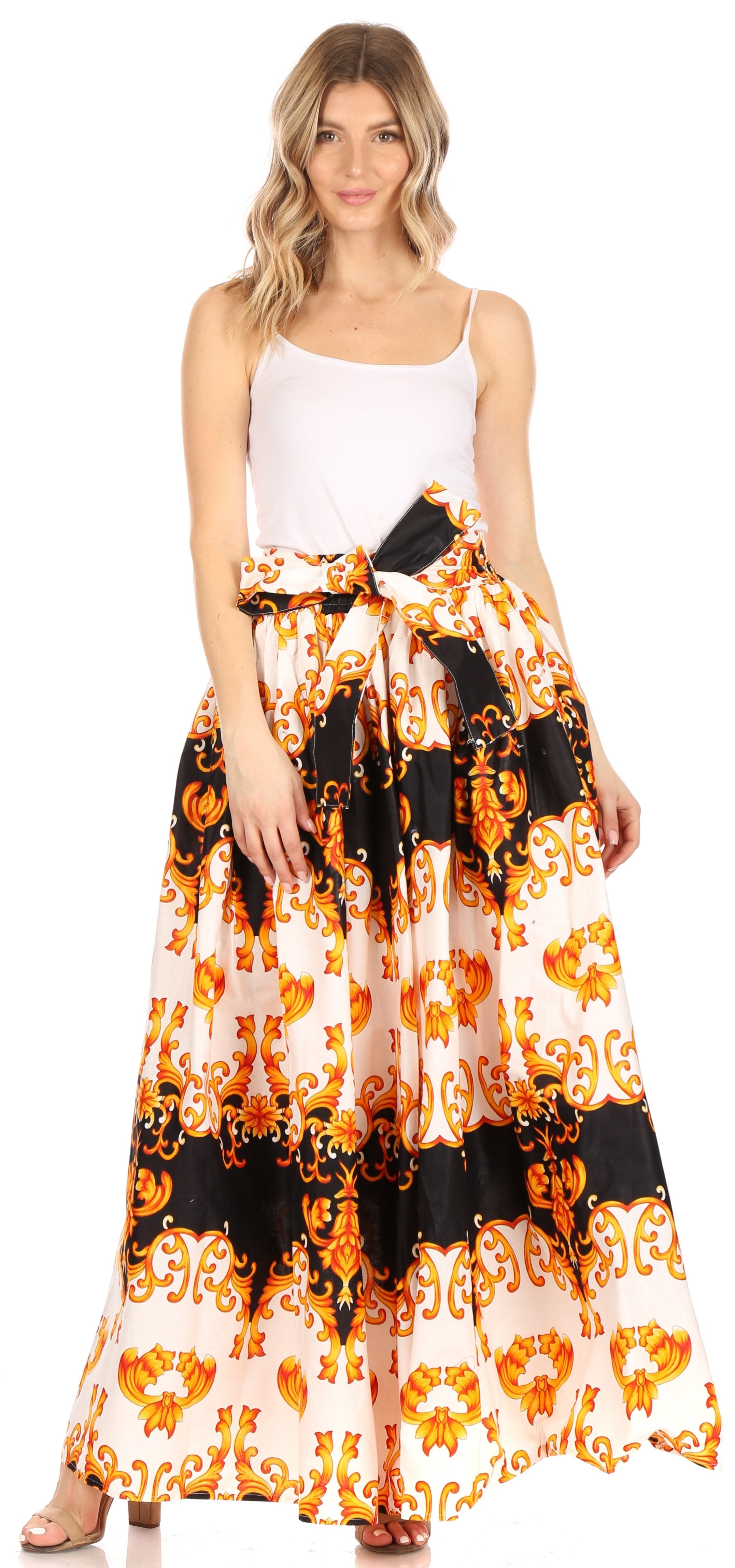 Sakkas Asma Convertible Traditional Wax Print Adjustable Strap Maxi Skirt Dress