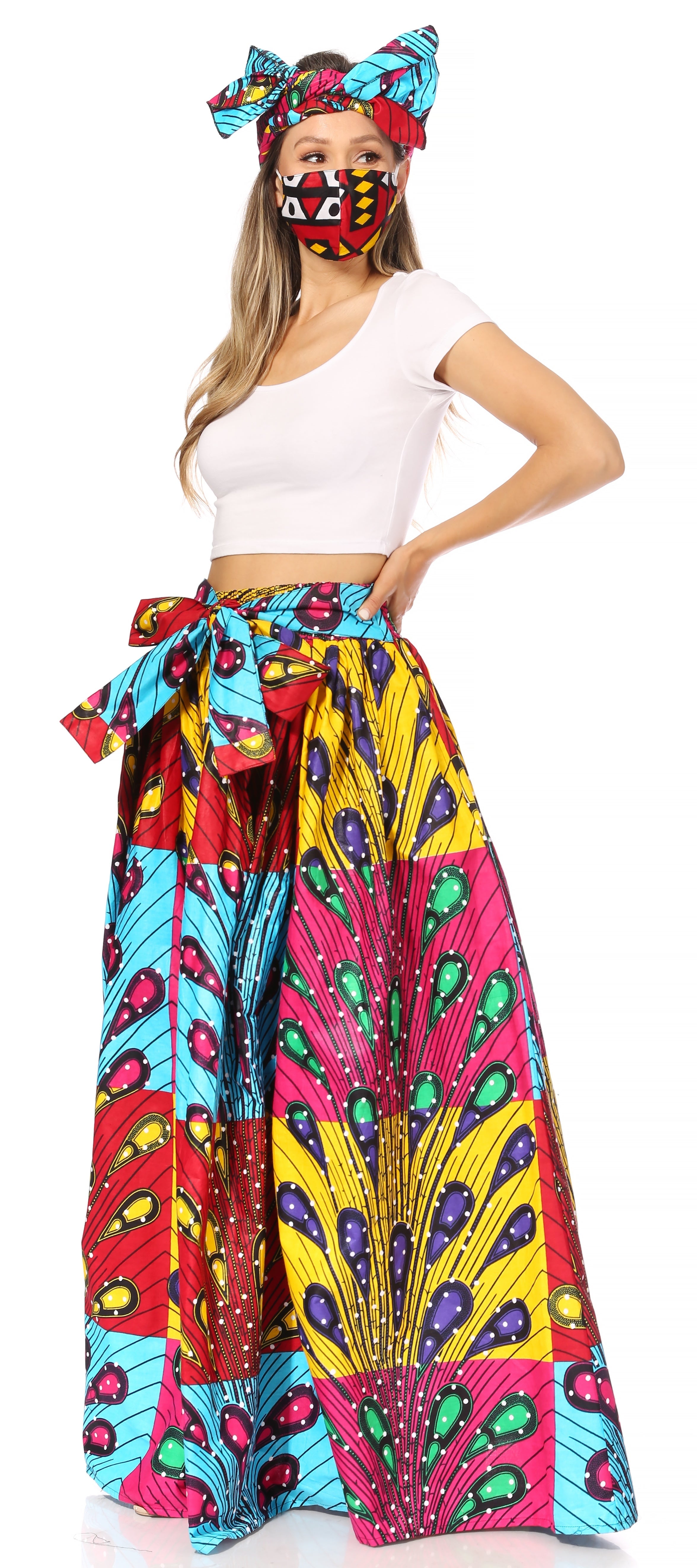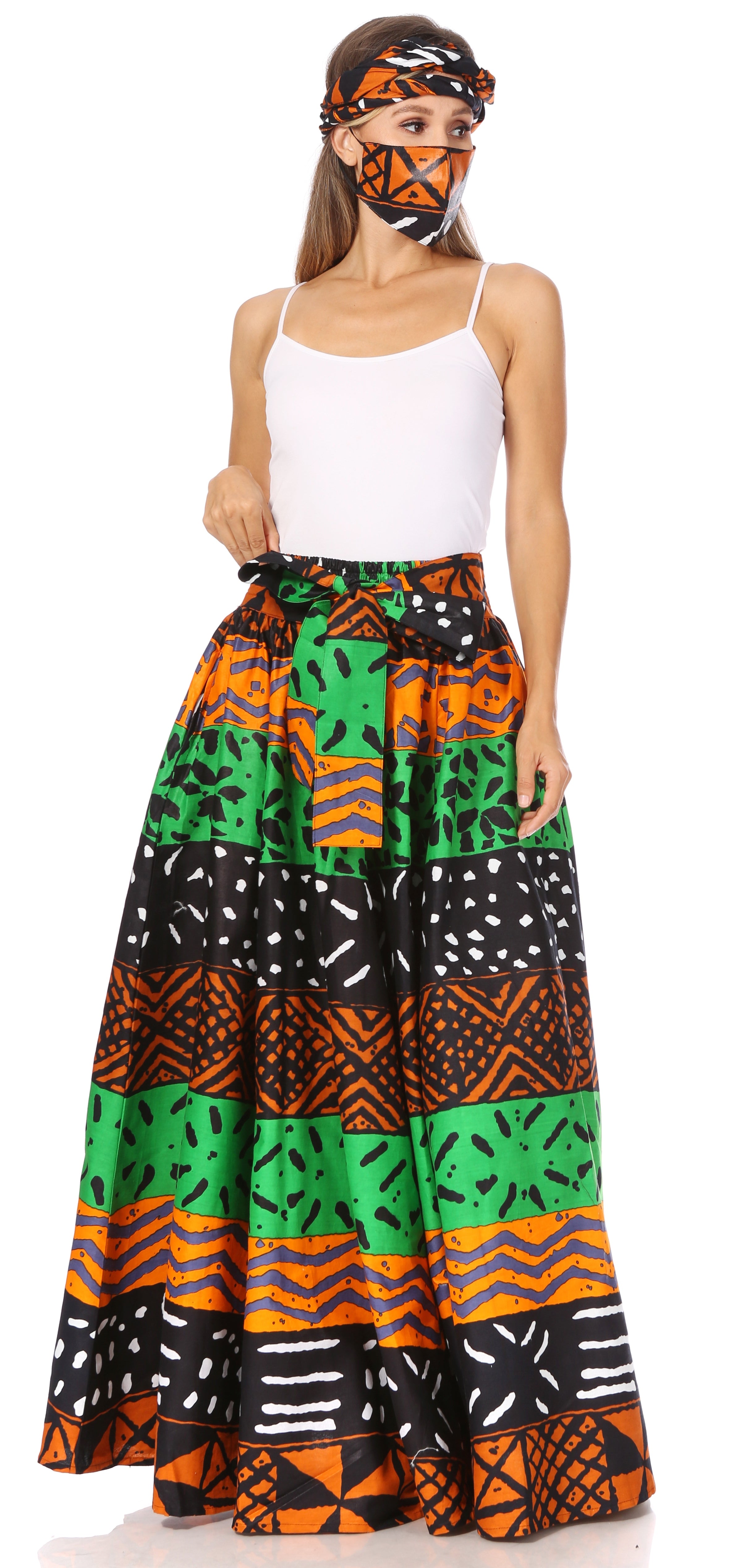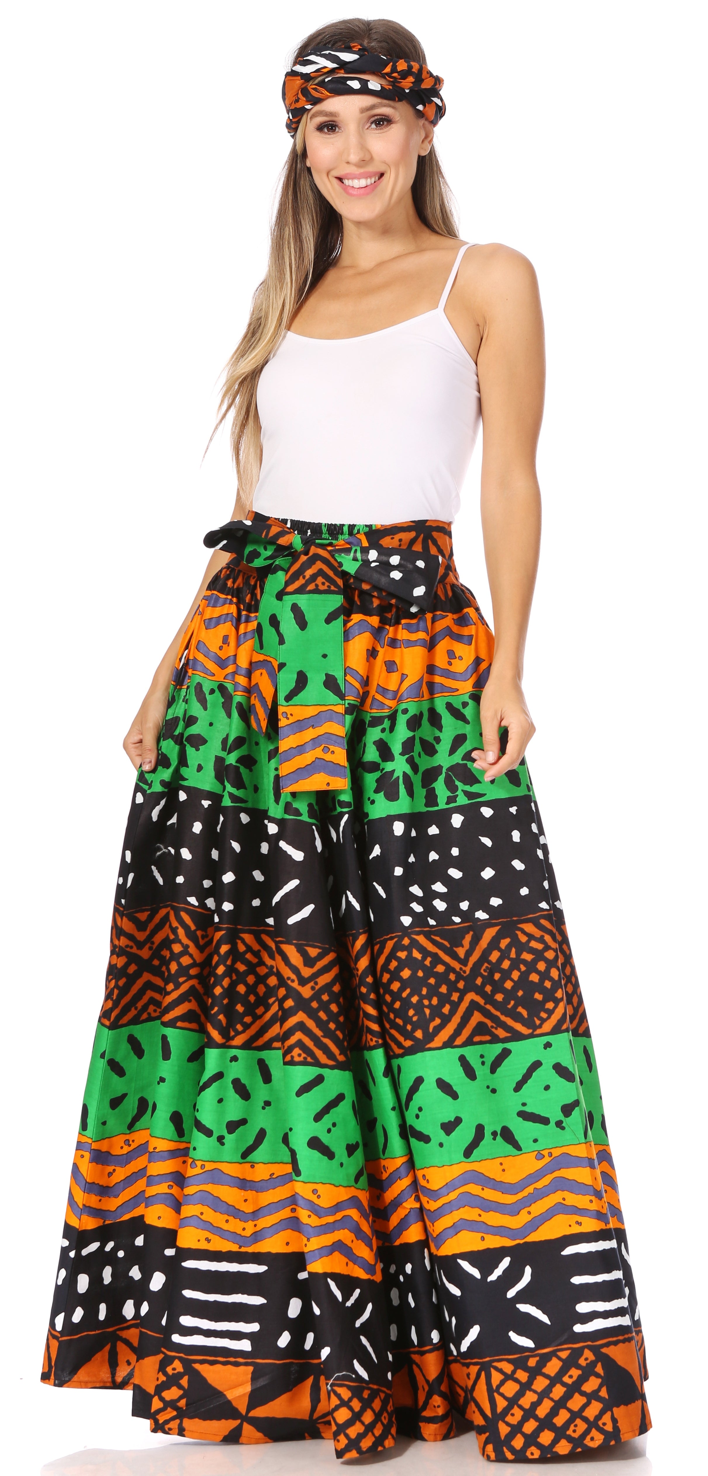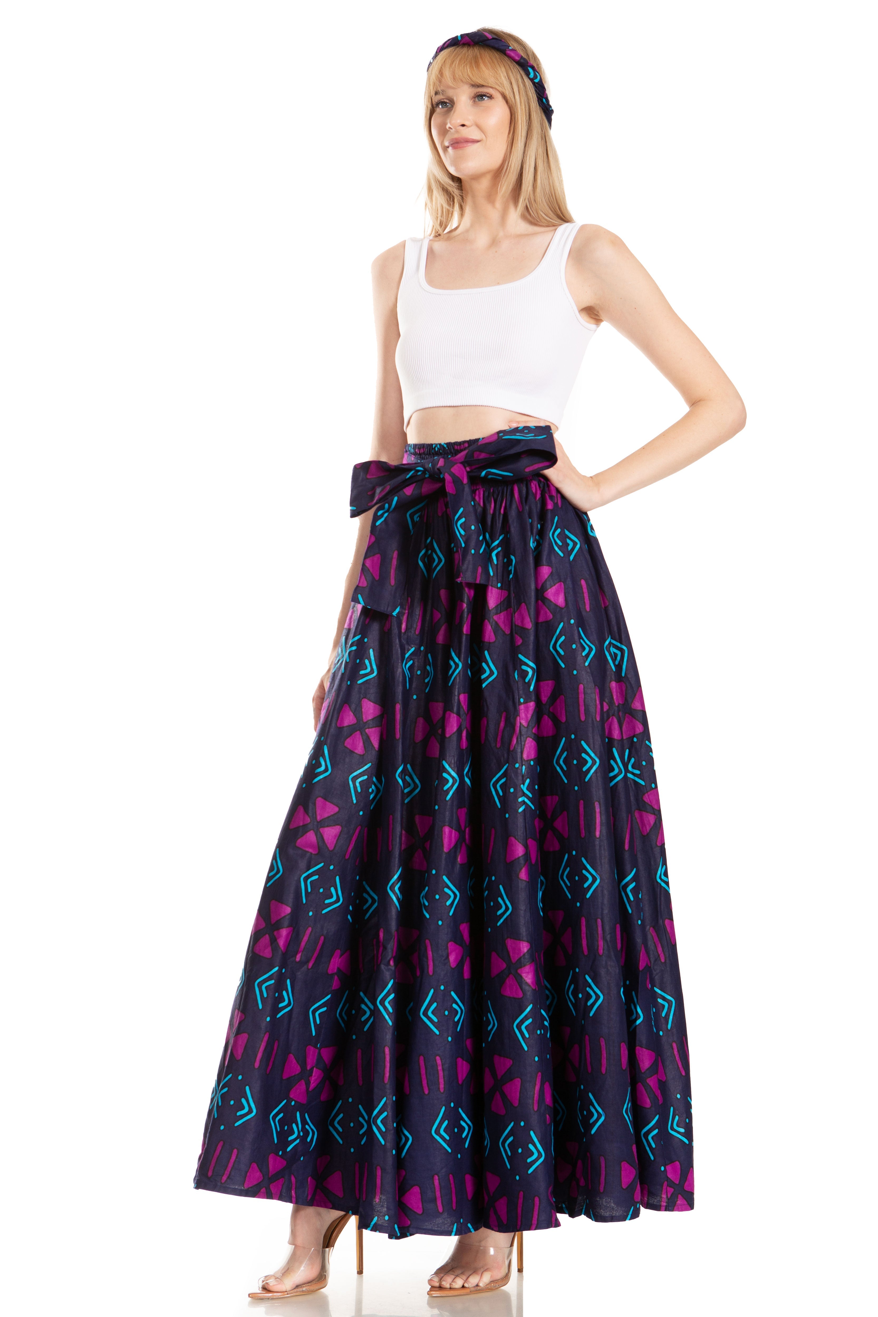 Sakkas Asma's Second Convertible Traditional Wax Print Maxi Skirt with Adjustable Straps