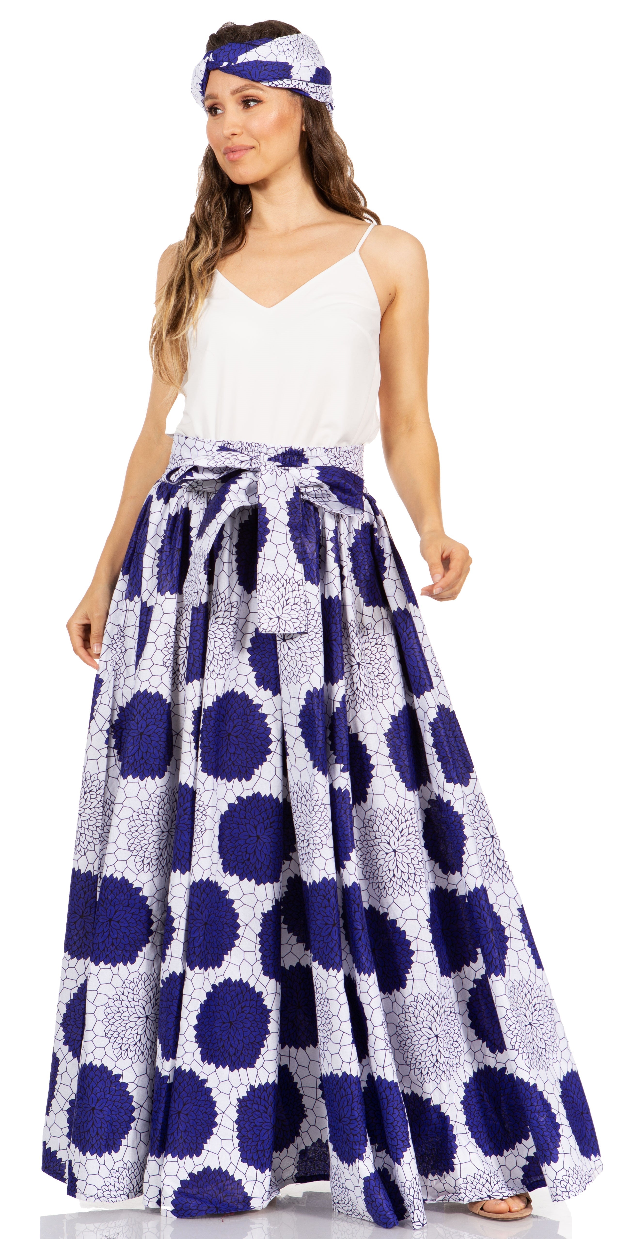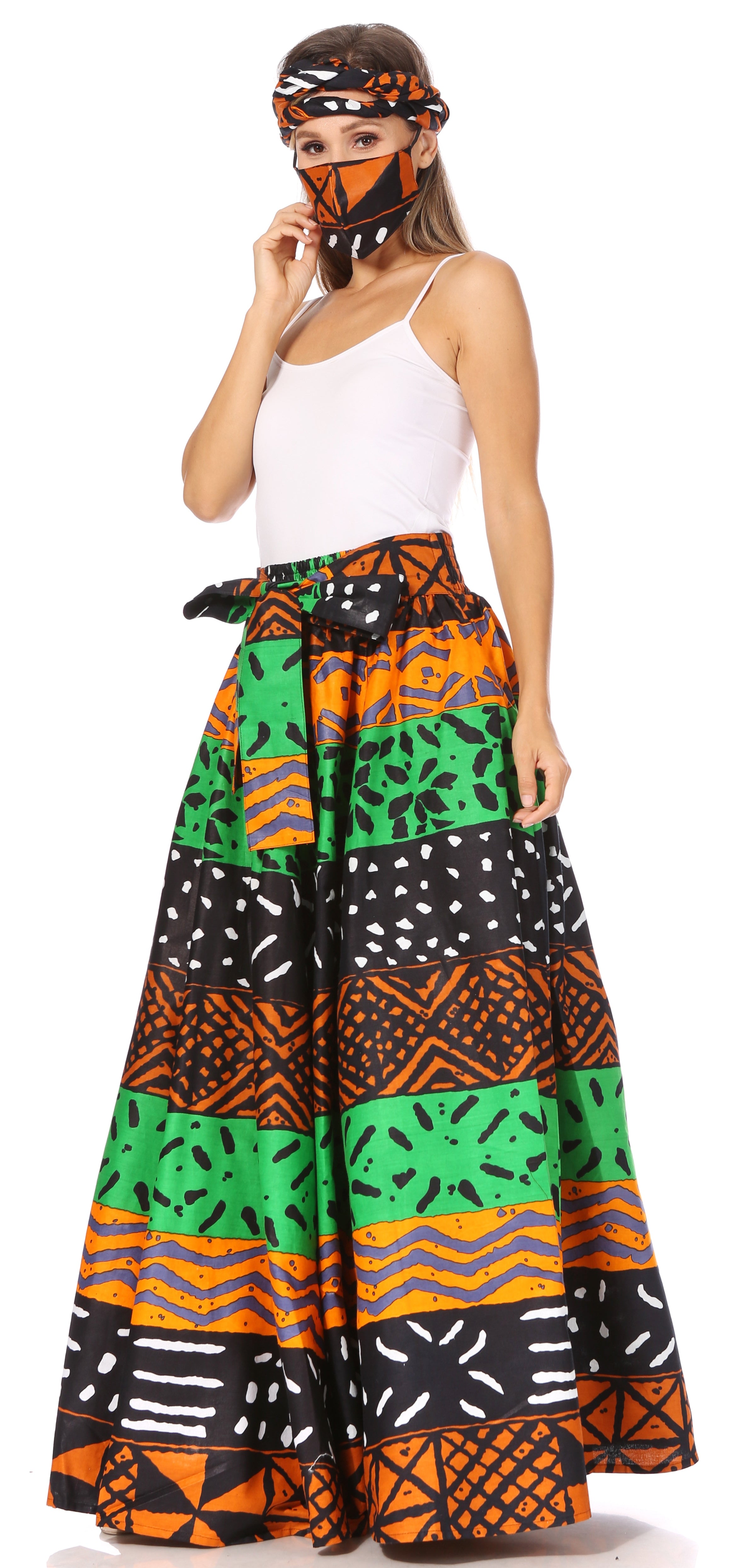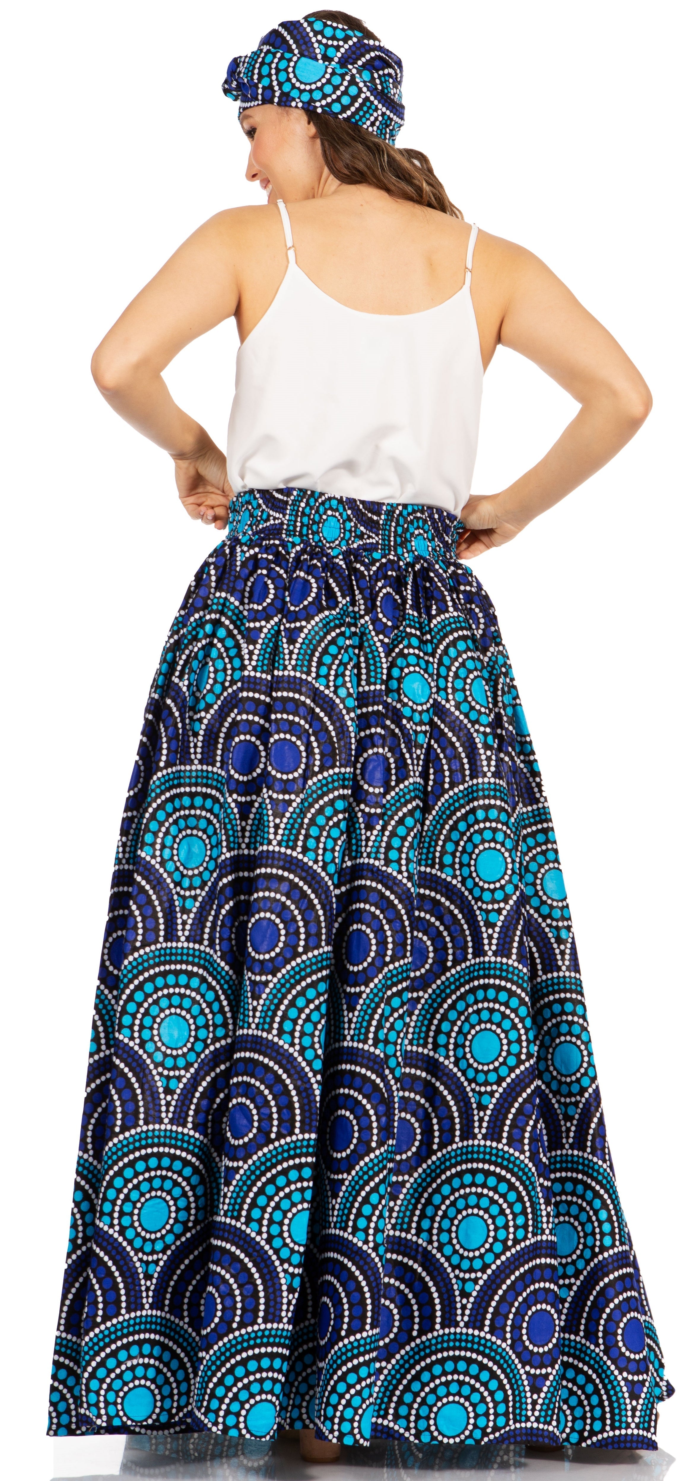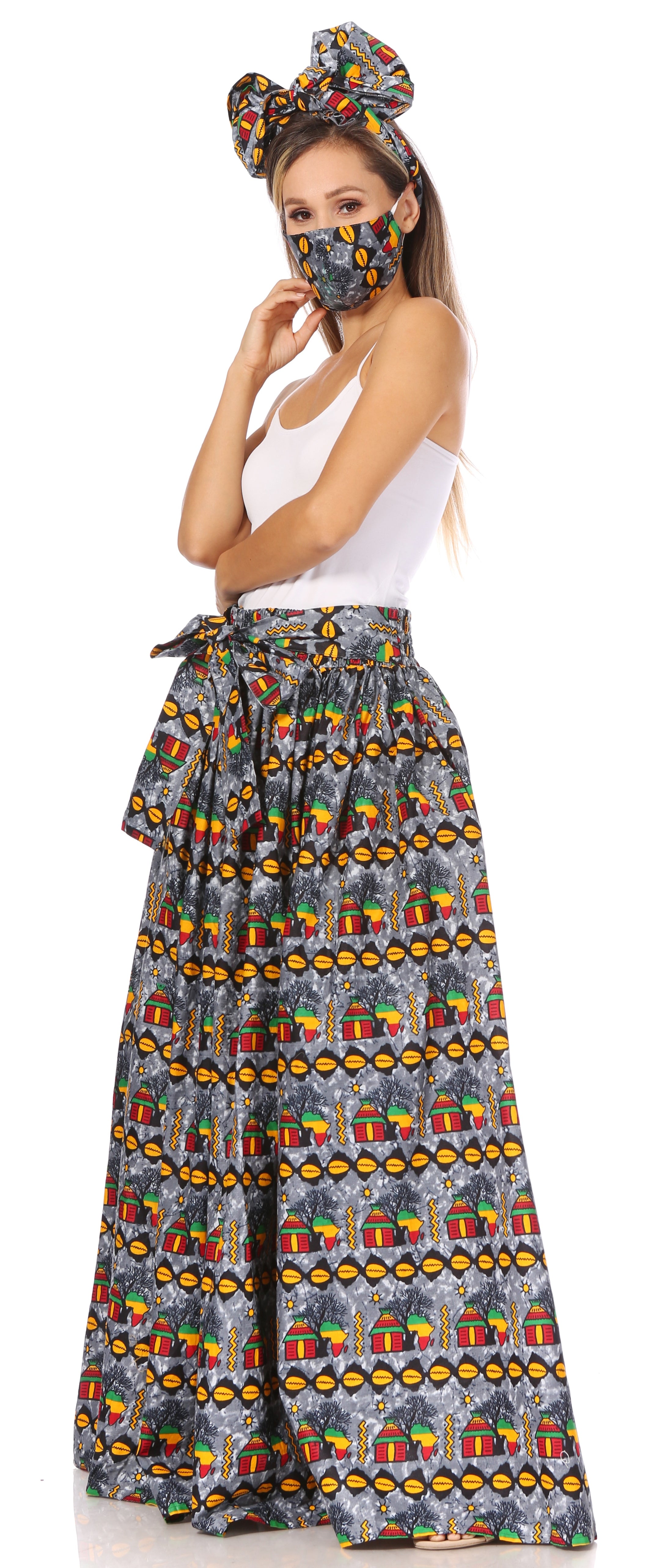 Sakkas Asma's Second Convertible Traditional Wax Print Maxi Skirt with Adjustable Straps