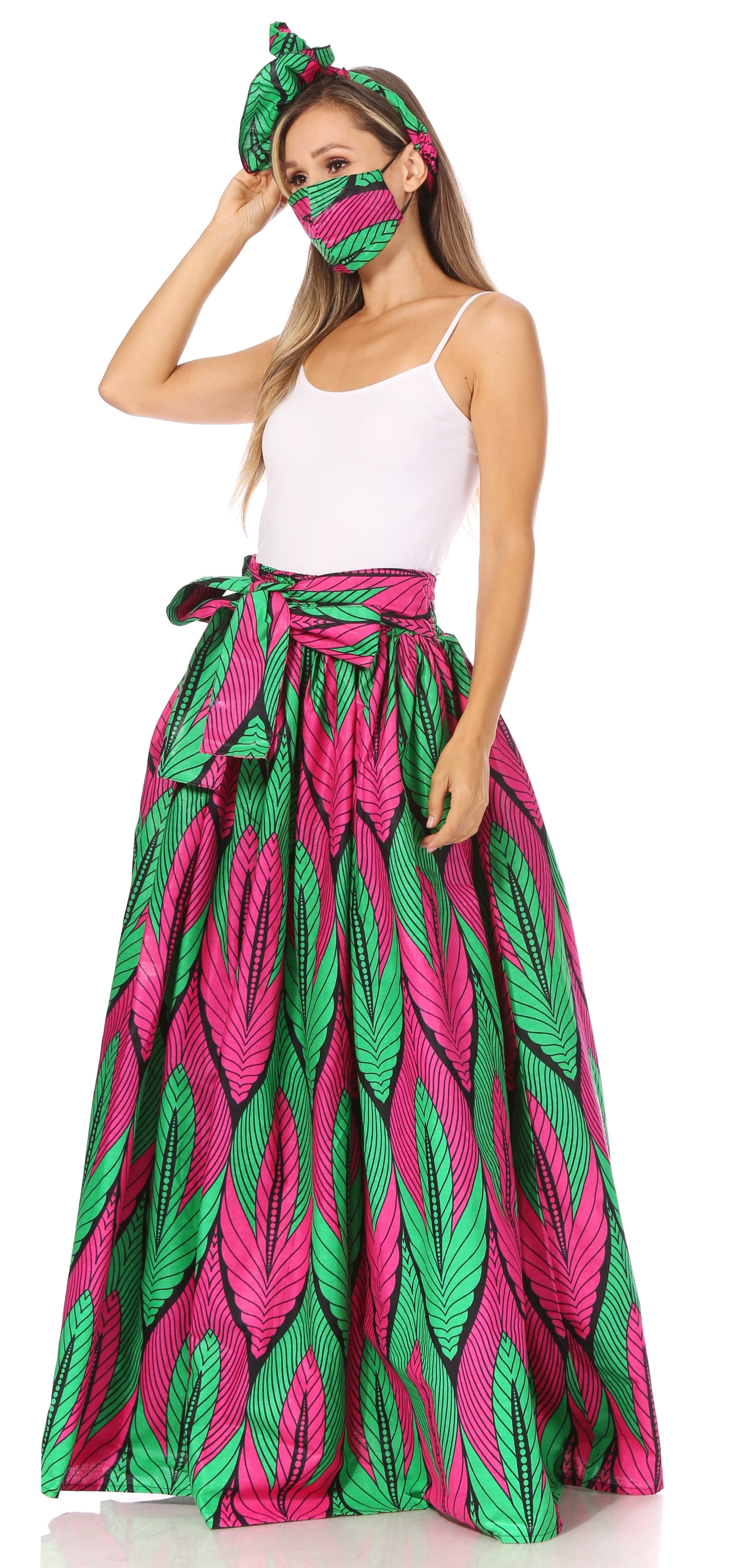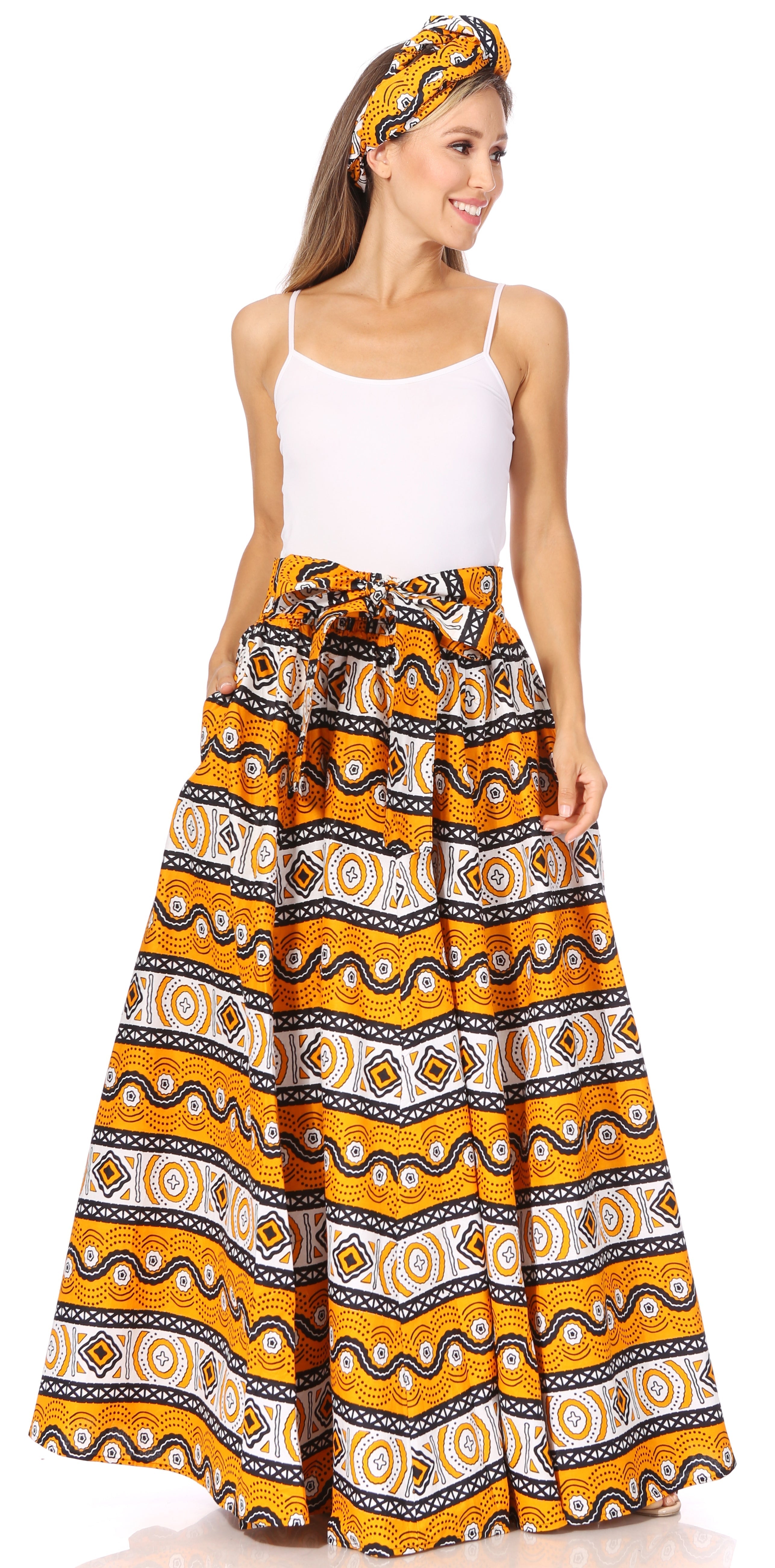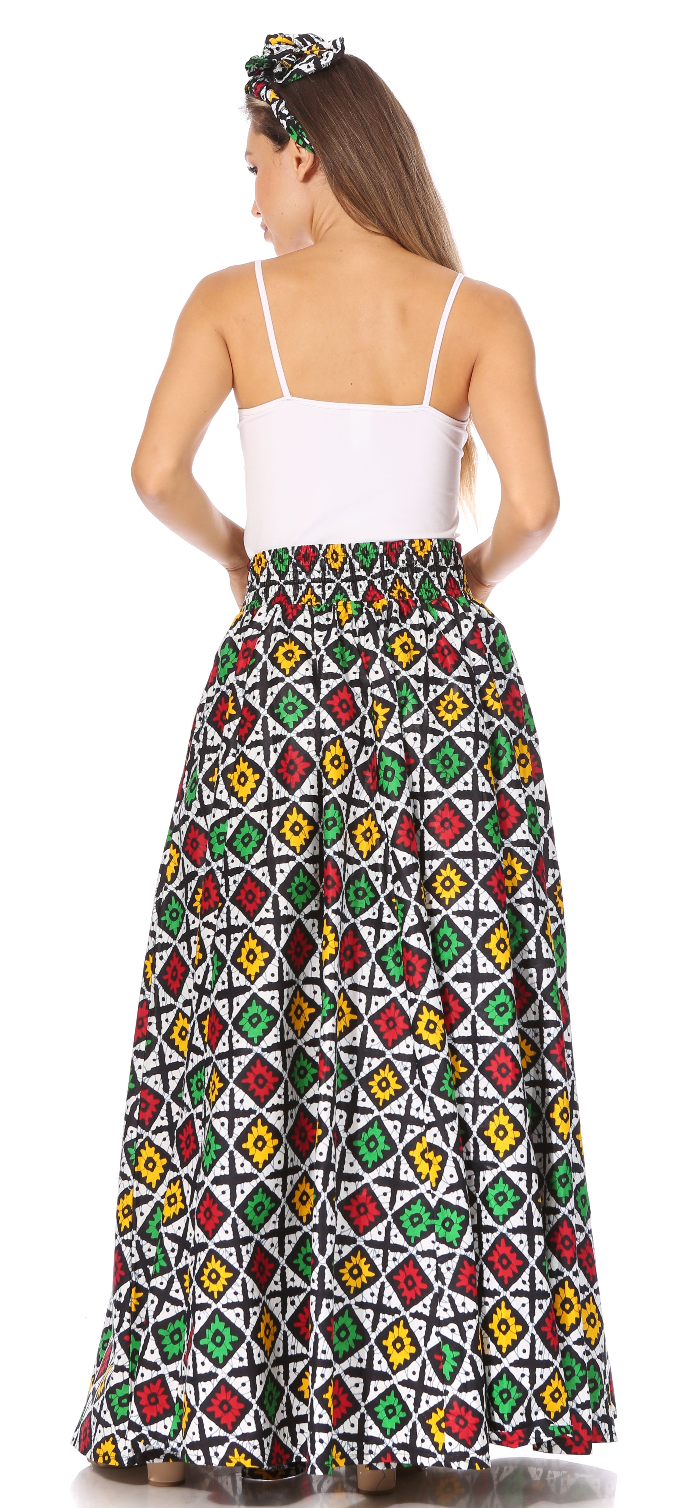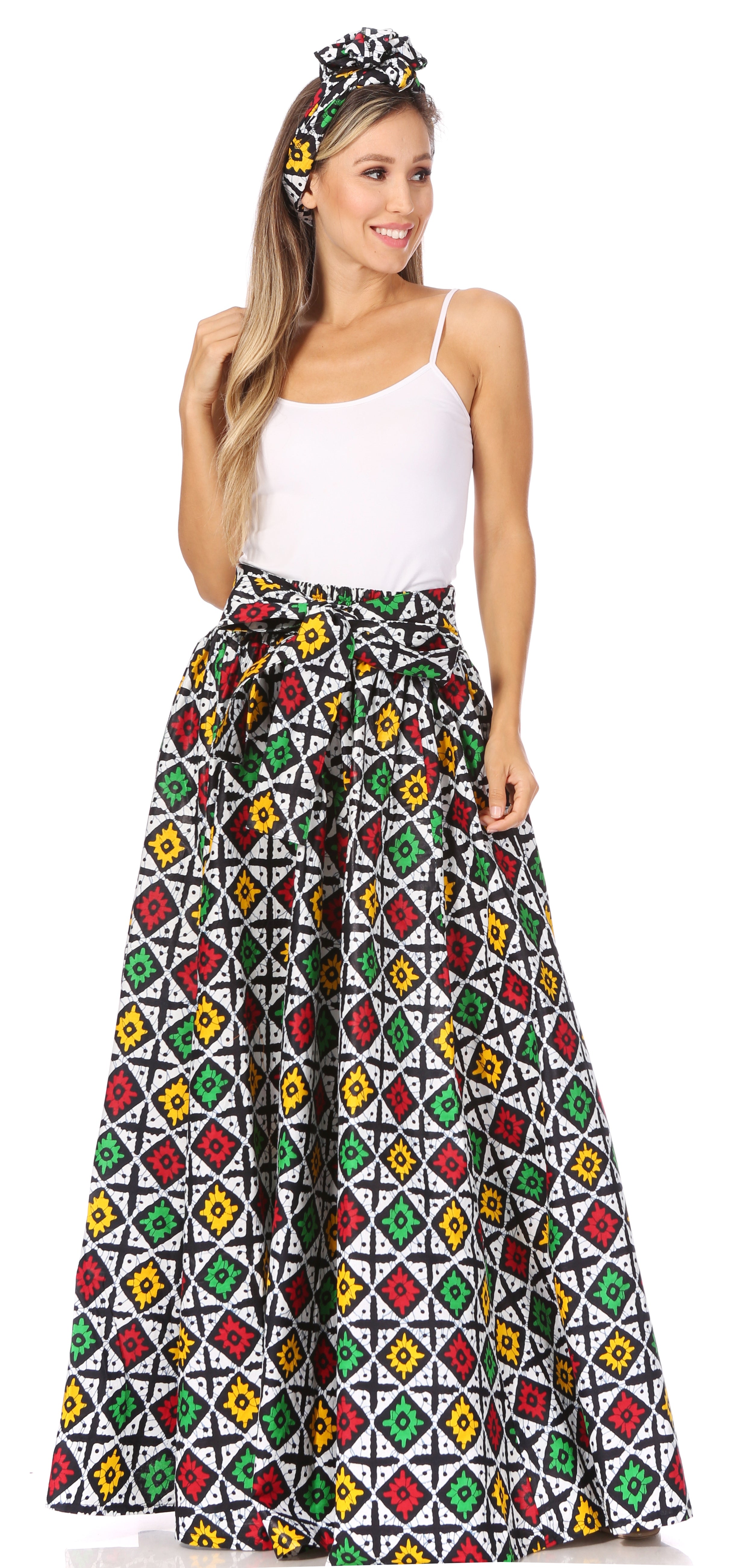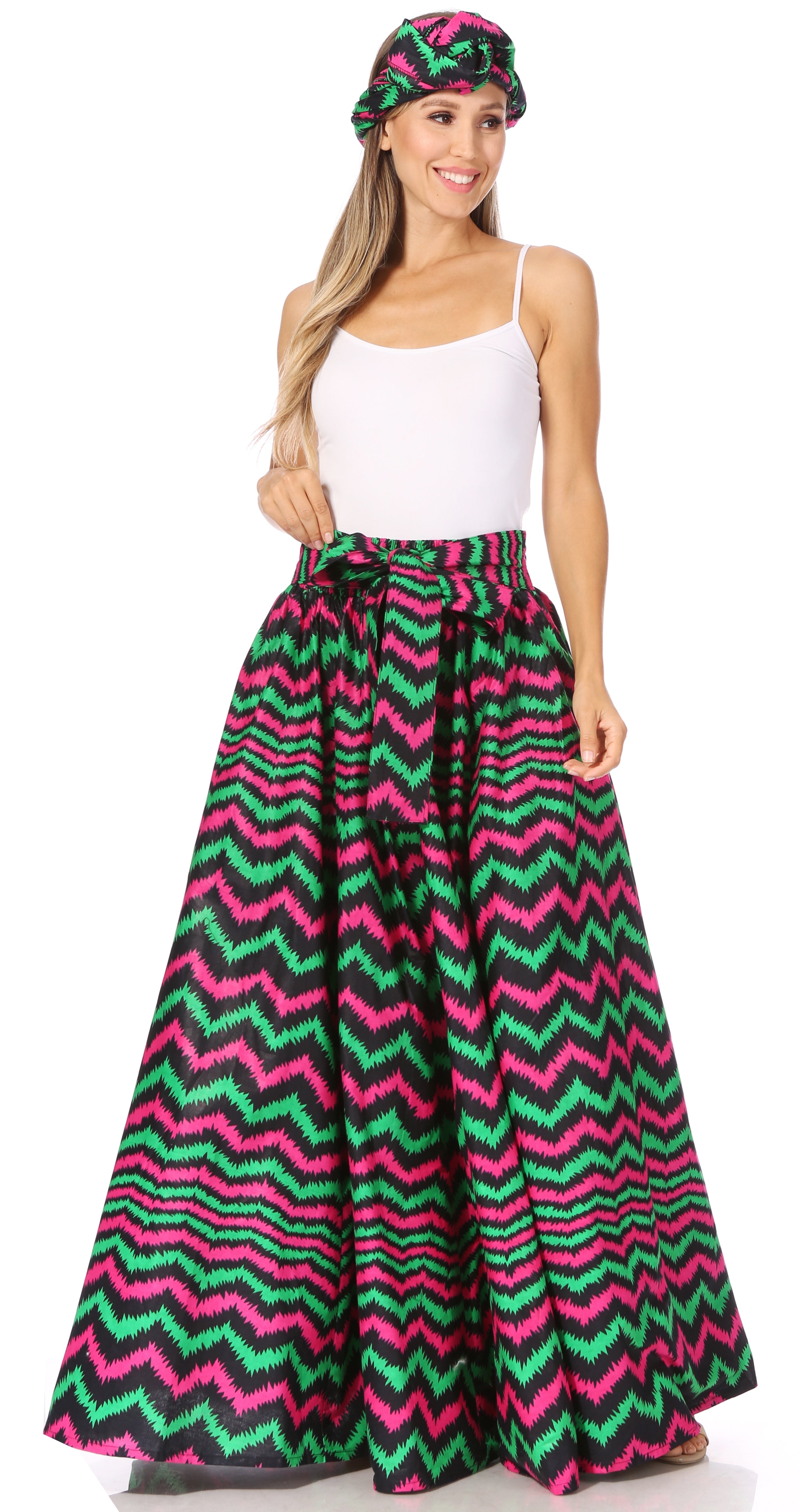 Sakkas Asma's Second Convertible Traditional Wax Print Maxi Skirt with Adjustable Straps